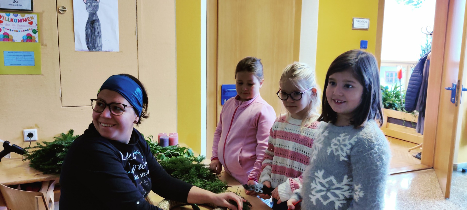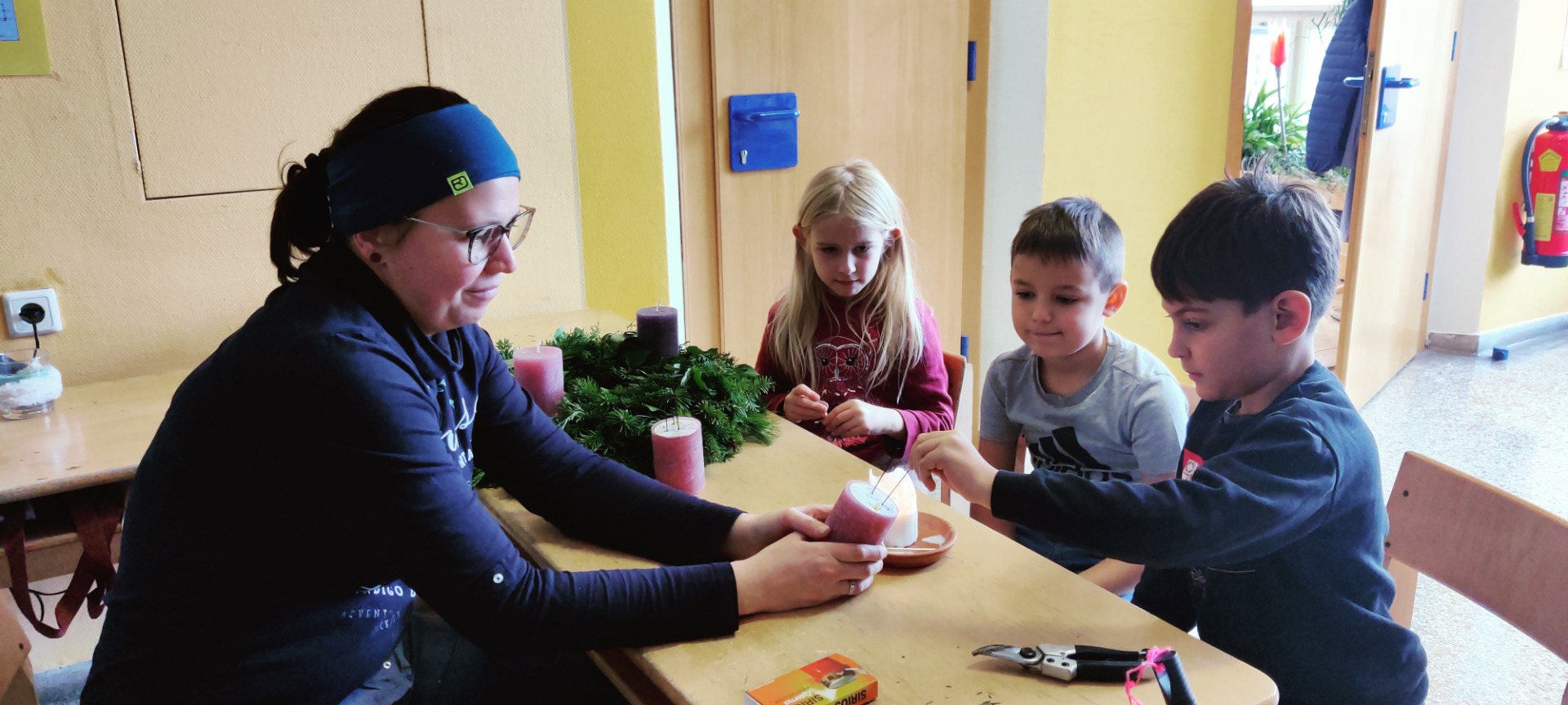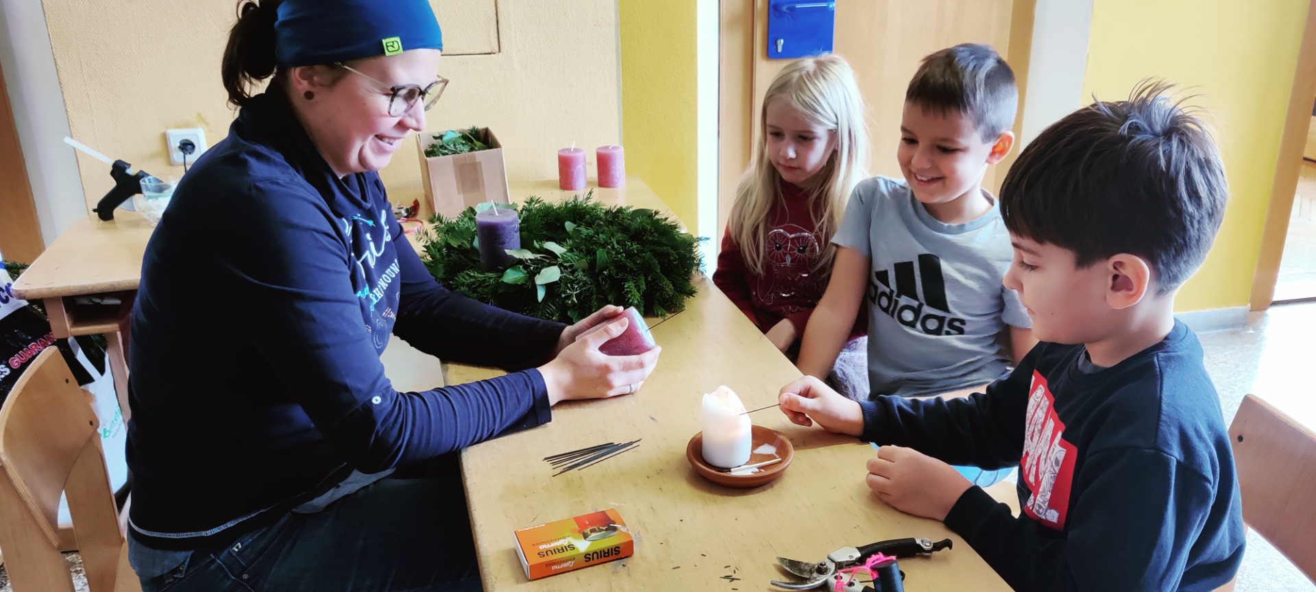 Adventkranz Es duftet nach Reisig, Zweige werden geschnitten und gebunden, ja der Advent ist da. Herzlichen Dank an Julia Heigl, die mit den Kindern wieder einen wunderschönen Adventkranz gebunden hat.