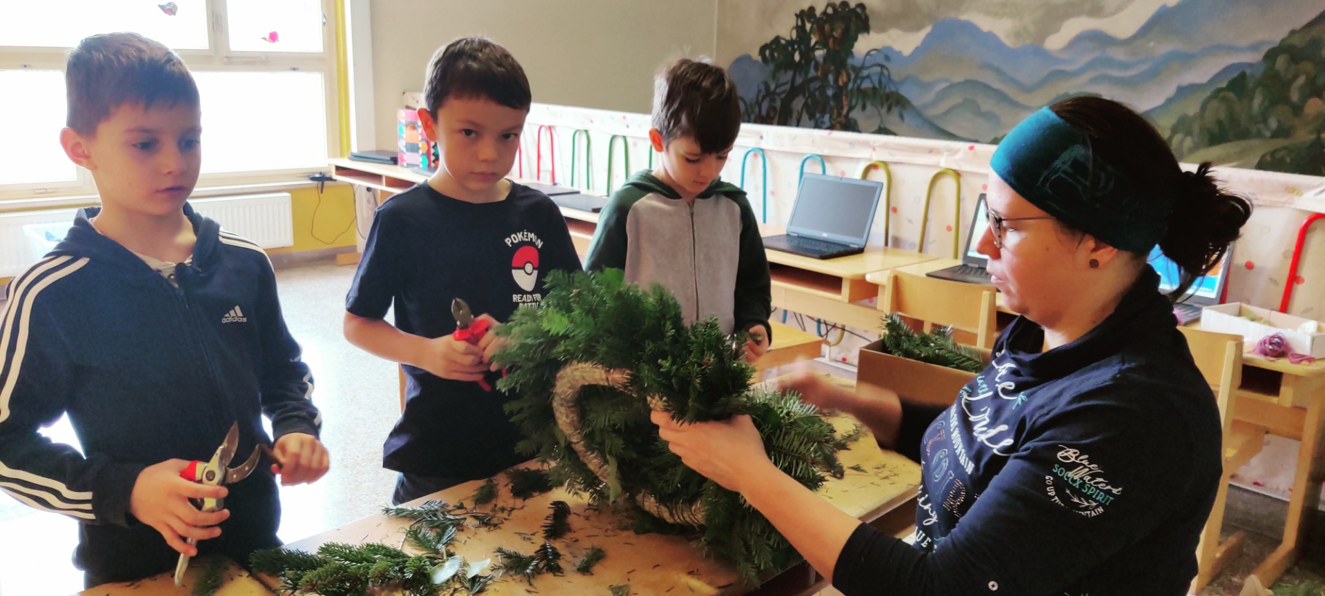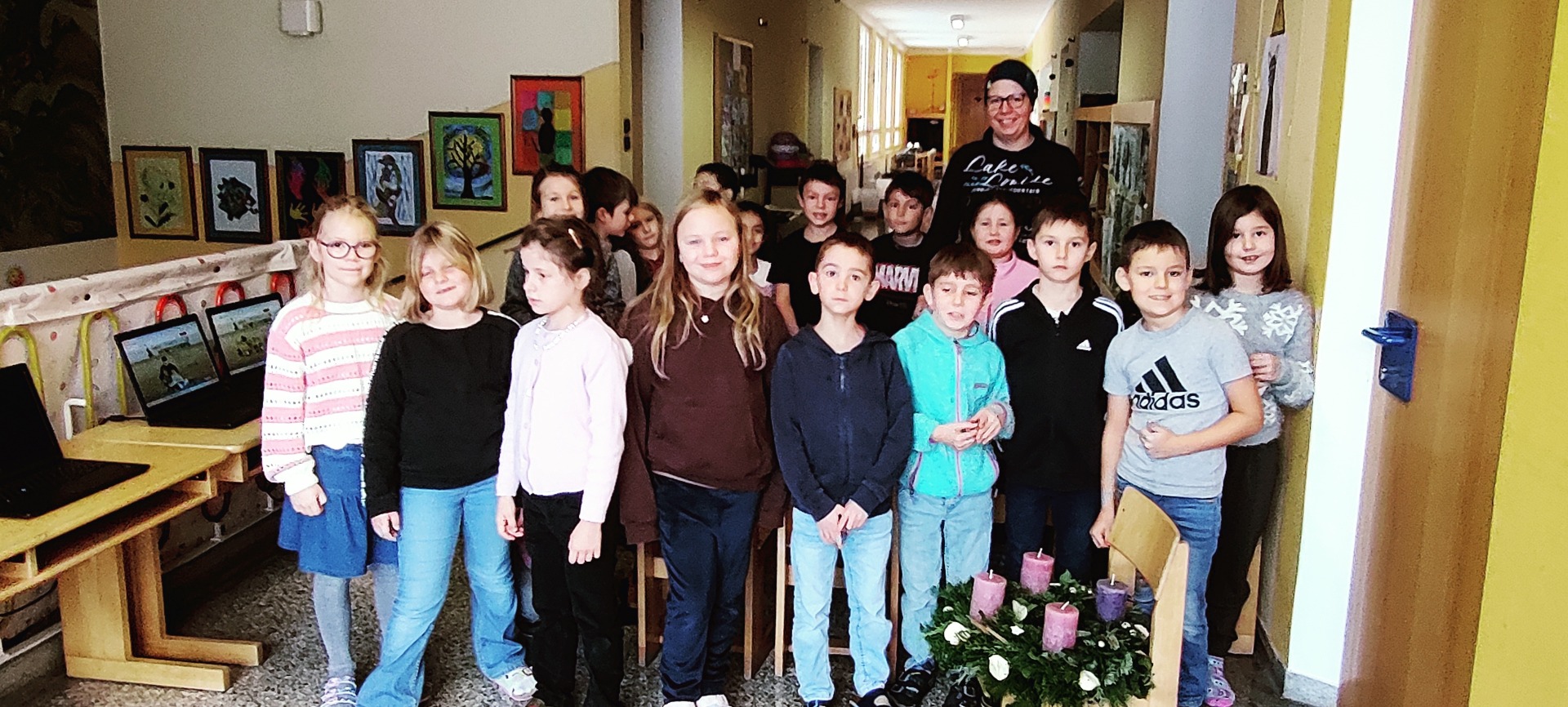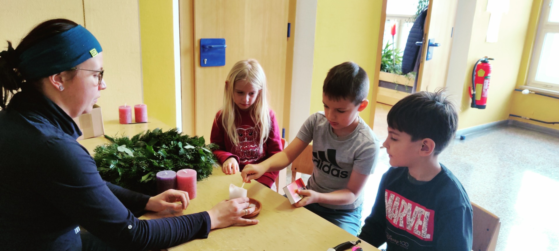 Adventkranz Es duftet nach Reisig, Zweige werden geschnitten und gebunden, ja der Advent ist da. Herzlichen Dank an Julia Heigl, die mit den Kindern wieder einen wunderschönen Adventkranz gebunden hat.
