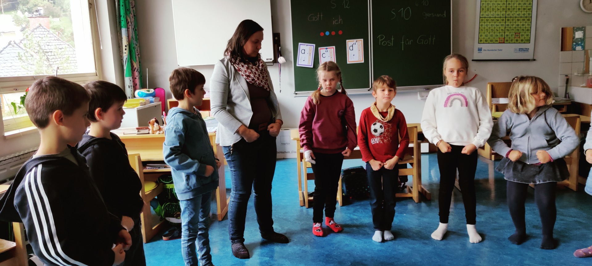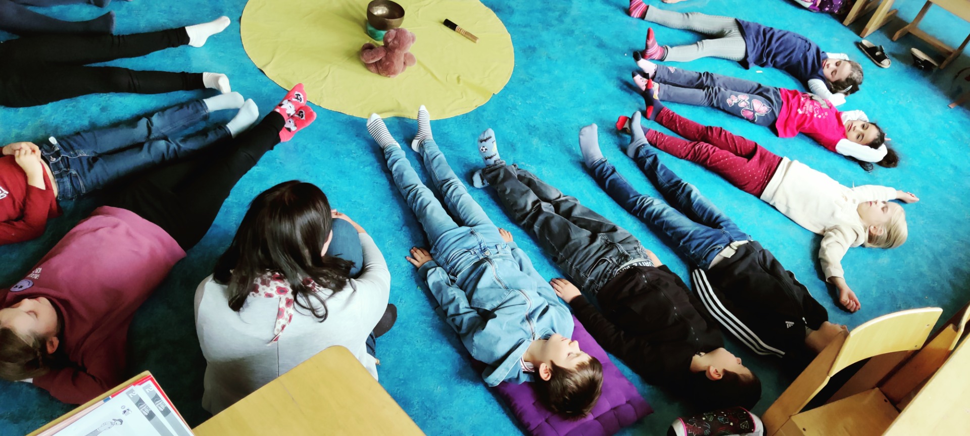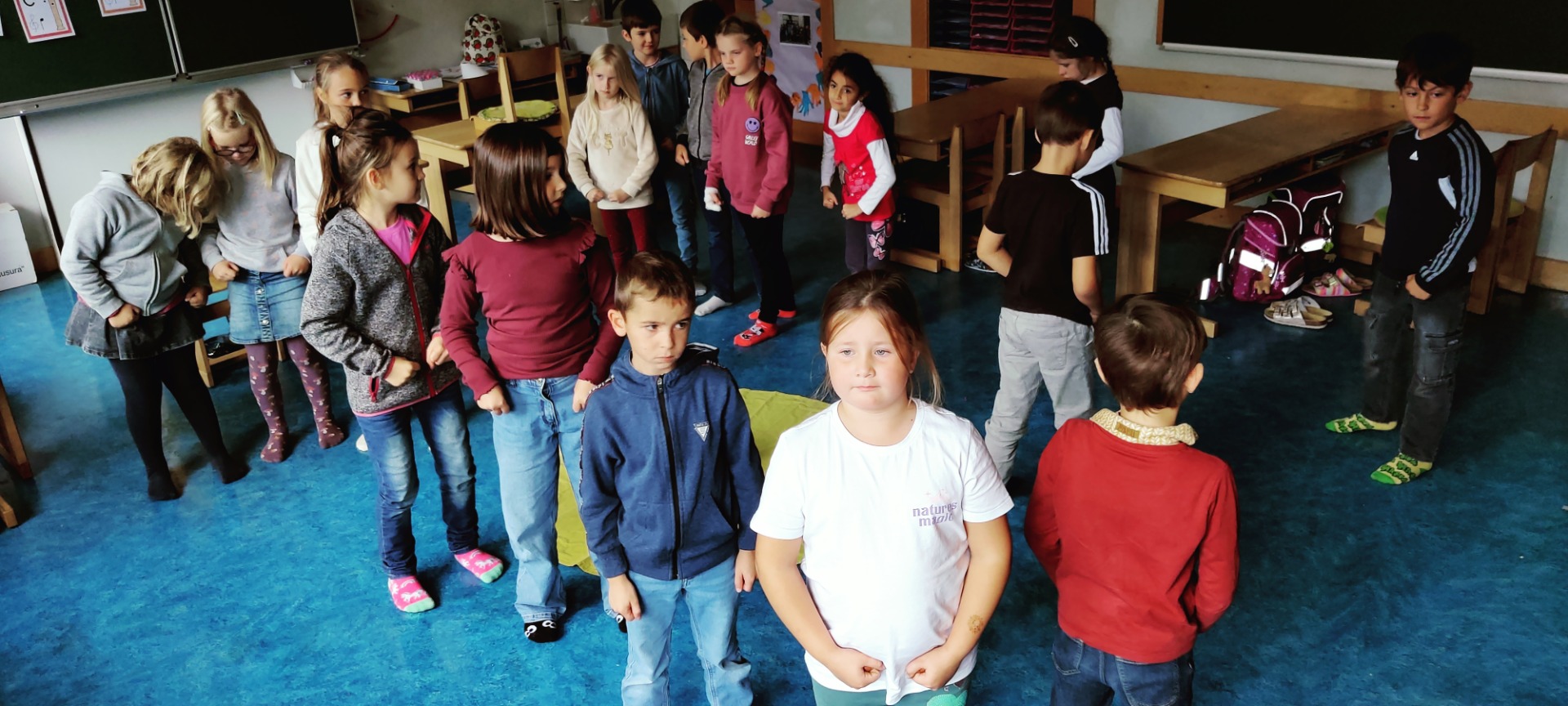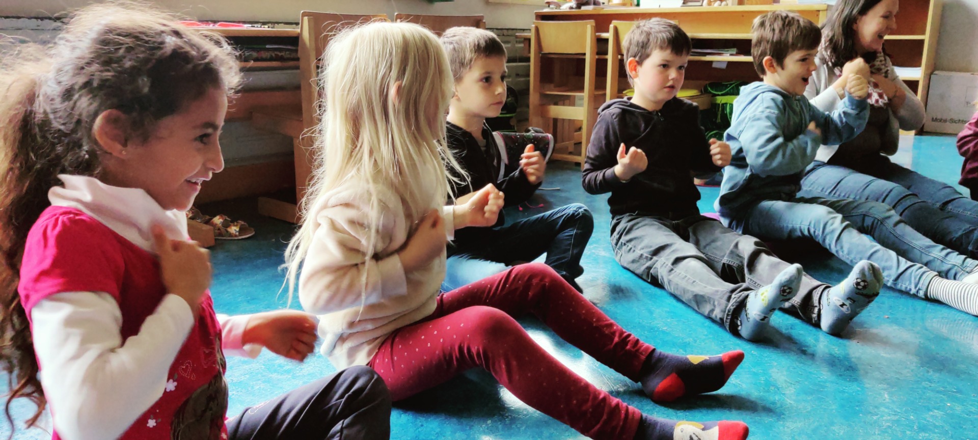 Jeden Montag freuen wir uns auf die Trainingsstunde mit Sonja Straßer. Auf den Fotos sieht man uns bei einer Meditation, die zu jeder Einheit dazugehört. Wir lernen aber auch sicher zu stehen, in Balance zu bleiben, stark und fürsorglich zu sein wie ein Bär, gut und respektvoll mit uns und den anderen umzugehen, aber auch „Stopp“ zu sagen und zu zeigen, wenn wir etwas nicht wollen. Wir freuen uns auf weitere interessante Einheiten, es gibt noch viel Neues zu lernen.