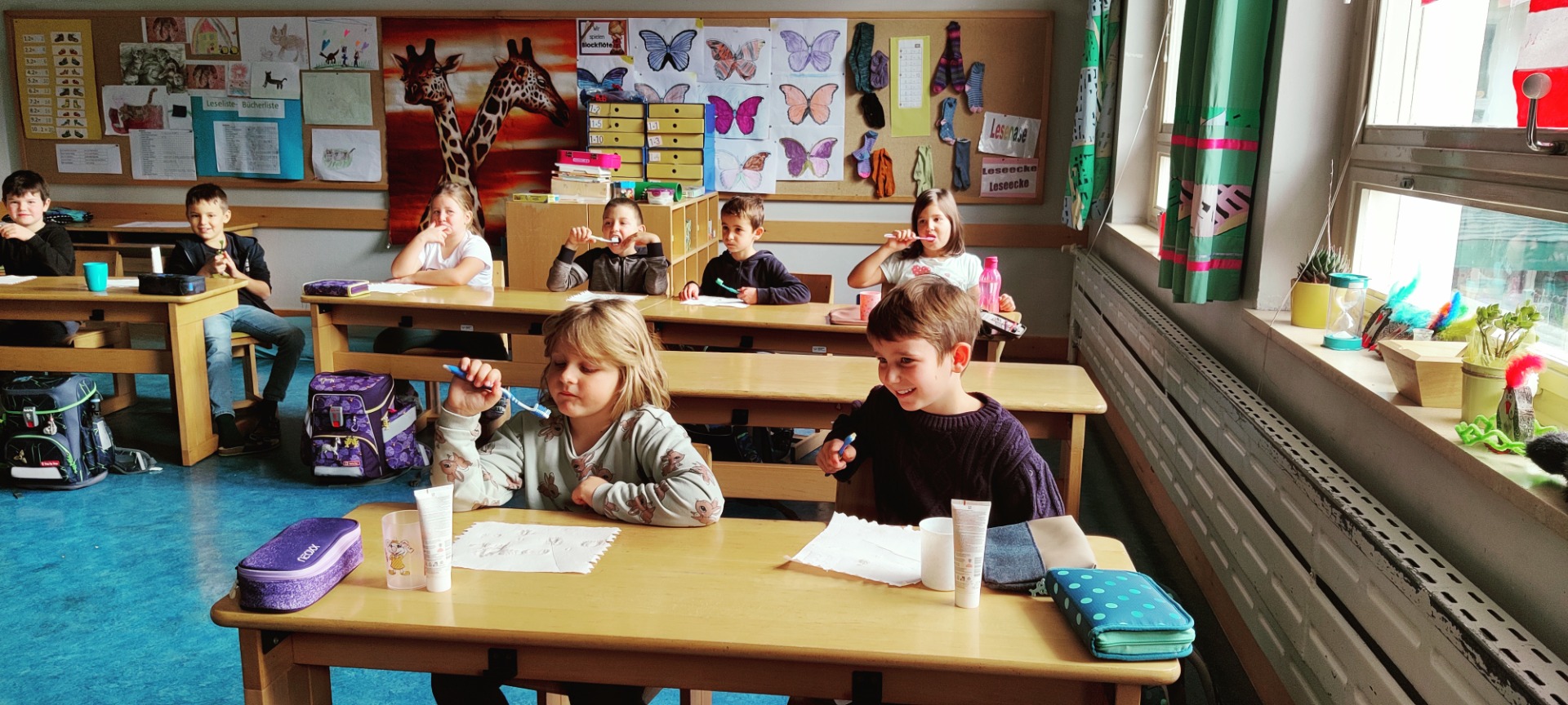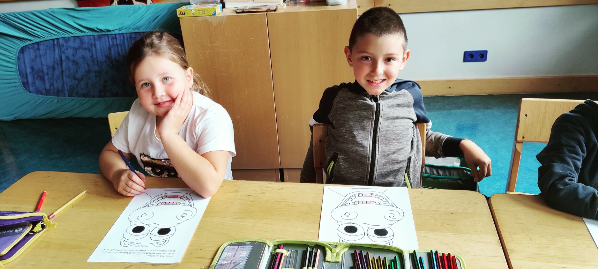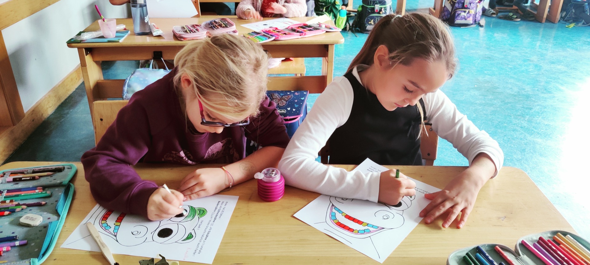 Die Zahngesundheitsstunden mit Krokoline sind immer lustig und machen den Kindern Spaß. Dabei lernen sie aber auch, wie wichtig das tägliche Zähneputzen und eine gesunde Ernährung ist. Denn uns Menschenkindern wachsen nur zweimal Zähne, deshalb müssen wir alle darauf achten, dass Karius keine Chance hat.