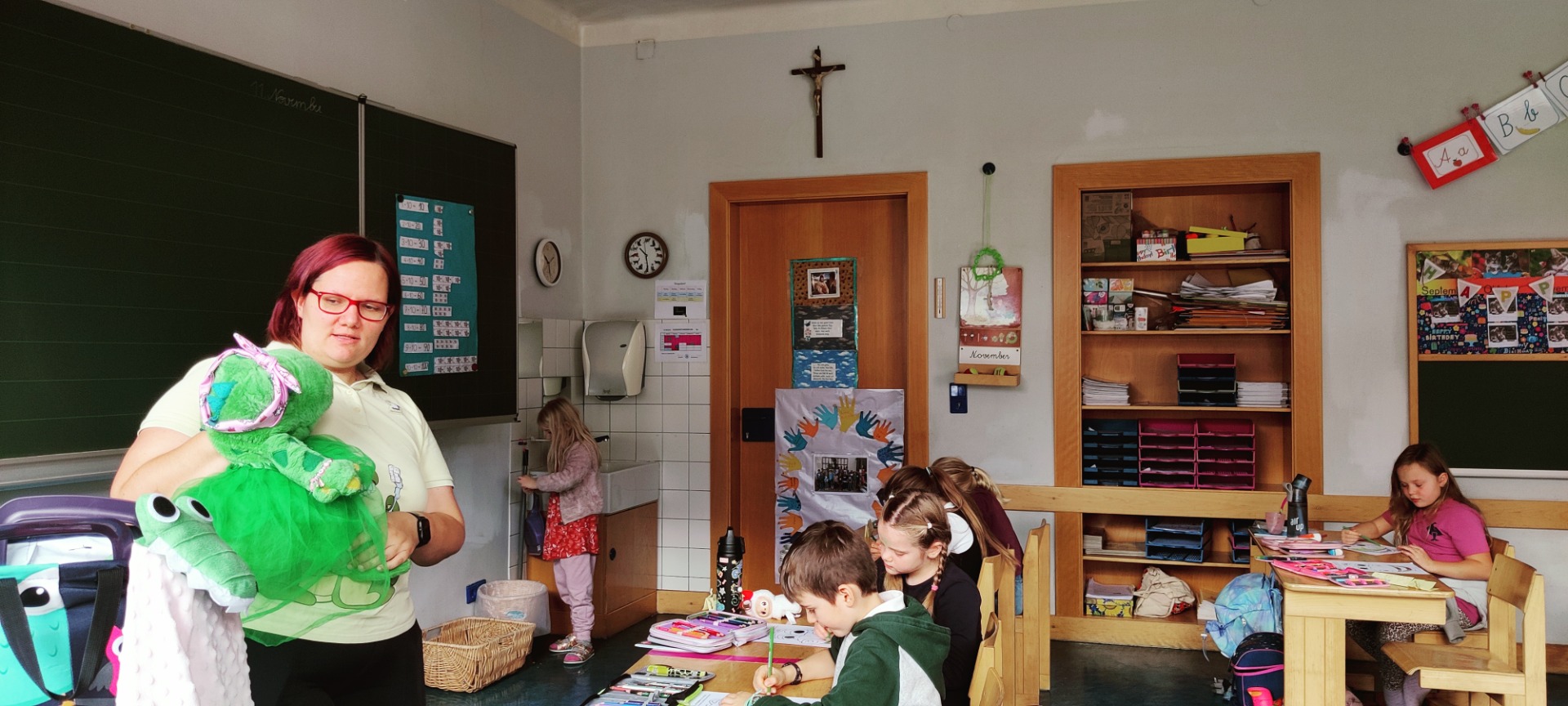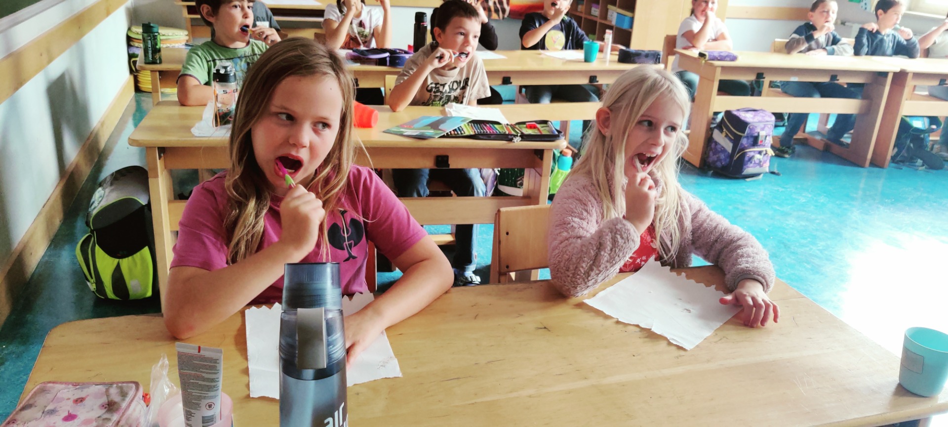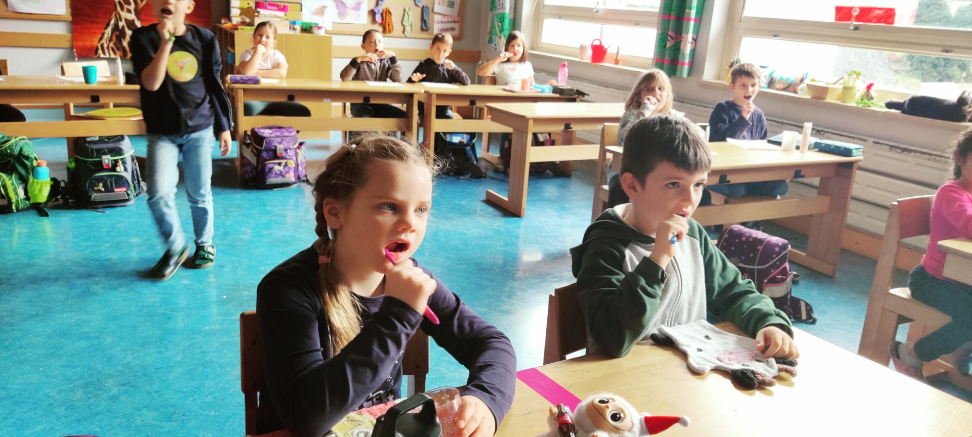 Die Zahngesundheitsstunden mit Krokoline sind immer lustig und machen den Kindern Spaß. Dabei lernen sie aber auch, wie wichtig das tägliche Zähneputzen und eine gesunde Ernährung ist. Denn uns Menschenkindern wachsen nur zweimal Zähne, deshalb müssen wir alle darauf achten, dass Karius keine Chance hat.