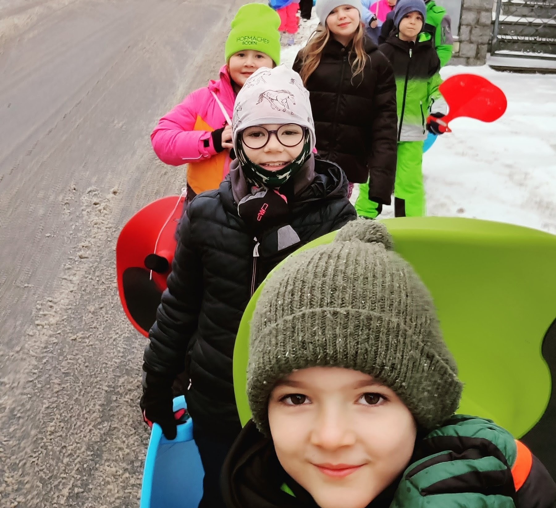 Bob fahren, Iglo bauen, durch den Schnee stapfen und dabei Eichhörnchen entdecken und beobachten, heuer werden unsere Turnstunden auch durch solche Unternehmungen ergänzt. Die Kinder freuen sich über das Winterwetter, den Schnee und den Spaß miteinander.