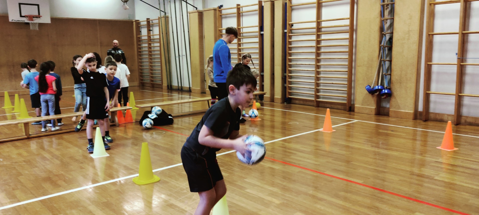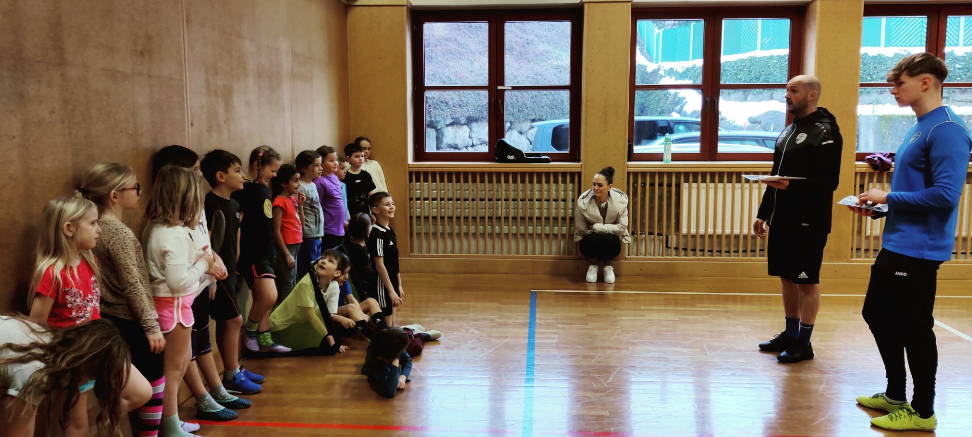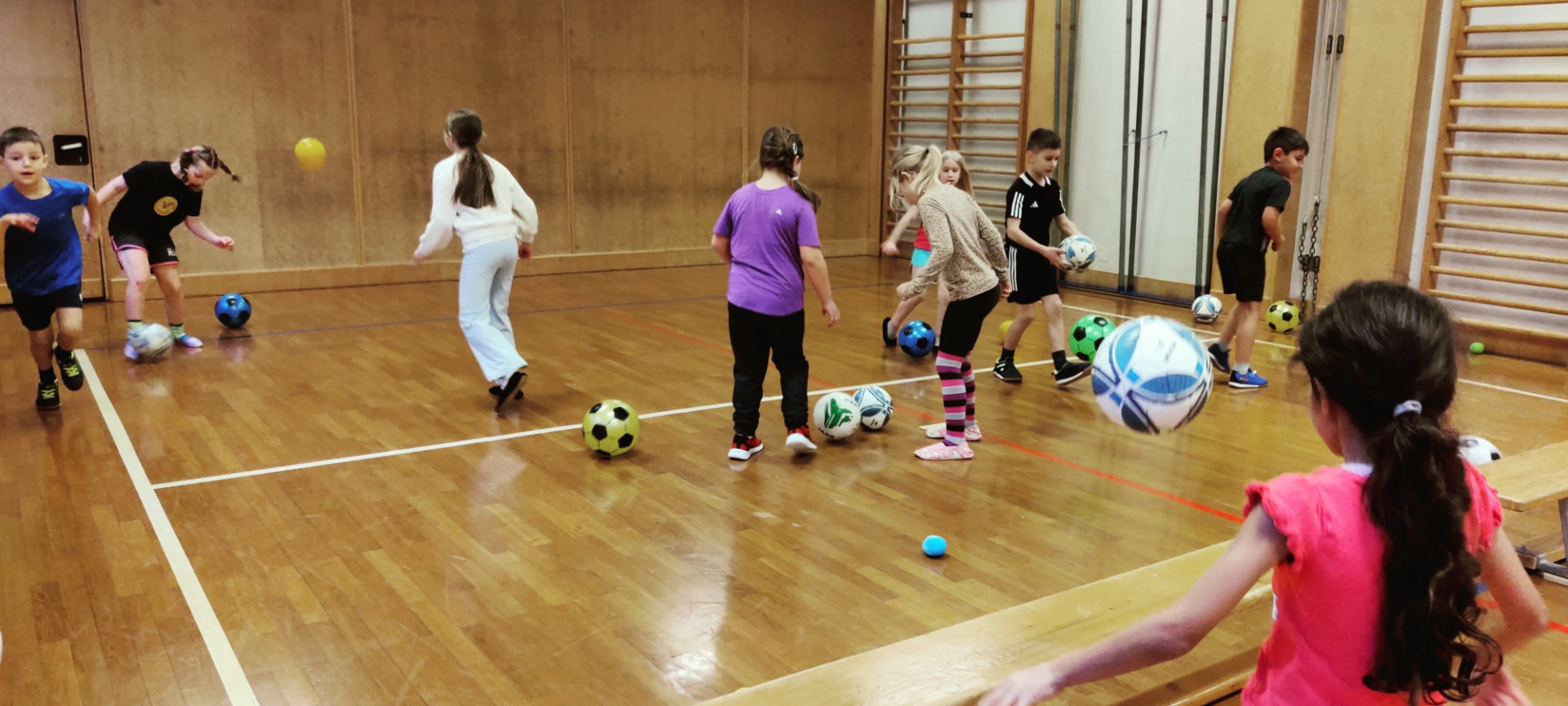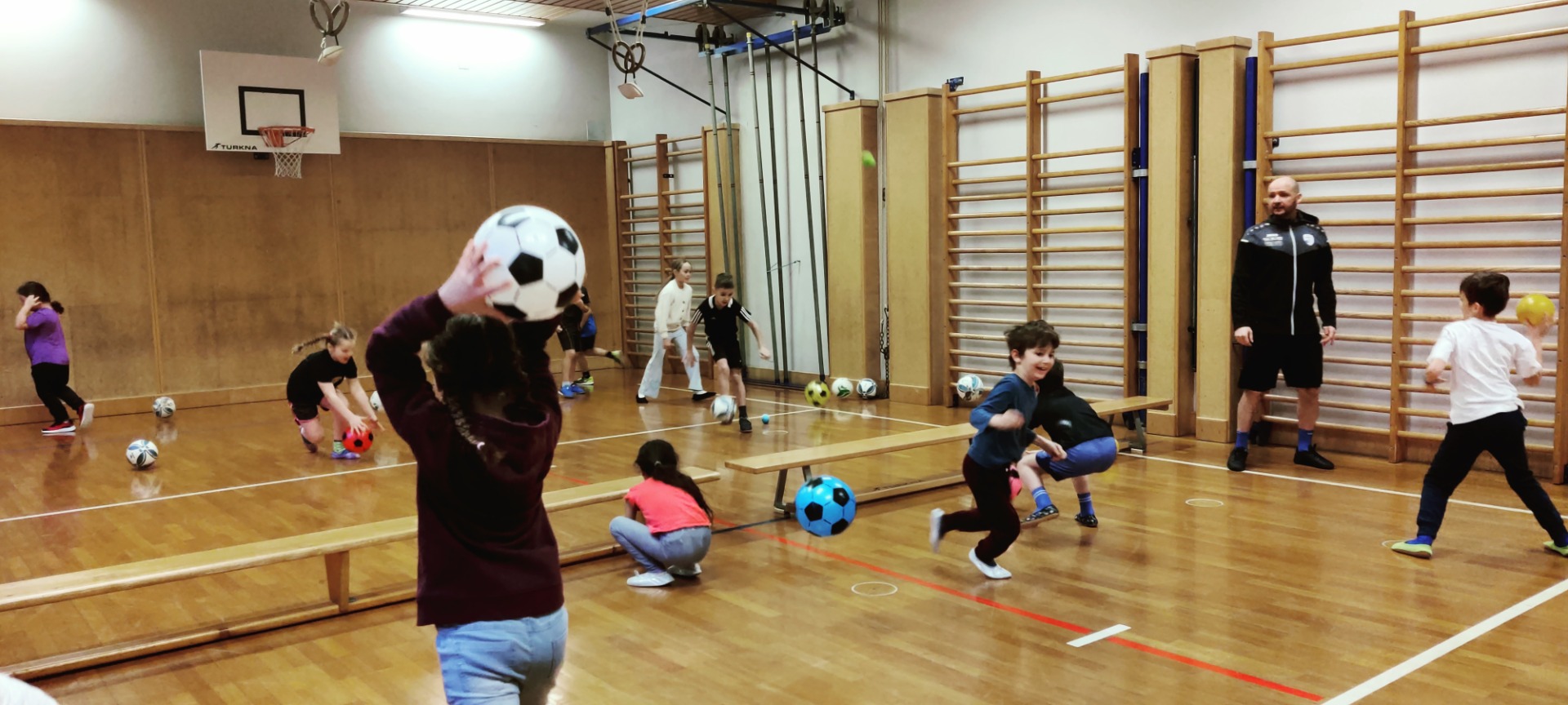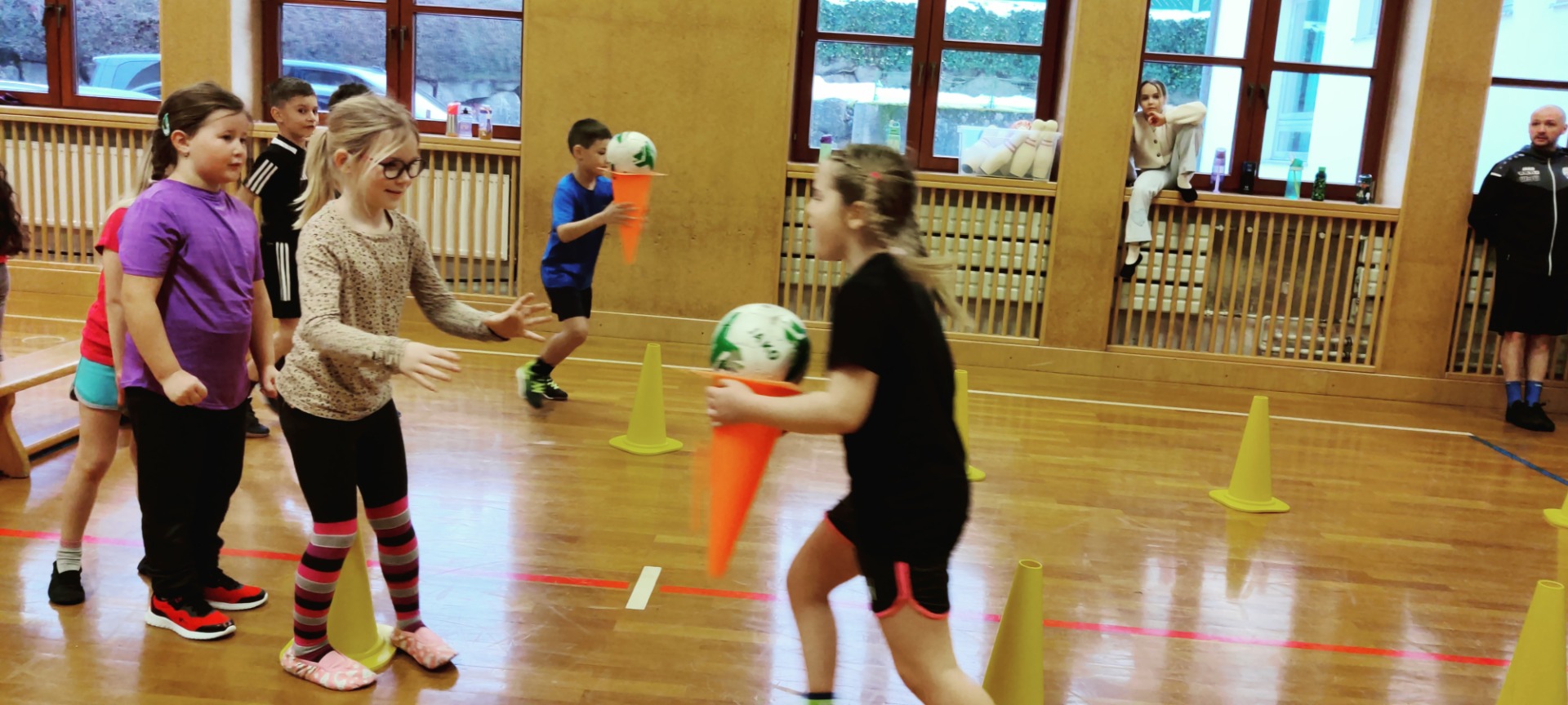 Am letzten Schultag im 1. Semester war die „Fußballturnstunde“ ein wunderbarer Abschluss. Die Trainer Lukas Anderson und Joey Zellhofer hatten für die Zweitklässler viele Übungen und Spiele mit dem Ball vorbereitet und alle waren mit viel Spaß und Begeisterung und vollem Einsatz dabei. Herzlichen Dank für die begeisternde Stunde, vielleicht haben einige Kinder ihre Freude am Fußballspielen entdeckt.