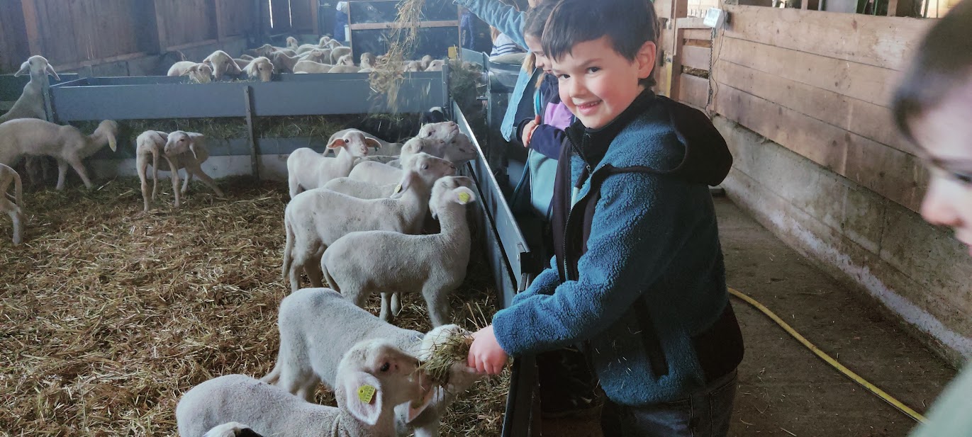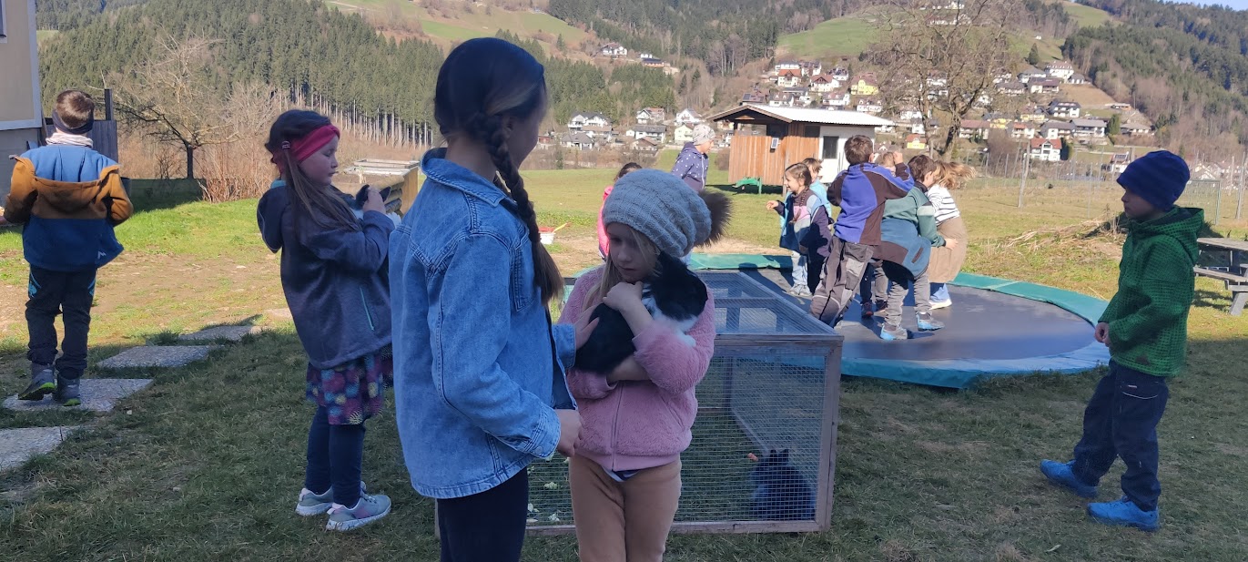 Voller Vorfreude wanderten die Kinder der 2a am 13.März zum Bauernhof „Berg“. Dort erwartete uns schon eine köstliche Jause, die wir gemeinsam bei Sonnenschein genießen konnten. Danach gingen wir zu den lieben Lämmchen in den Stall. Alle waren begeistert und die Schüler beobachteten, streichelten, fütterten und kuschelten mit den Lämmchen. Lisa durfte auch zu den Tieren, weil sie die Lämmchen gut kennt. Danach durften alle noch den Spielplatz erobern, und die Hasen tragen und streicheln. Einige Kinder wären gerne am Bauernhof geblieben, weil es ihnen so gut gefiel. Herzlichen Dank an die Familien Oismüller für die liebe Einladung, die köstliche Jause und die interessanten Stunden bei den Tieren.