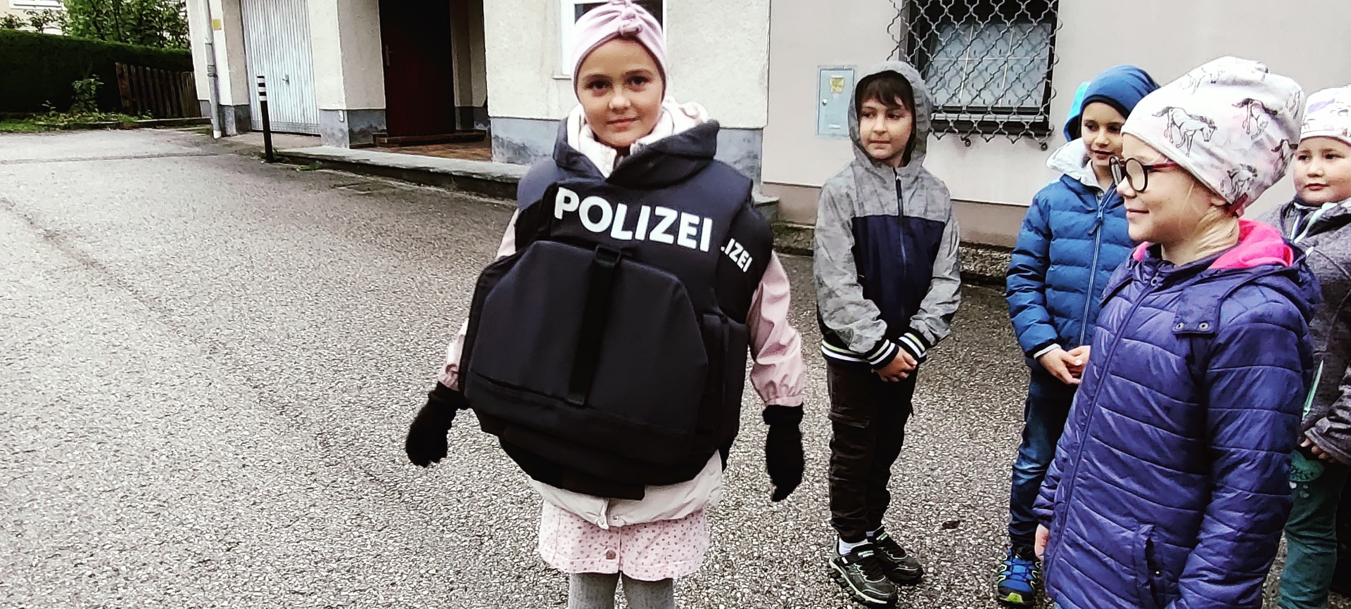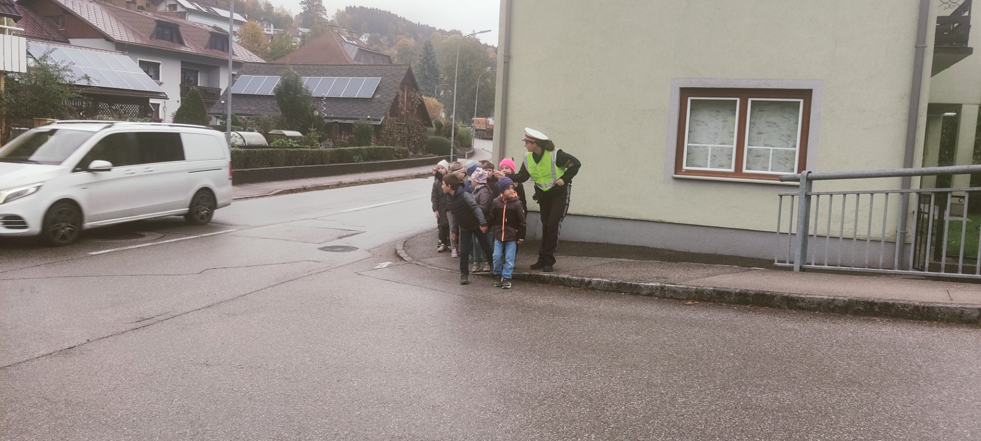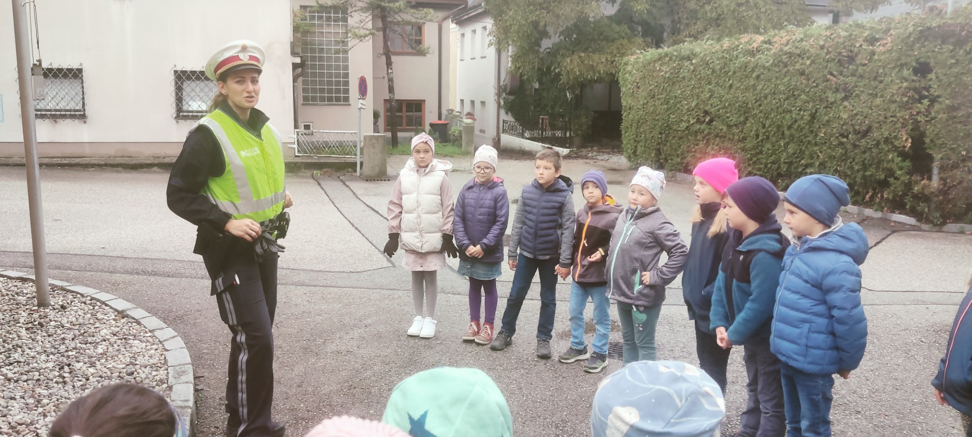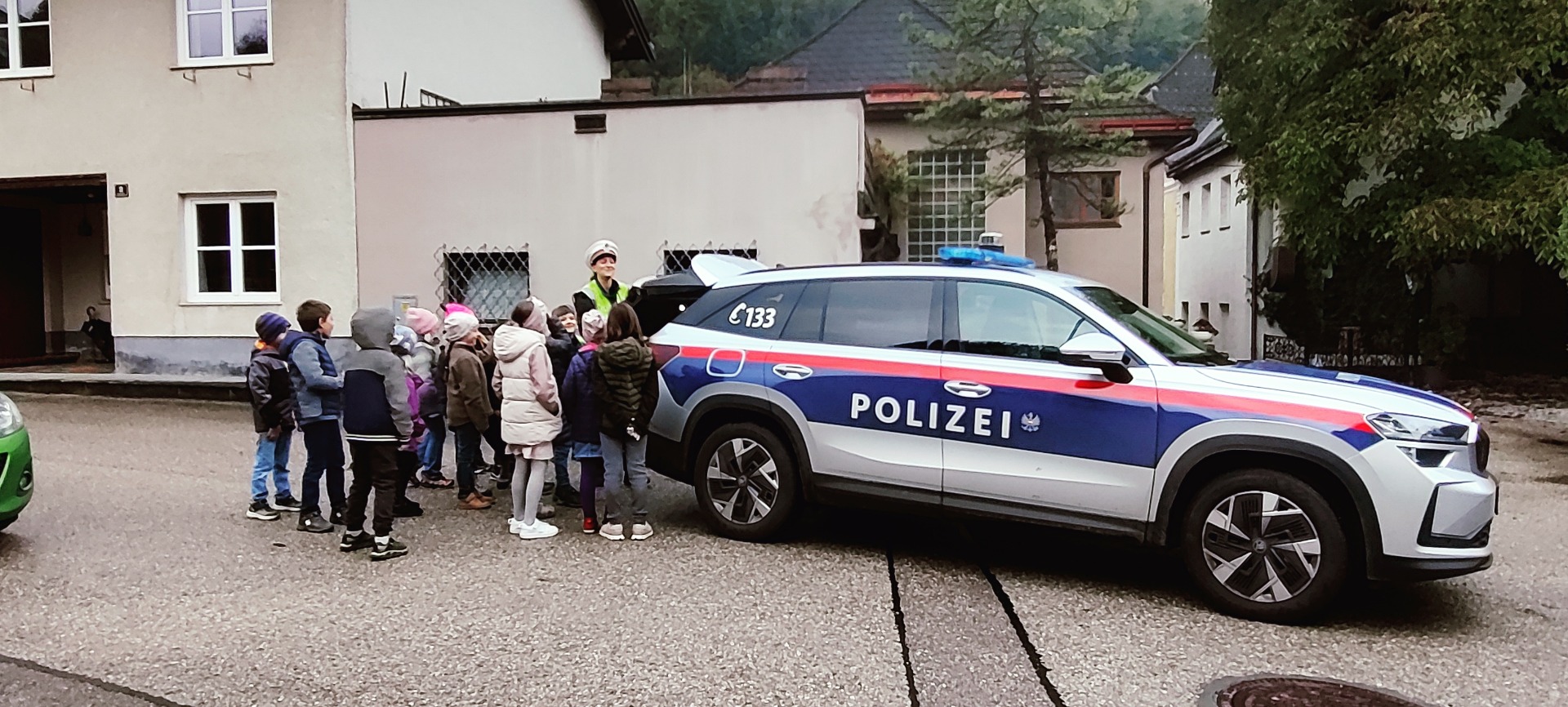 Auch in der 2. Klasse besuchte uns die Polizistin und ging mit uns den Schulweg ab. Wir lernten auch an schwierigen Stellen die Straße sicher zu überqueren. Alle Kinder konnten das Gelernte gut im Straßenverkehr umsetzen. Beim Planieren des Parkplatzes machten wir auch einen kurzen Halt, um die besonderen Fahrzeuge zu bewundern. Das Tollste kommt aber meistens zum Schluss. Wir durften auch das Polizeiauto mit Blaulicht, den Defibrillator im Auto und die kugelsichere Weste sehen. Beim Anprobieren konnten wir fühlen, wie schwer diese besondere Schutzkleidung ist. Herzlichen Dank für diese großartige Einheit mit der Polizei.