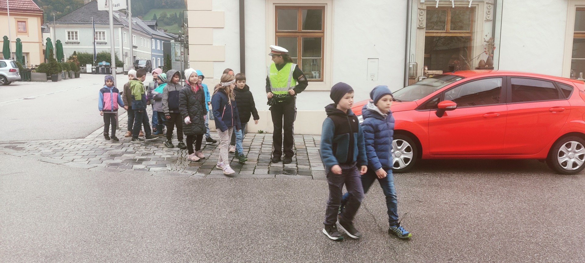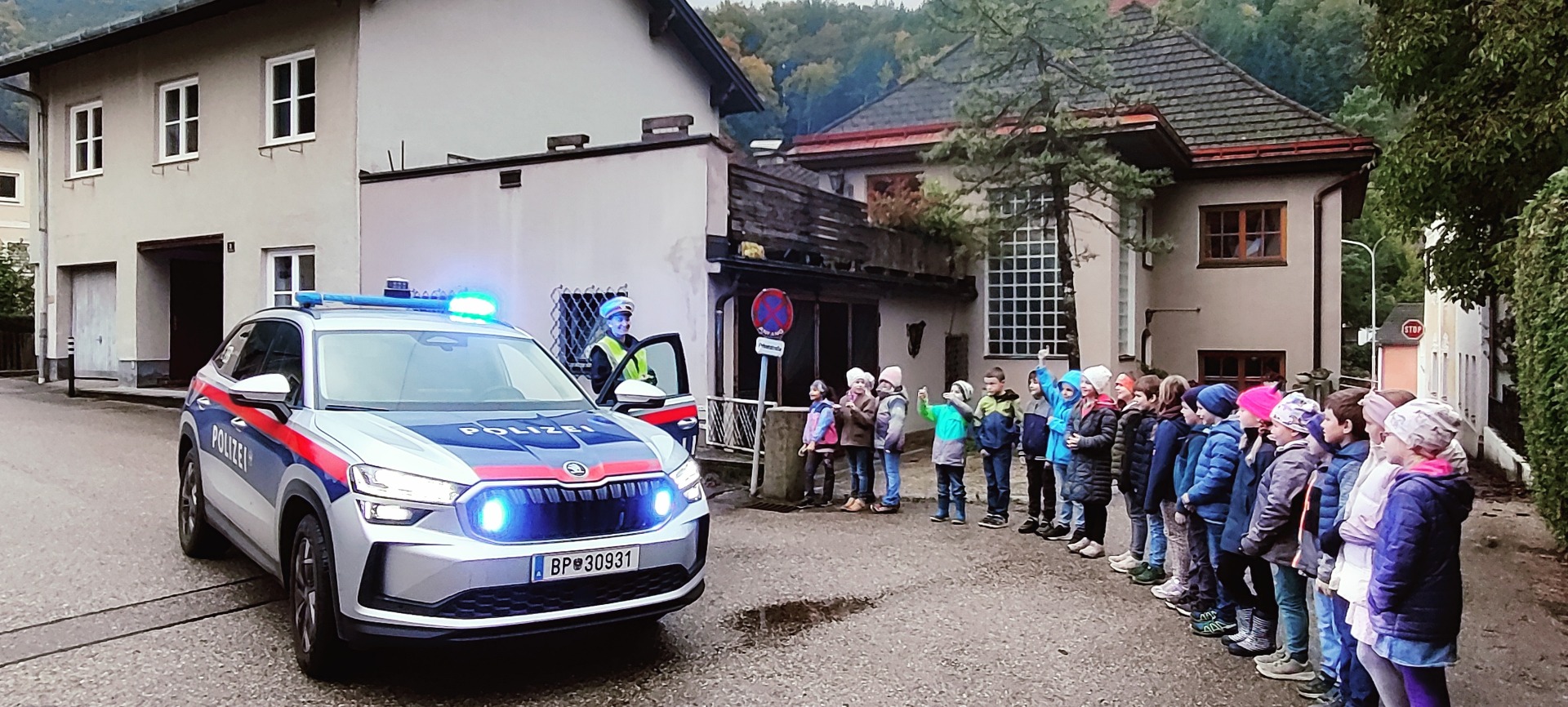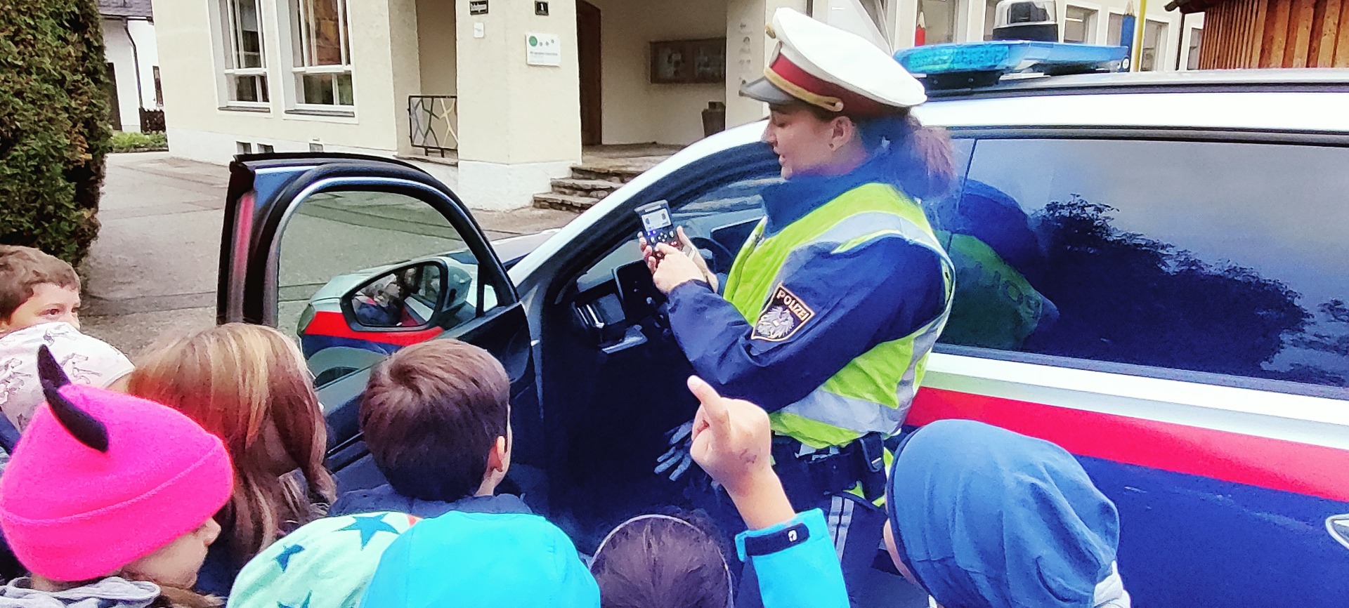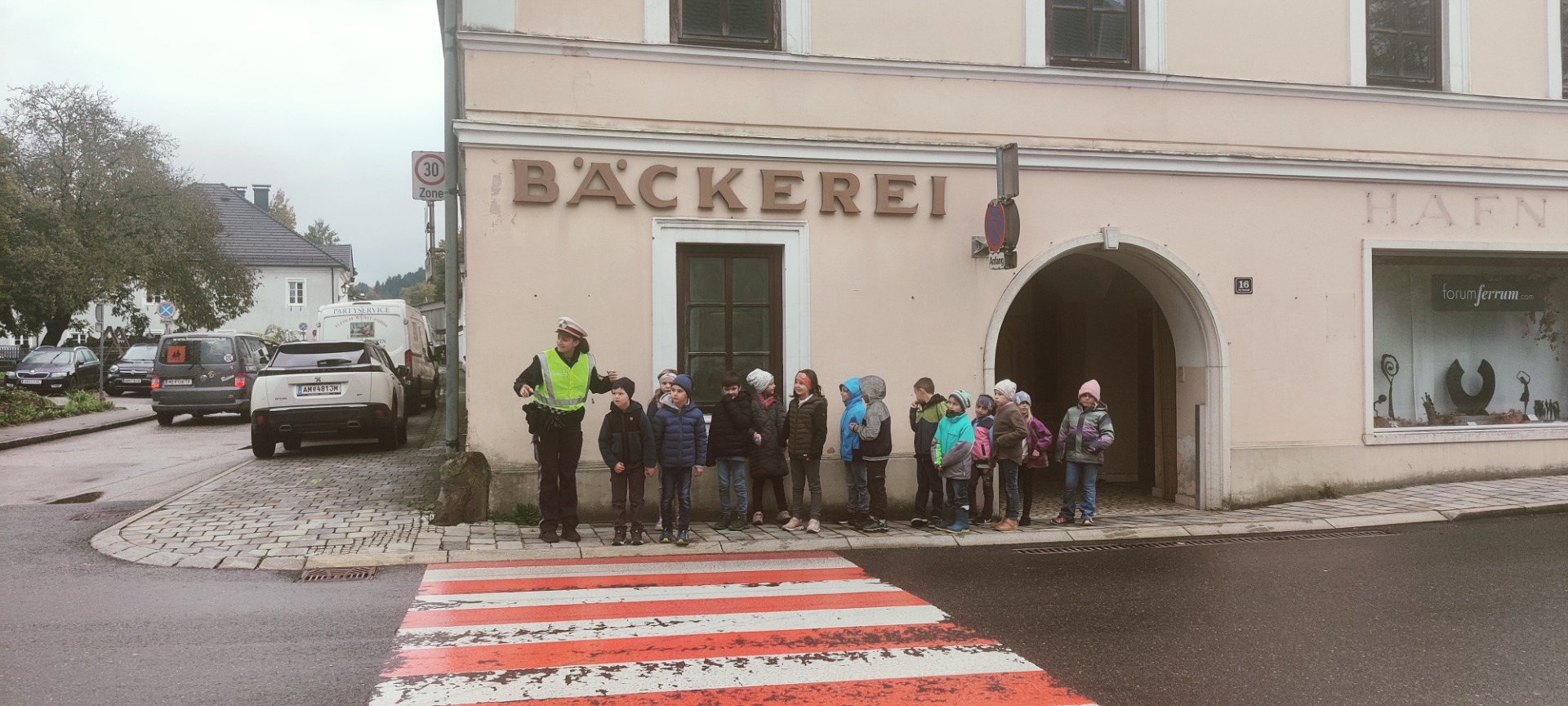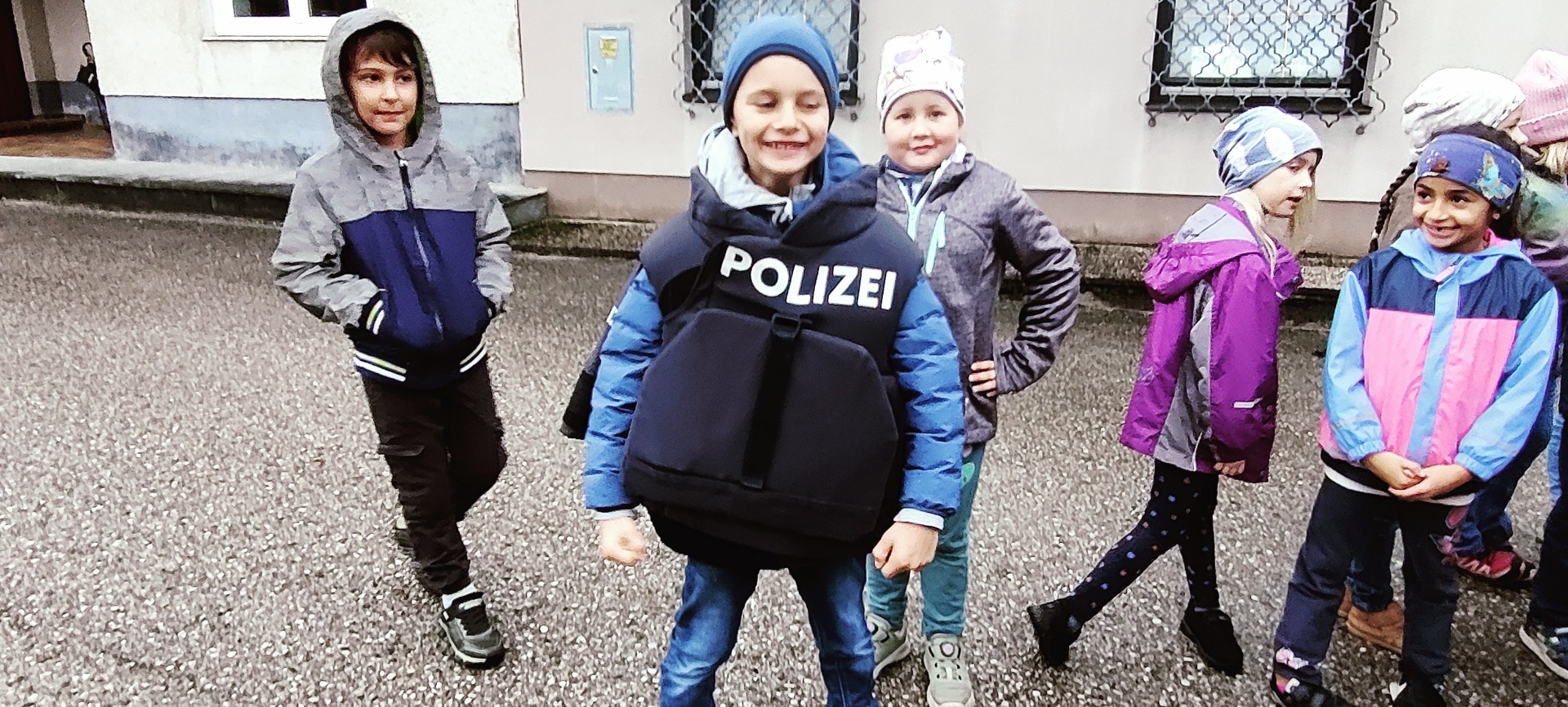 Auch in der 2. Klasse besuchte uns die Polizistin und ging mit uns den Schulweg ab. Wir lernten auch an schwierigen Stellen die Straße sicher zu überqueren. Alle Kinder konnten das Gelernte gut im Straßenverkehr umsetzen. Beim Planieren des Parkplatzes machten wir auch einen kurzen Halt, um die besonderen Fahrzeuge zu bewundern. Das Tollste kommt aber meistens zum Schluss. Wir durften auch das Polizeiauto mit Blaulicht, den Defibrillator im Auto und die kugelsichere Weste sehen. Beim Anprobieren konnten wir fühlen, wie schwer diese besondere Schutzkleidung ist. Herzlichen Dank für diese großartige Einheit mit der Polizei.
