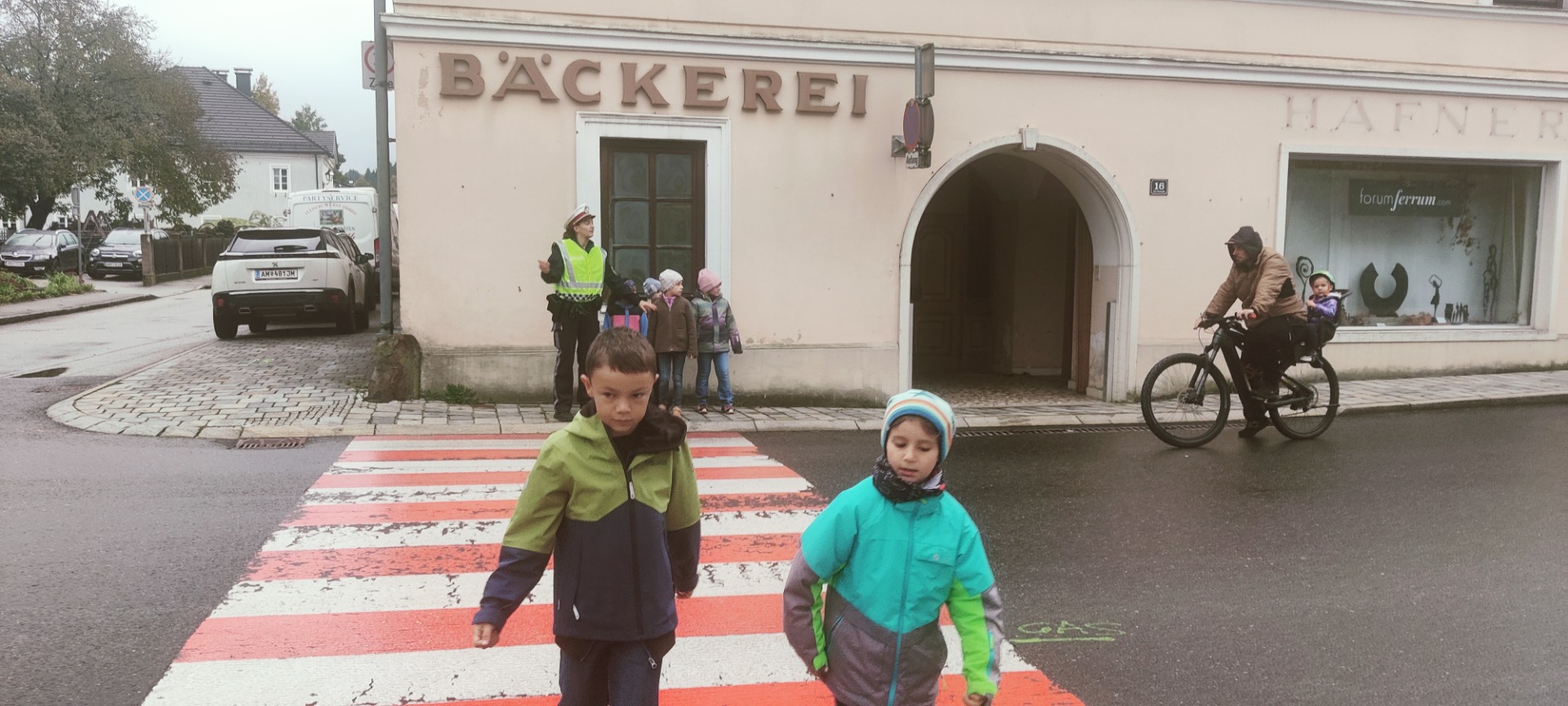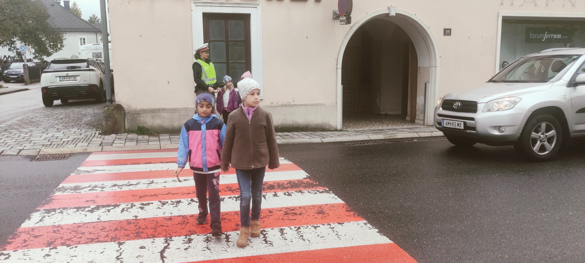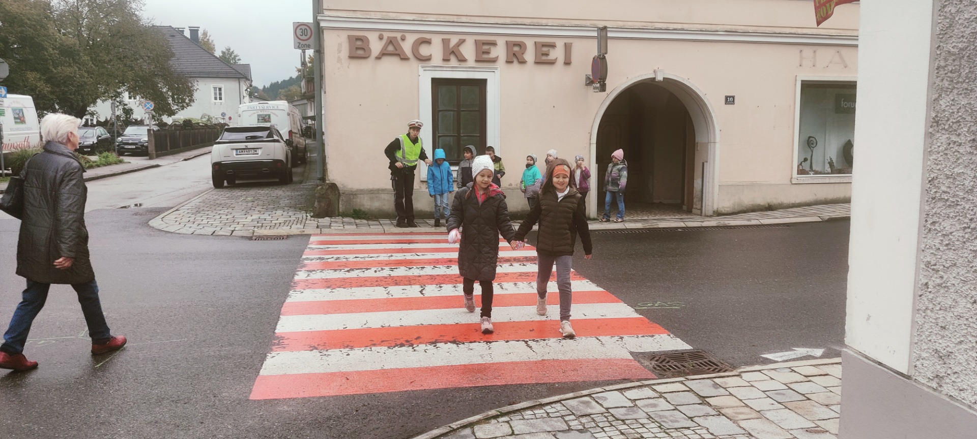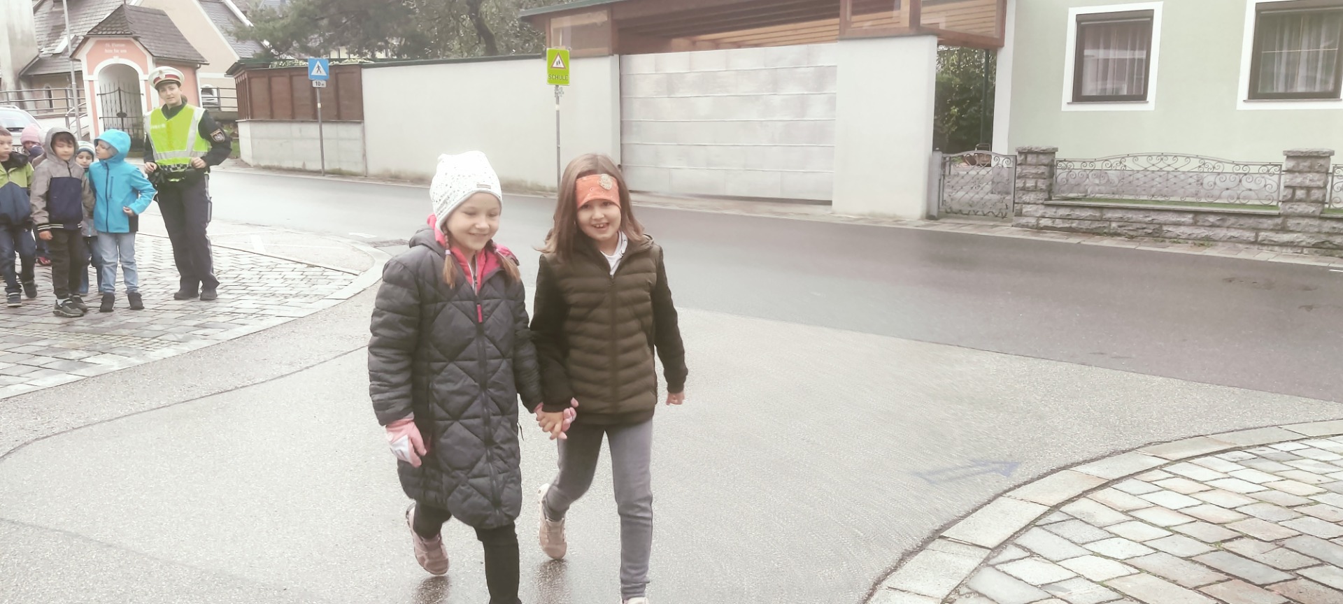 Auch in der 2. Klasse besuchte uns die Polizistin und ging mit uns den Schulweg ab. Wir lernten auch an schwierigen Stellen die Straße sicher zu überqueren. Alle Kinder konnten das Gelernte gut im Straßenverkehr umsetzen. Beim Planieren des Parkplatzes machten wir auch einen kurzen Halt, um die besonderen Fahrzeuge zu bewundern. Das Tollste kommt aber meistens zum Schluss. Wir durften auch das Polizeiauto mit Blaulicht, den Defibrillator im Auto und die kugelsichere Weste sehen. Beim Anprobieren konnten wir fühlen, wie schwer diese besondere Schutzkleidung ist. Herzlichen Dank für diese großartige Einheit mit der Polizei.