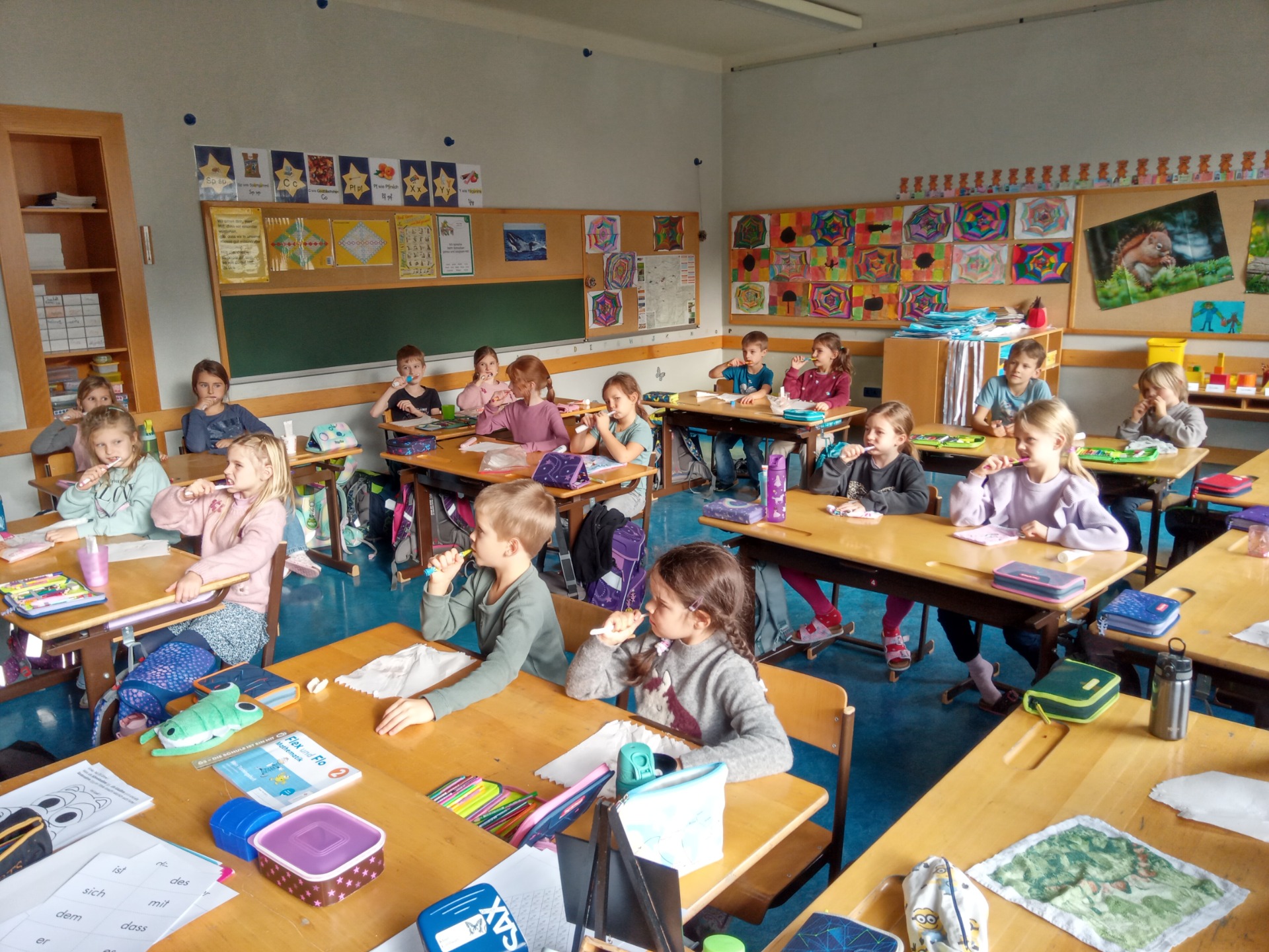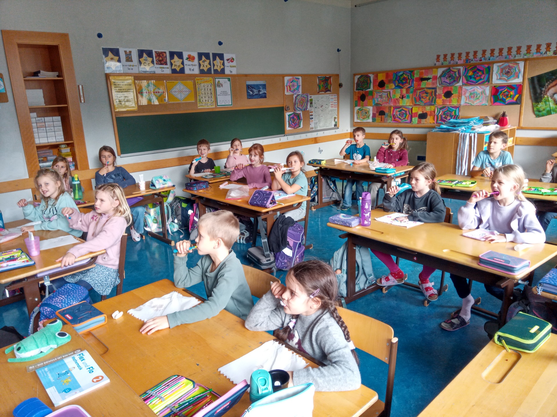 Das richtige Zähneputzen durfte ebenfalls nicht fehlen.