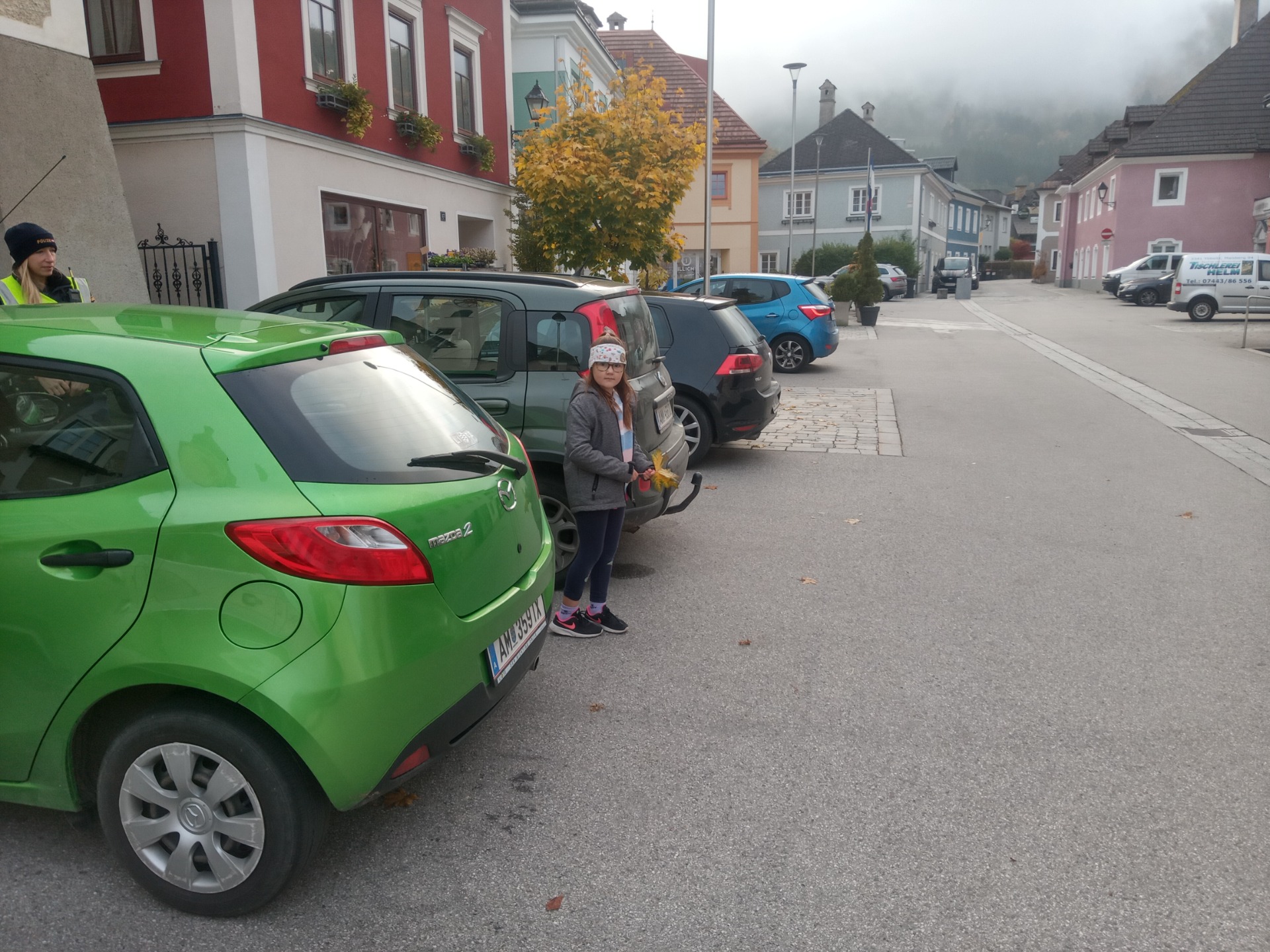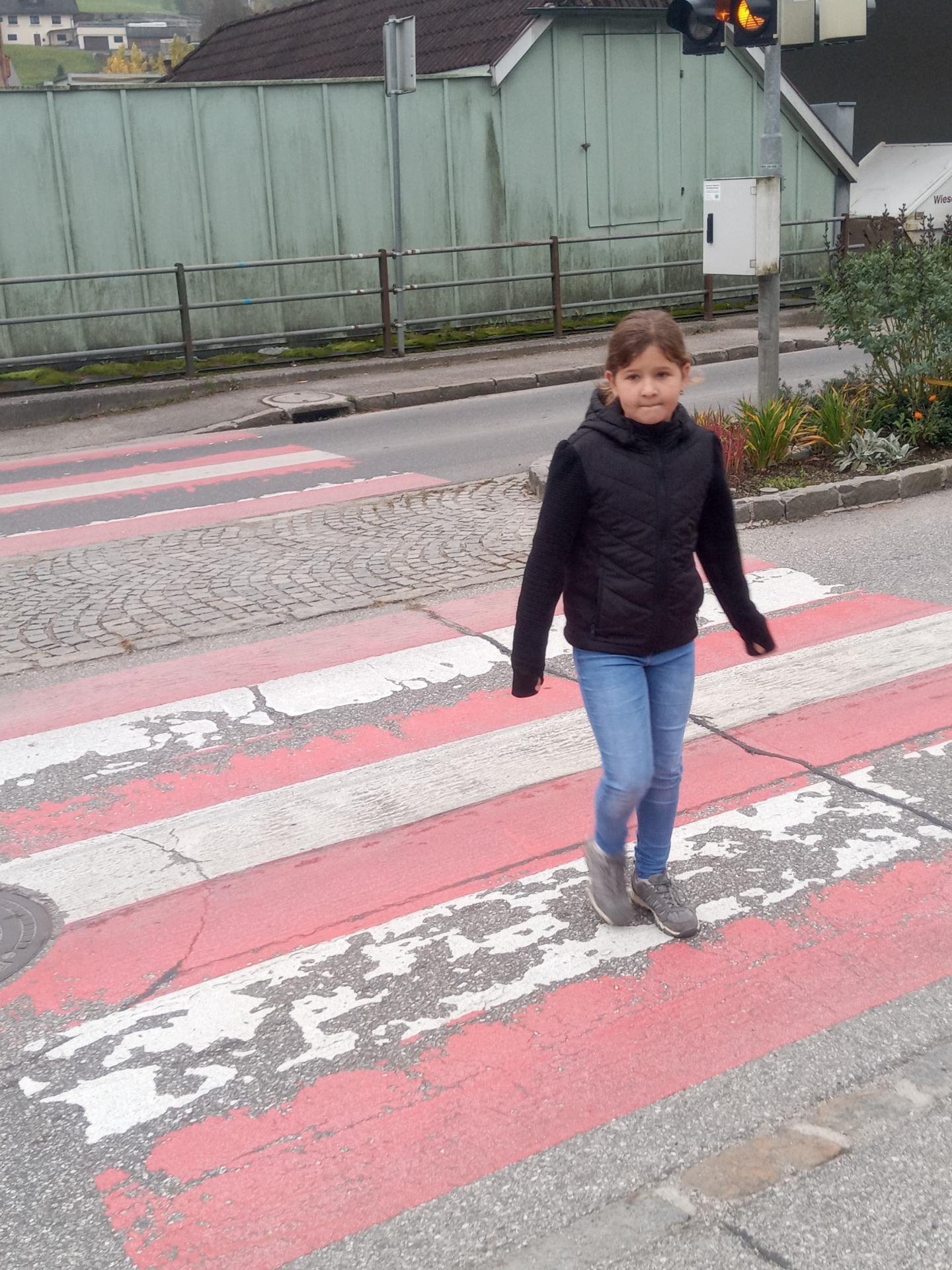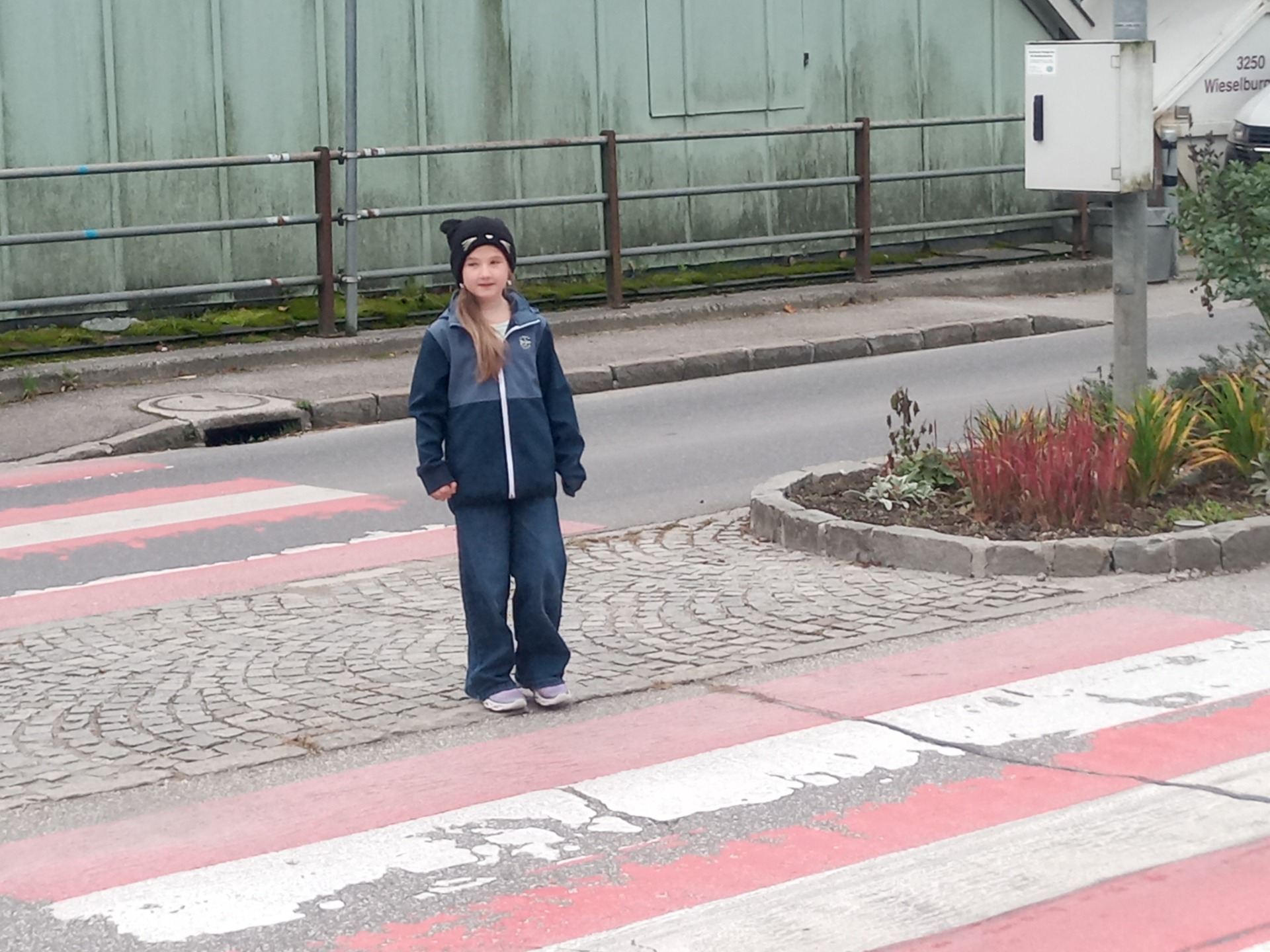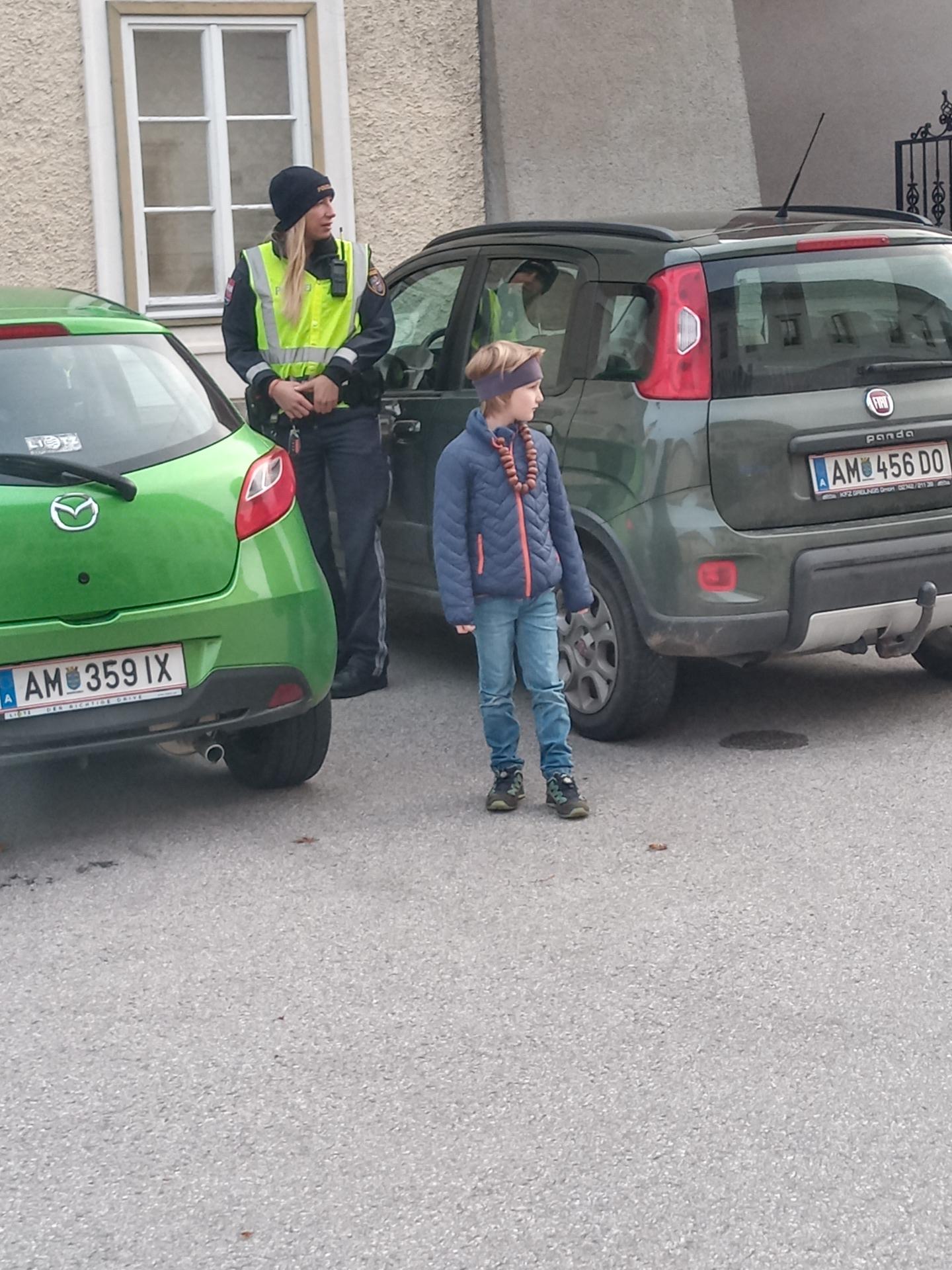 Am 14. Oktober besuchte uns eine Polizistin aus Waidhofen, um mit uns das sichere Überqueren der Straße zu üben. Dazu suchte sie für uns gleich die Bundesstraße als Übungsort aus. Anschließend übten wir noch das richtige Überqueren zwischen 2 Autos.