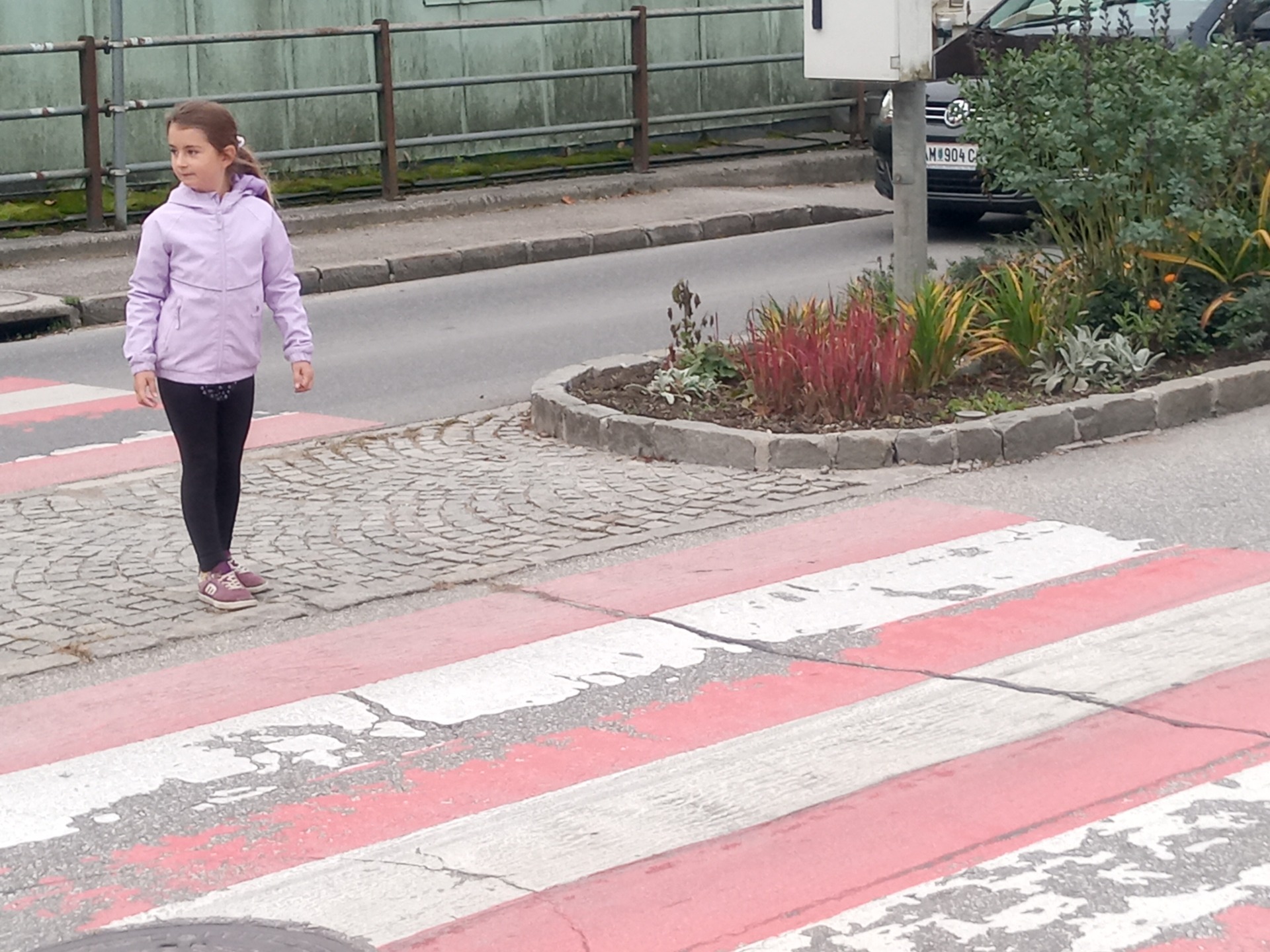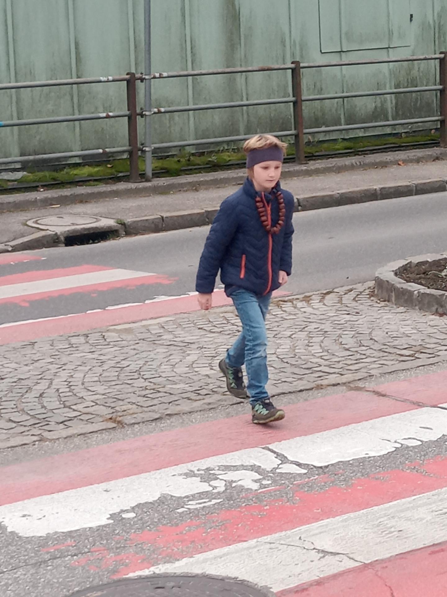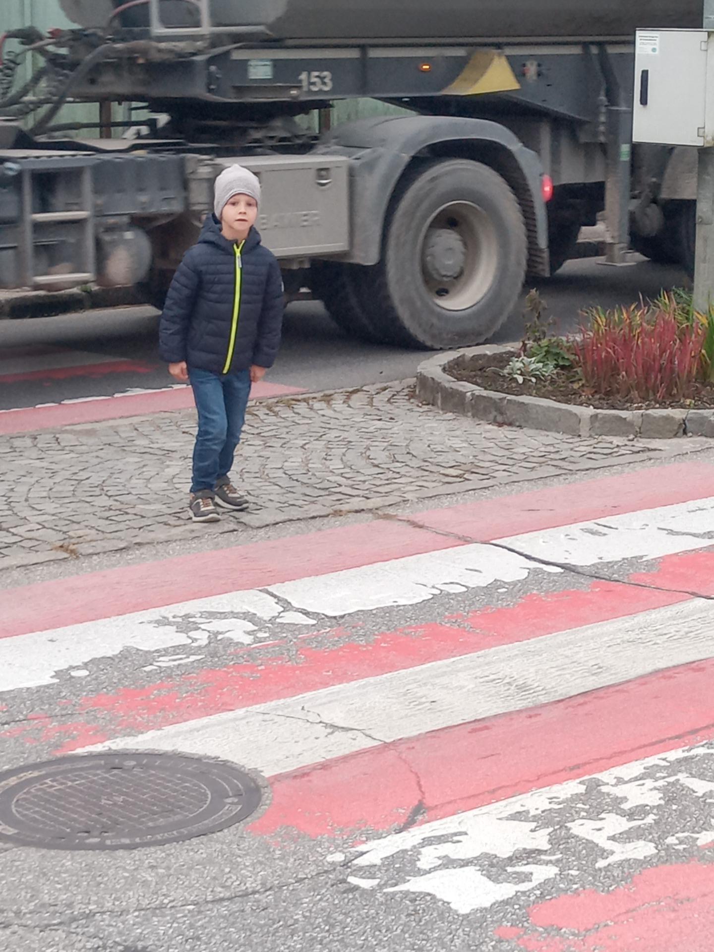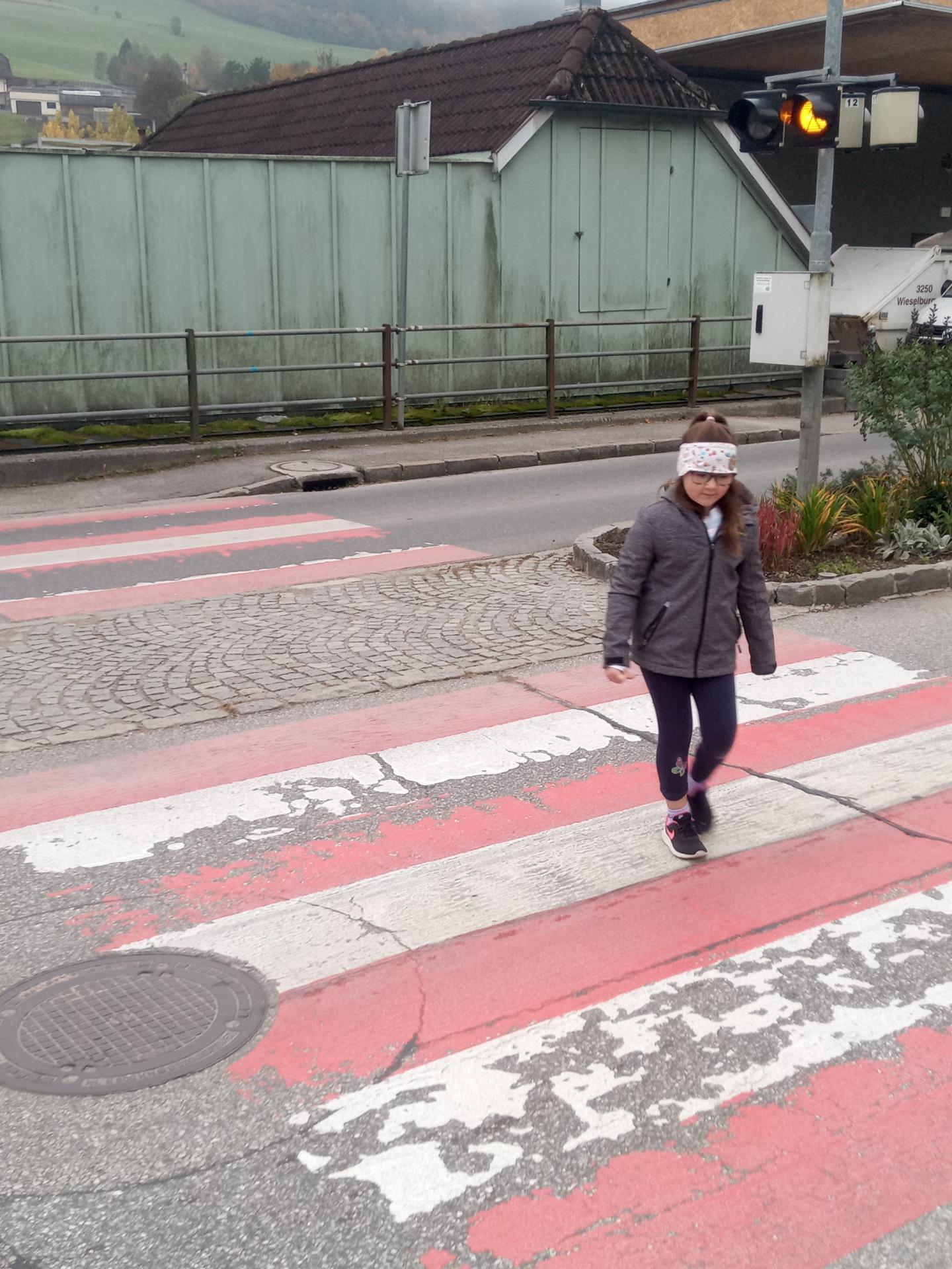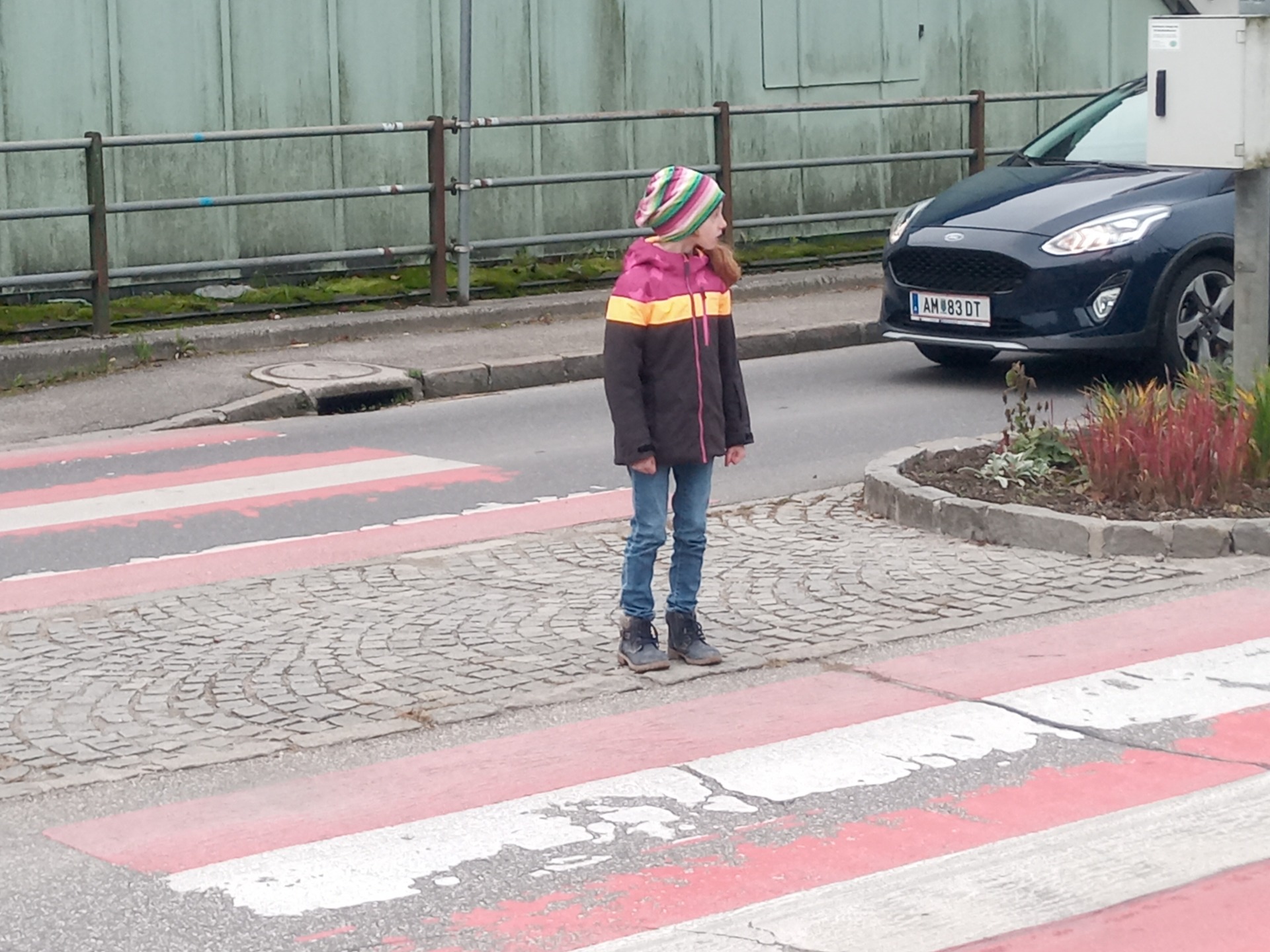 Am 14. Oktober besuchte uns eine Polizistin aus Waidhofen, um mit uns das sichere Überqueren der Straße zu üben. Dazu suchte sie für uns gleich die Bundesstraße als Übungsort aus. Anschließend übten wir noch das richtige Überqueren zwischen 2 Autos.