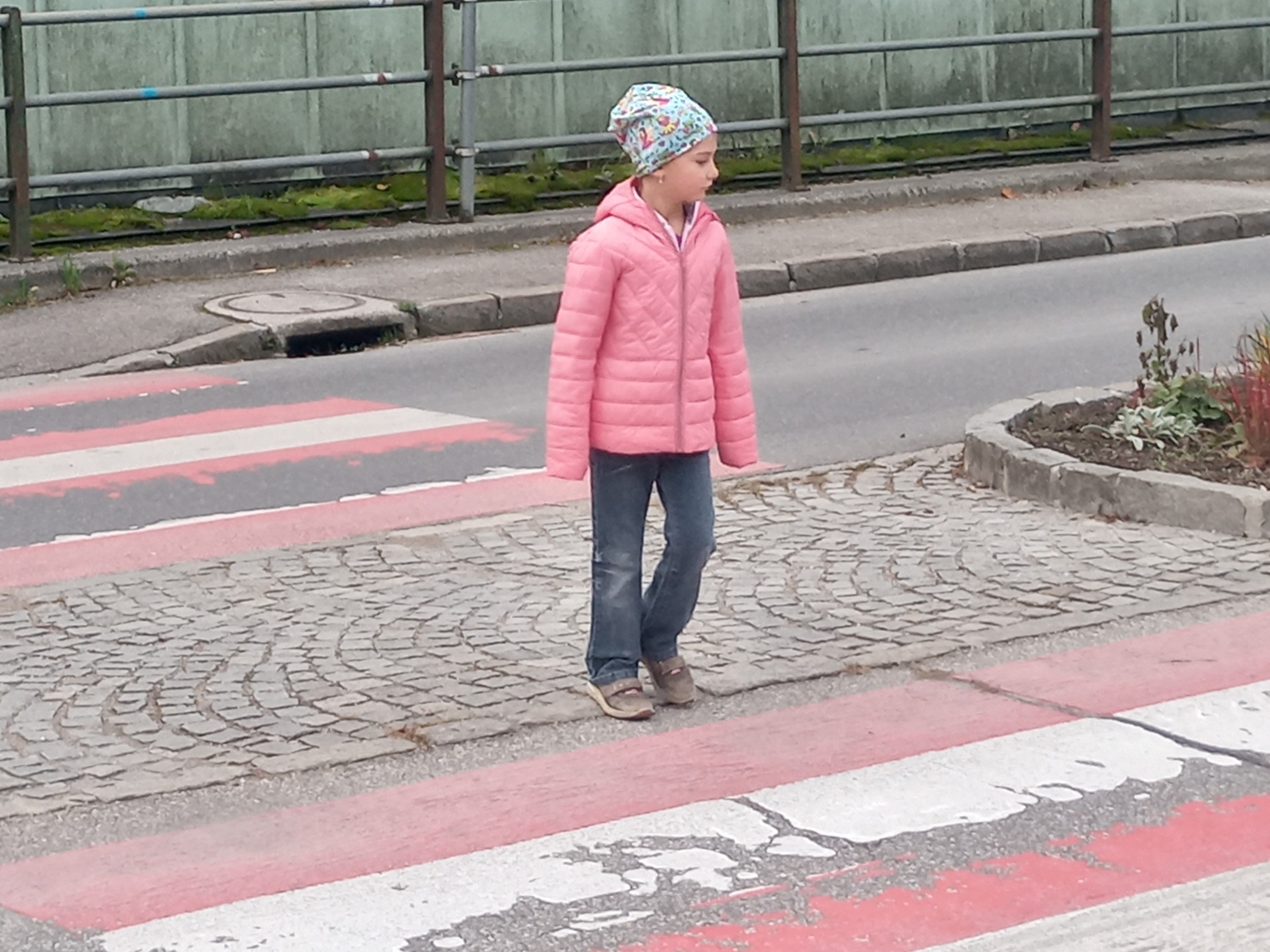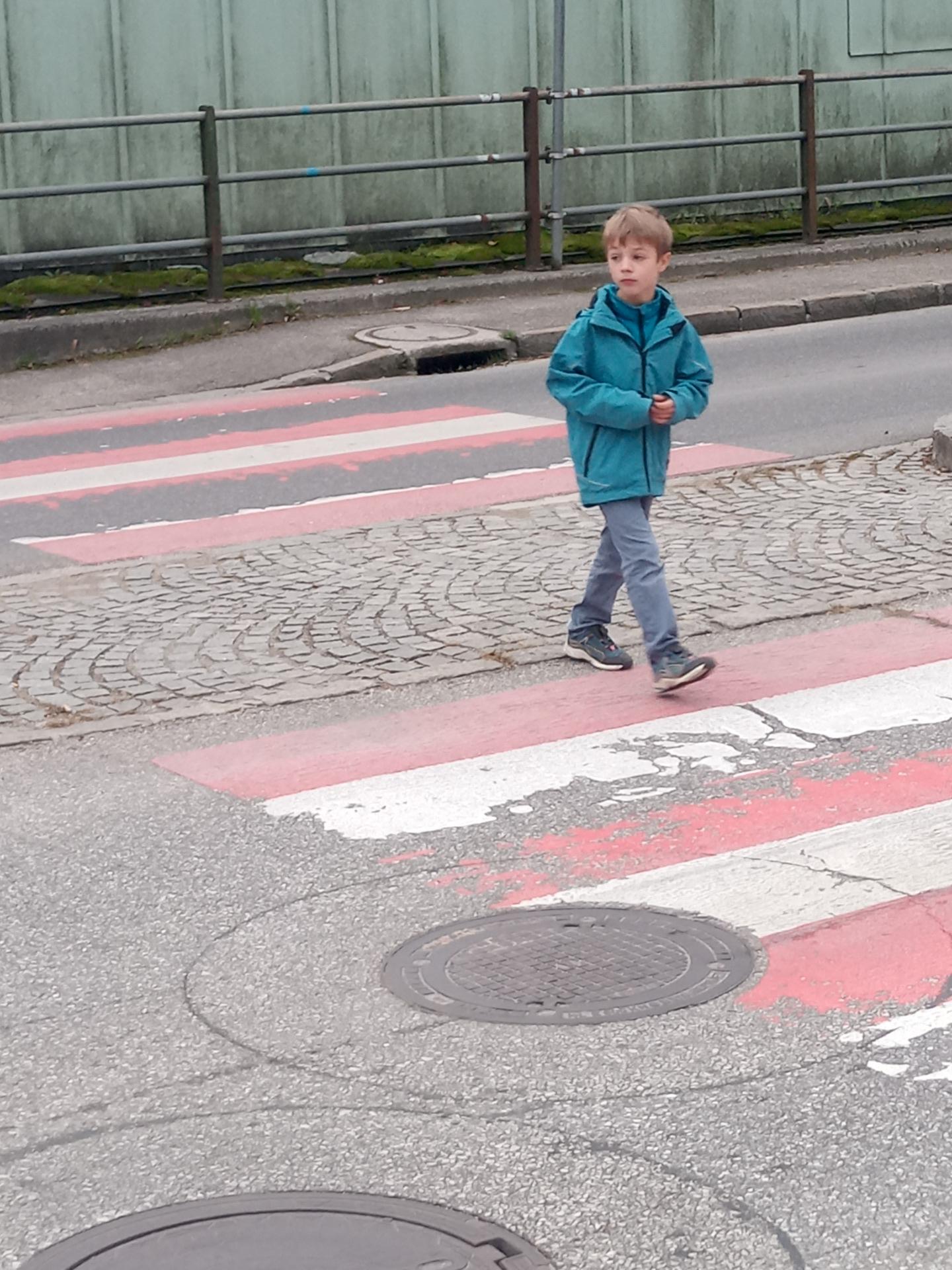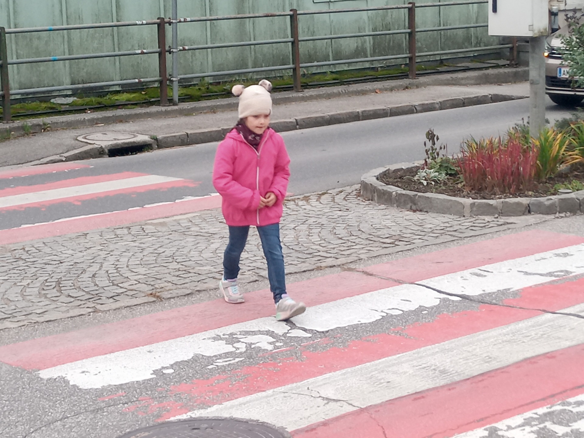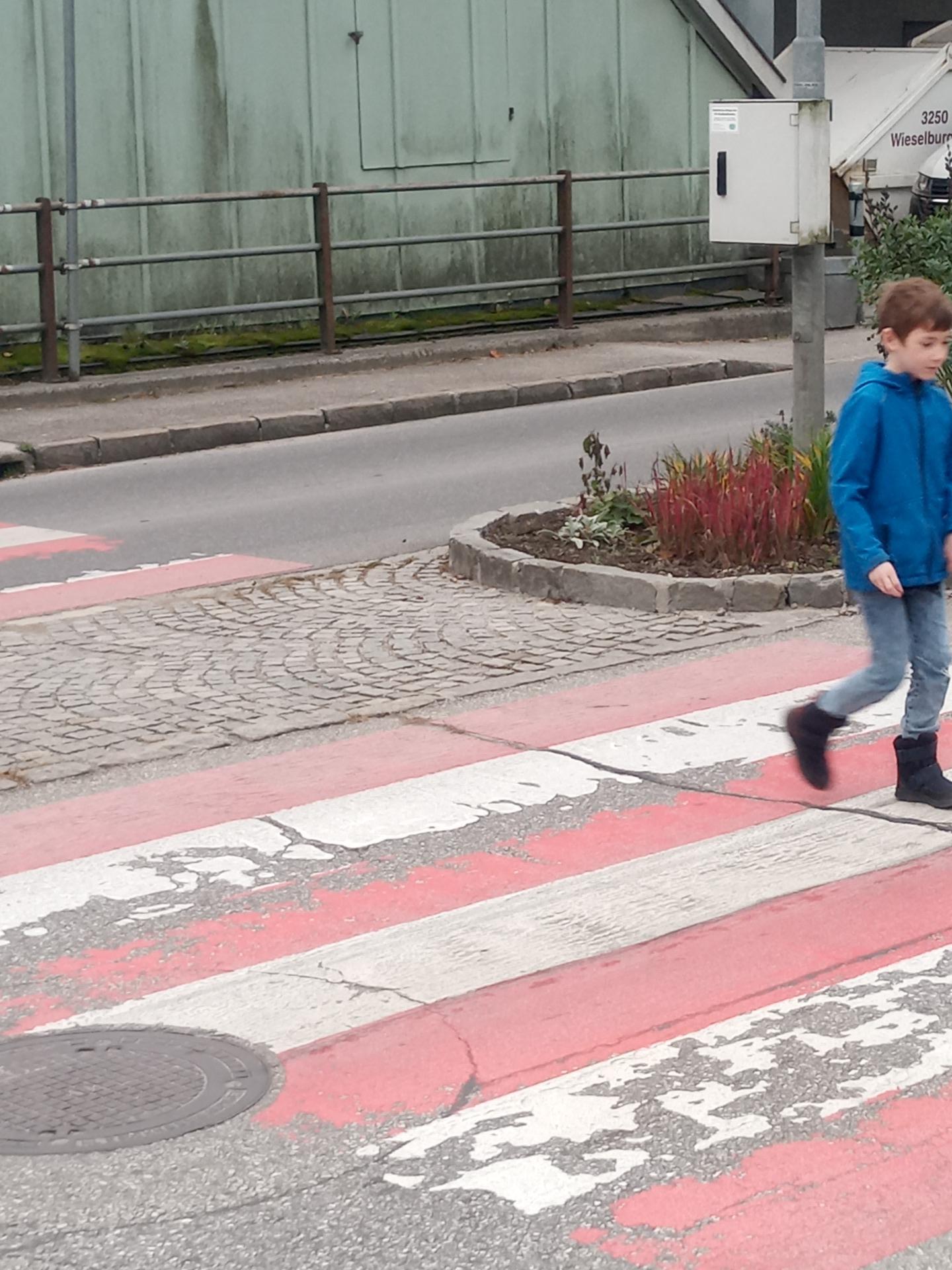 Am 14. Oktober besuchte uns eine Polizistin aus Waidhofen, um mit uns das sichere Überqueren der Straße zu üben. Dazu suchte sie für uns gleich die Bundesstraße als Übungsort aus. Anschließend übten wir noch das richtige Überqueren zwischen 2 Autos.