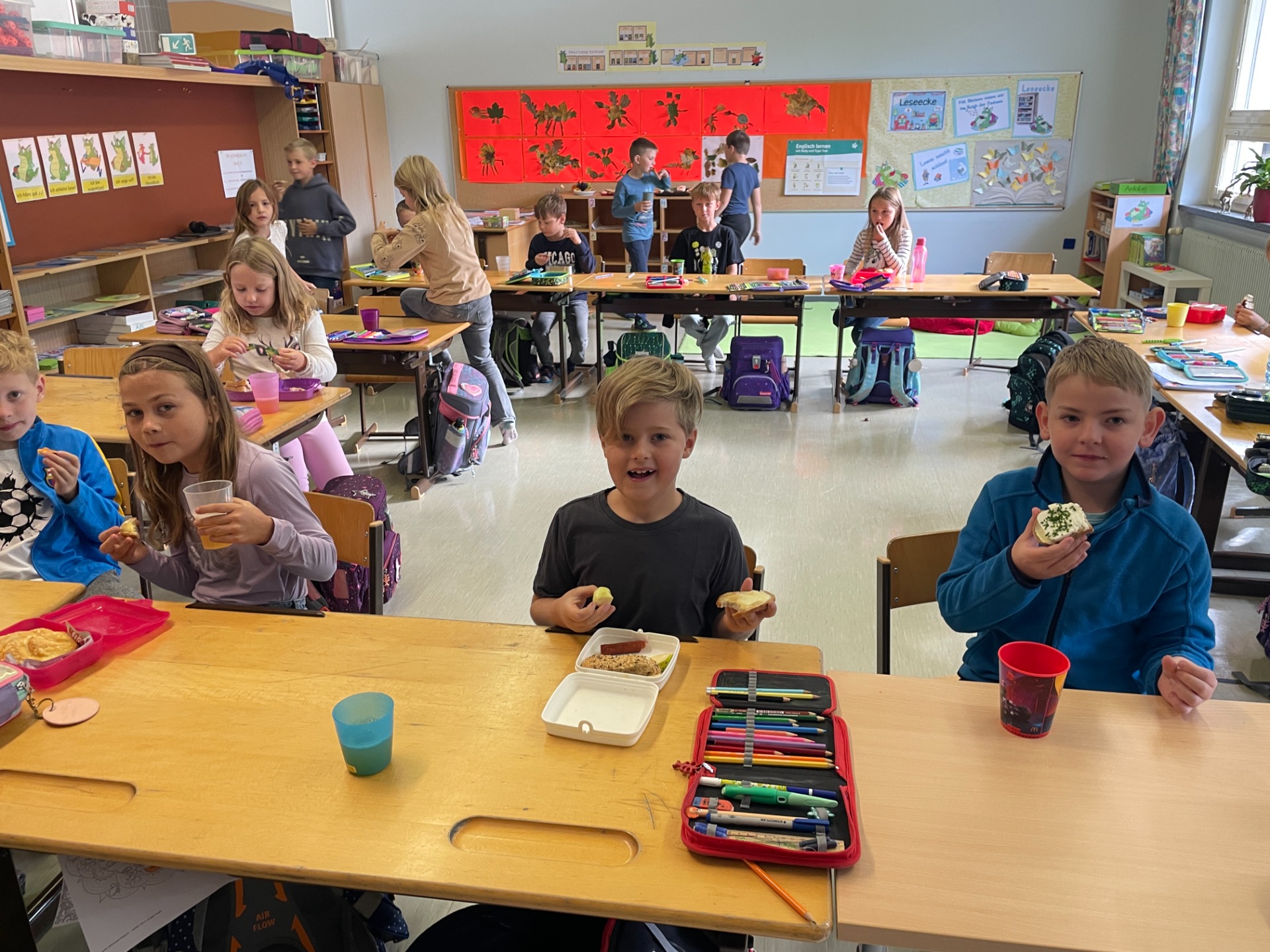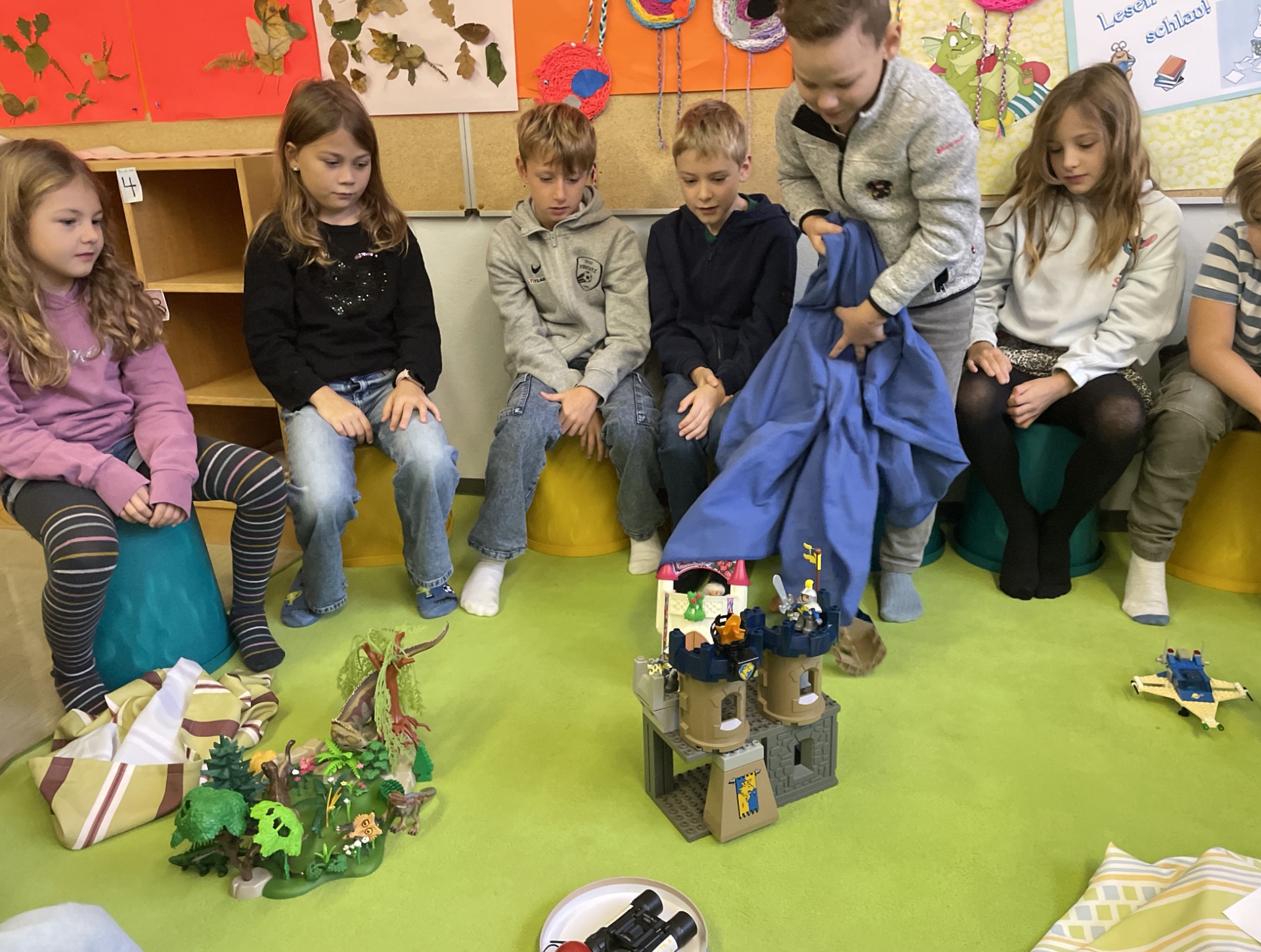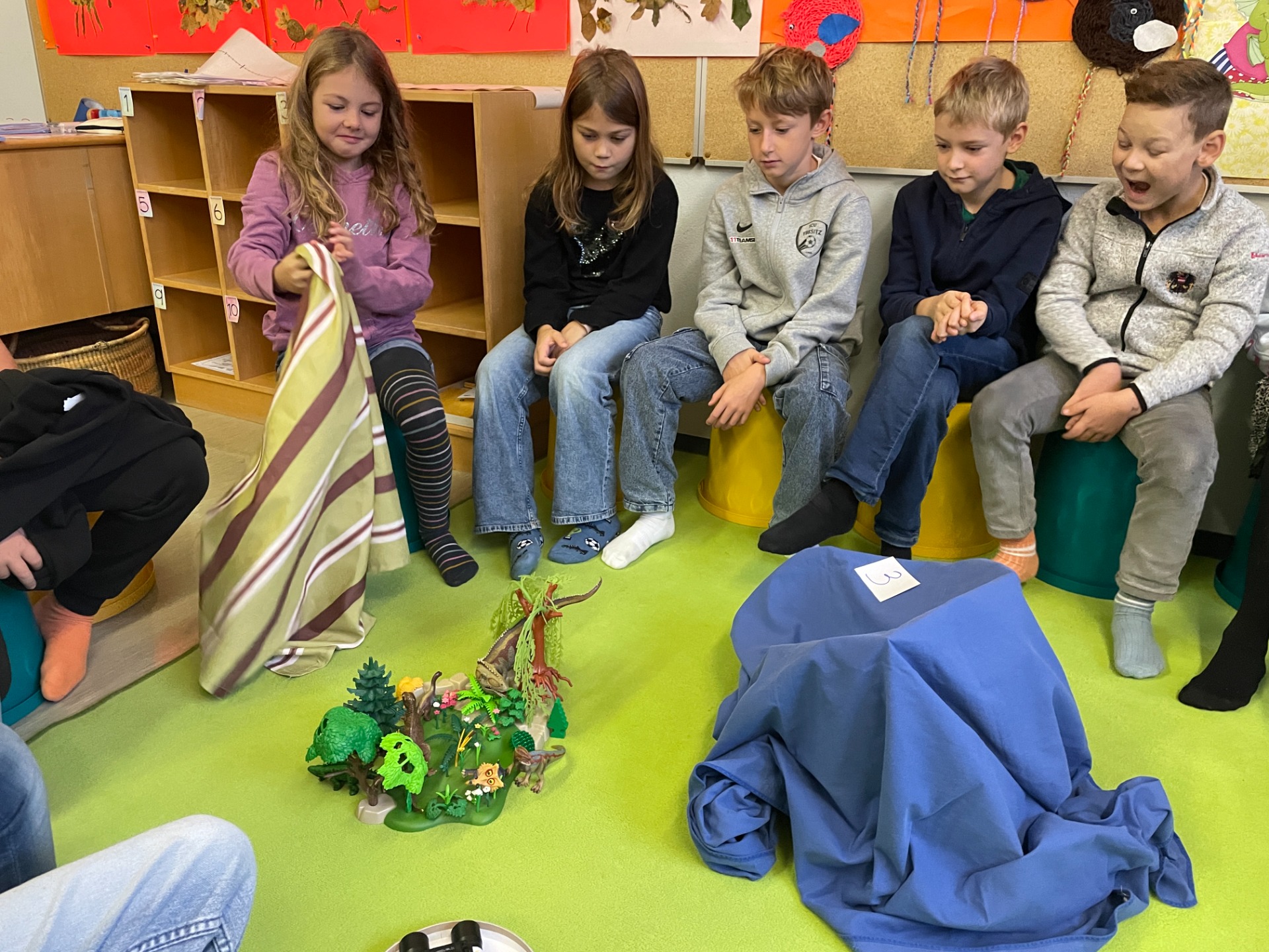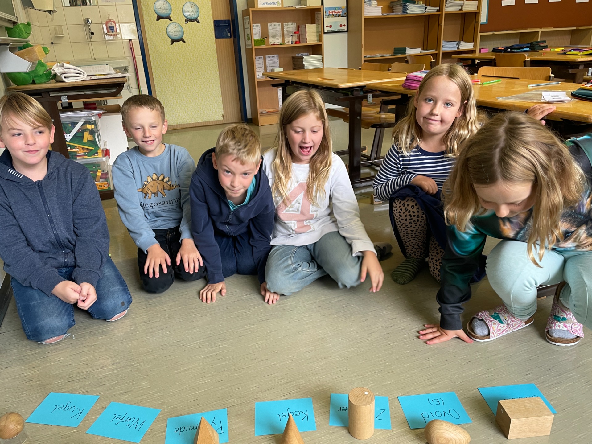 Bewegung im Freien, Fossilien nachbauen, Erntedankfest, über die Körper lernen und Pyramiden bauen, mit vielen Materialien im ZR 1000 zählen, Experimente mit Rotkrautsaft, Zitronensaft und Waschmittel, Grundriss kennenlernen, in Deutsch in die Vergangenheit und Zukunft reisen, …