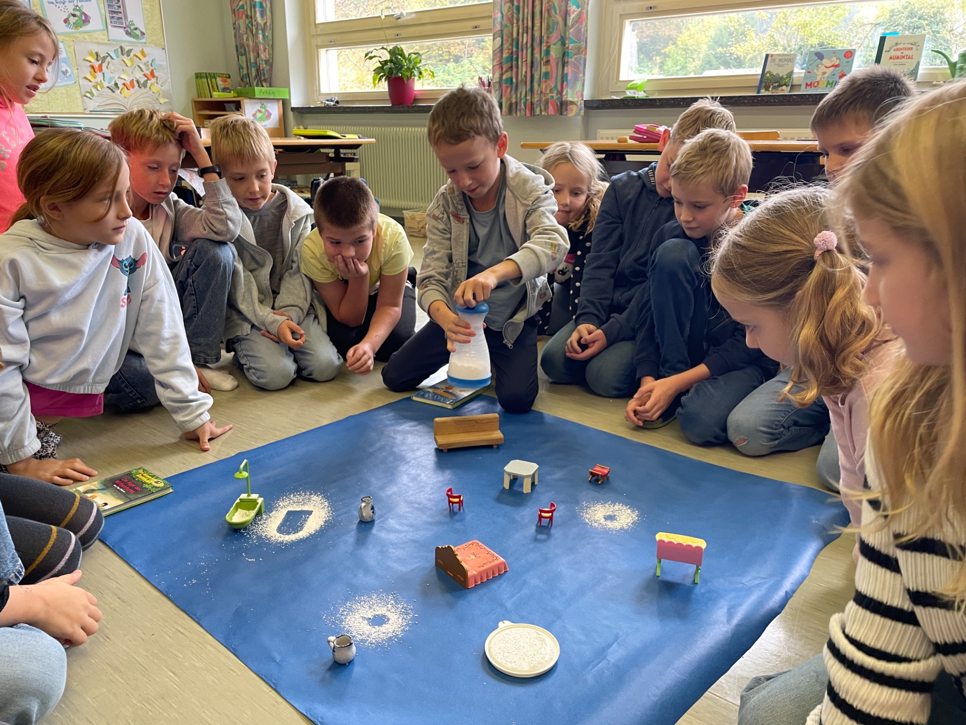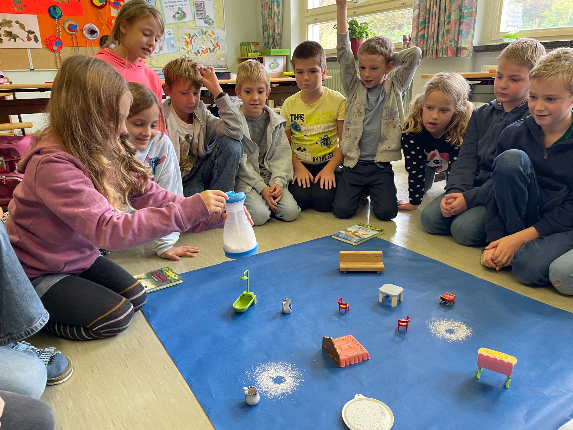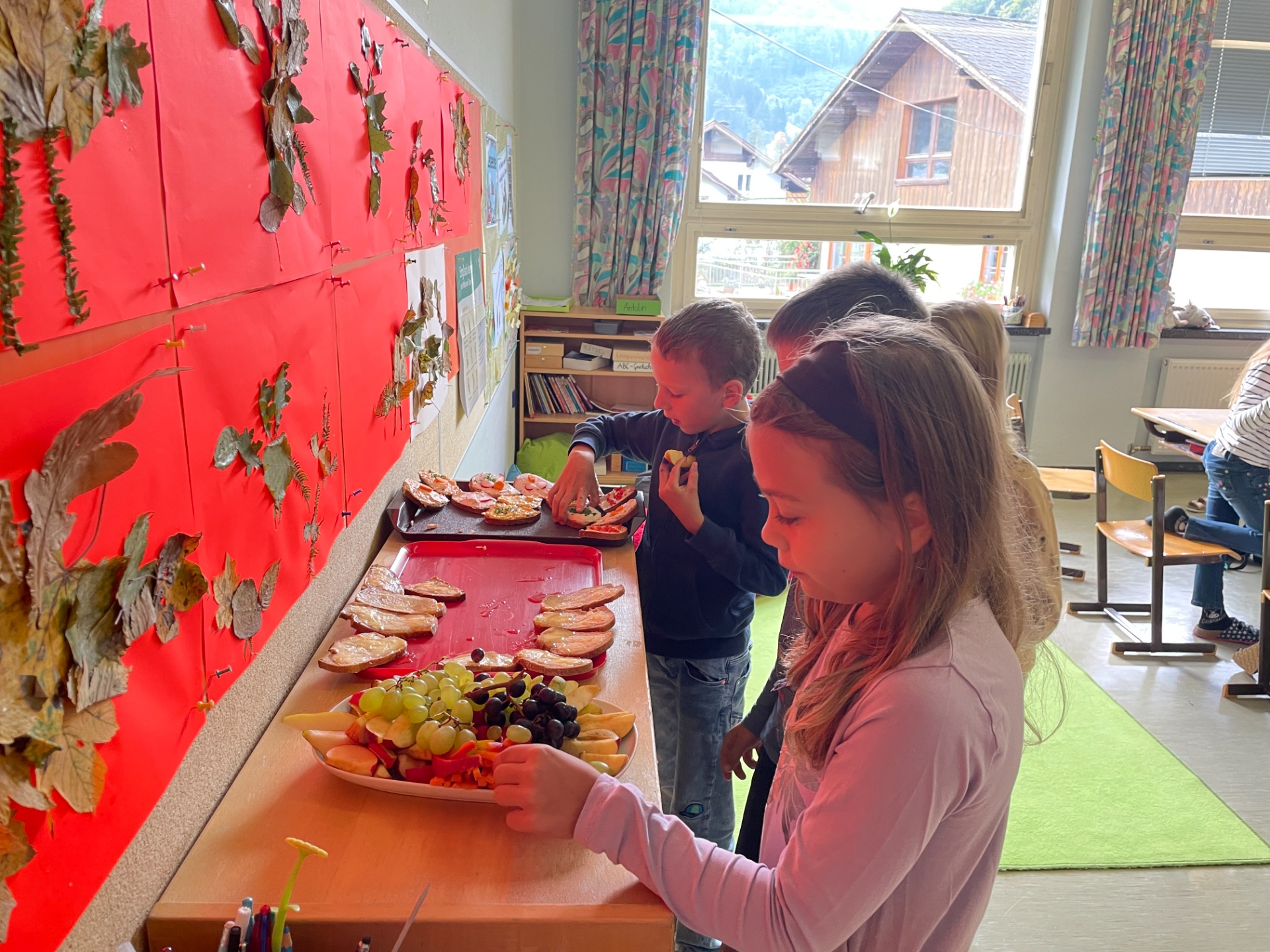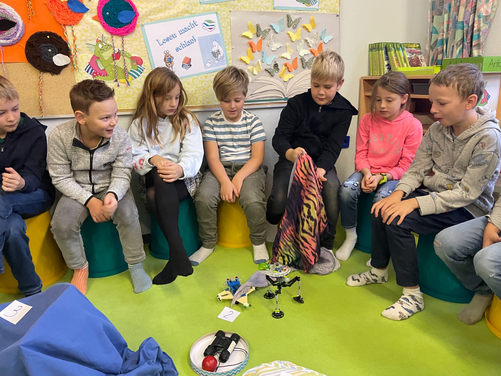 Bewegung im Freien, Fossilien nachbauen, Erntedankfest, über die Körper lernen und Pyramiden bauen, mit vielen Materialien im ZR 1000 zählen, Experimente mit Rotkrautsaft, Zitronensaft und Waschmittel, Grundriss kennenlernen, in Deutsch in die Vergangenheit und Zukunft reisen, …