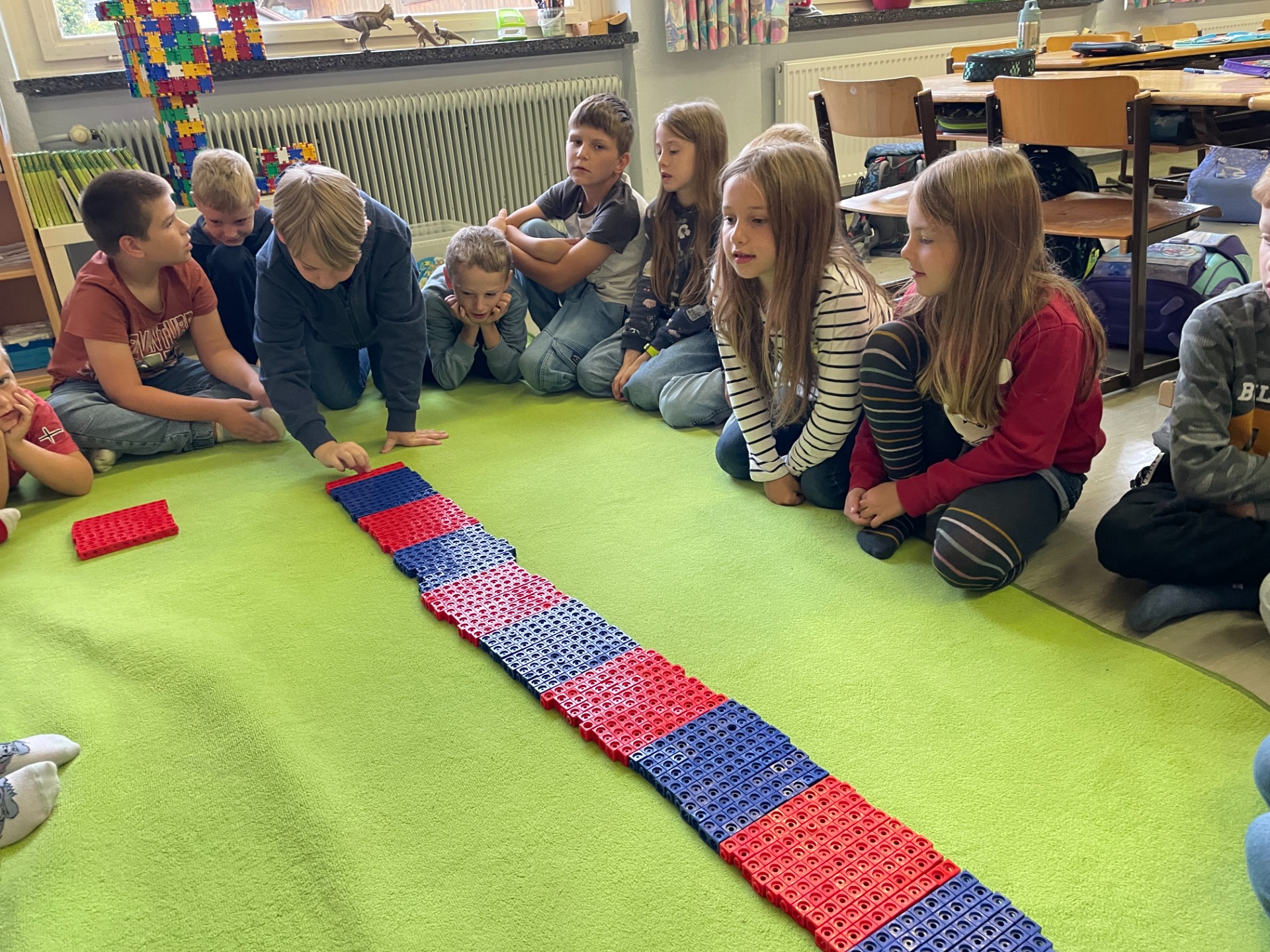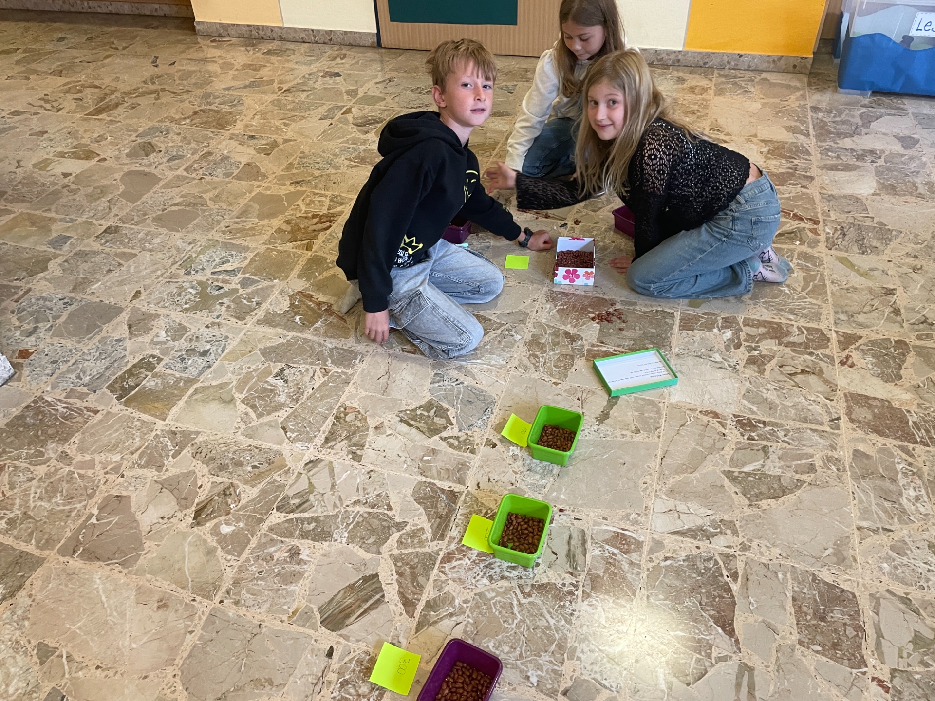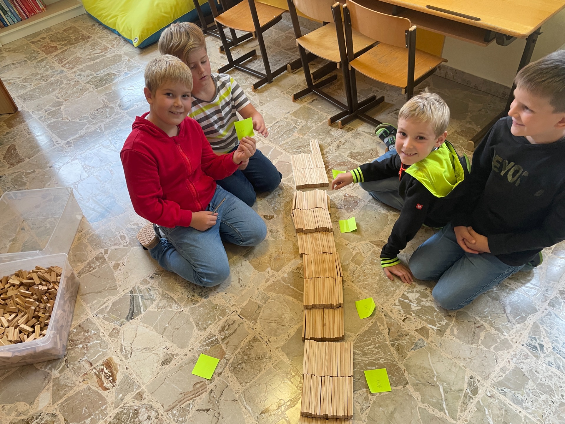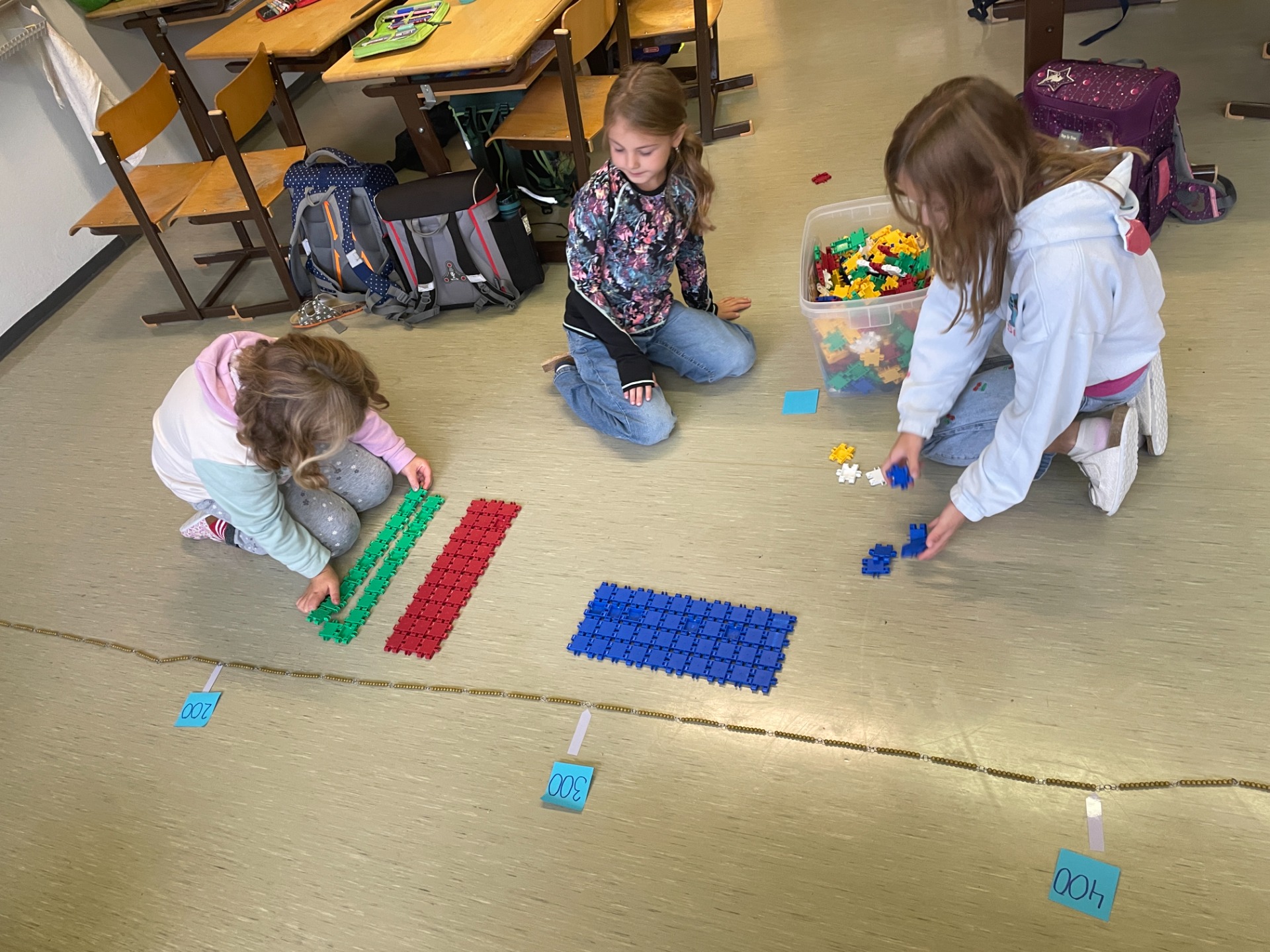 Bewegung im Freien, Fossilien nachbauen, Erntedankfest, über die Körper lernen und Pyramiden bauen, mit vielen Materialien im ZR 1000 zählen, Experimente mit Rotkrautsaft, Zitronensaft und Waschmittel, Grundriss kennenlernen, in Deutsch in die Vergangenheit und Zukunft reisen, …