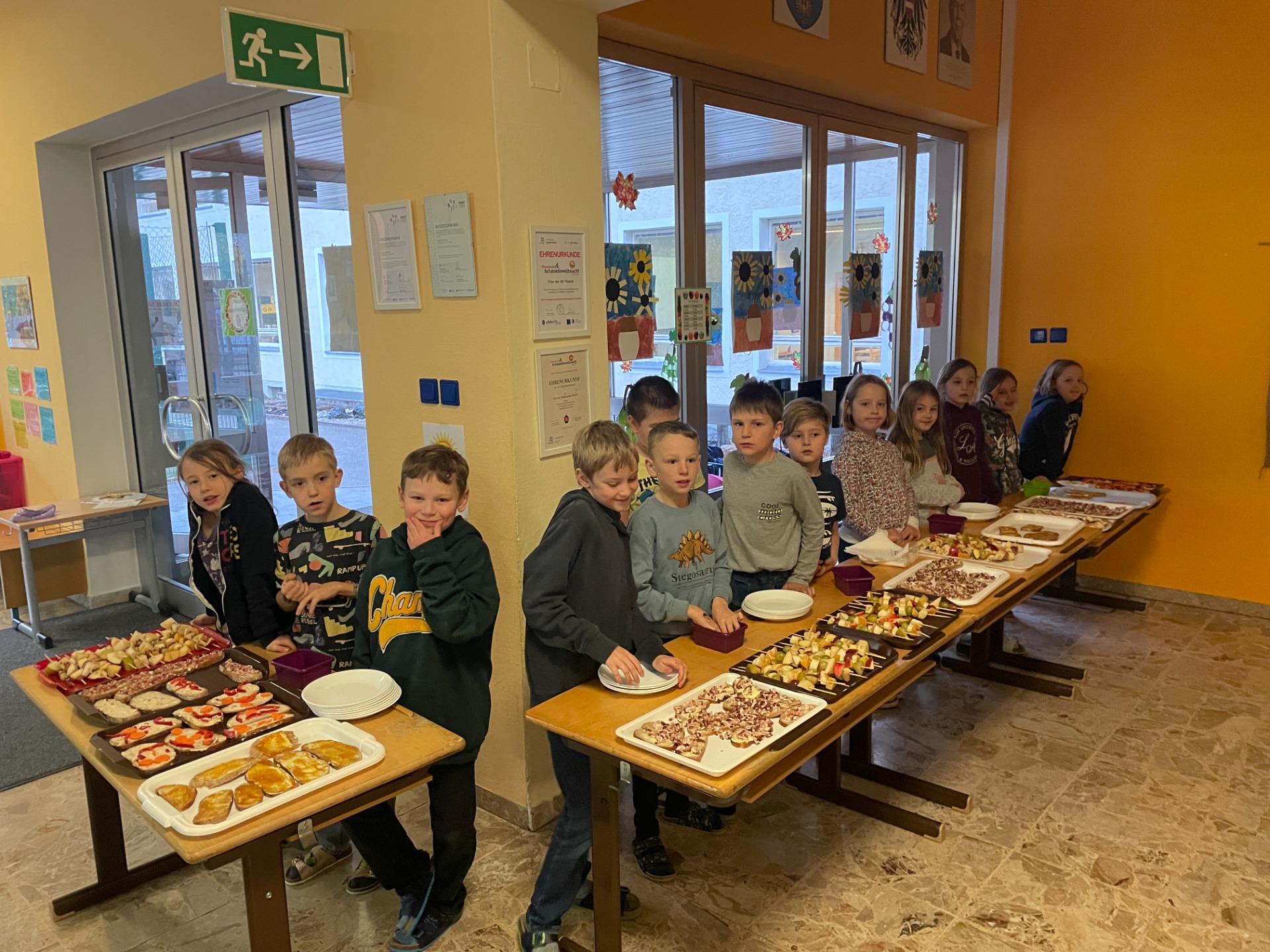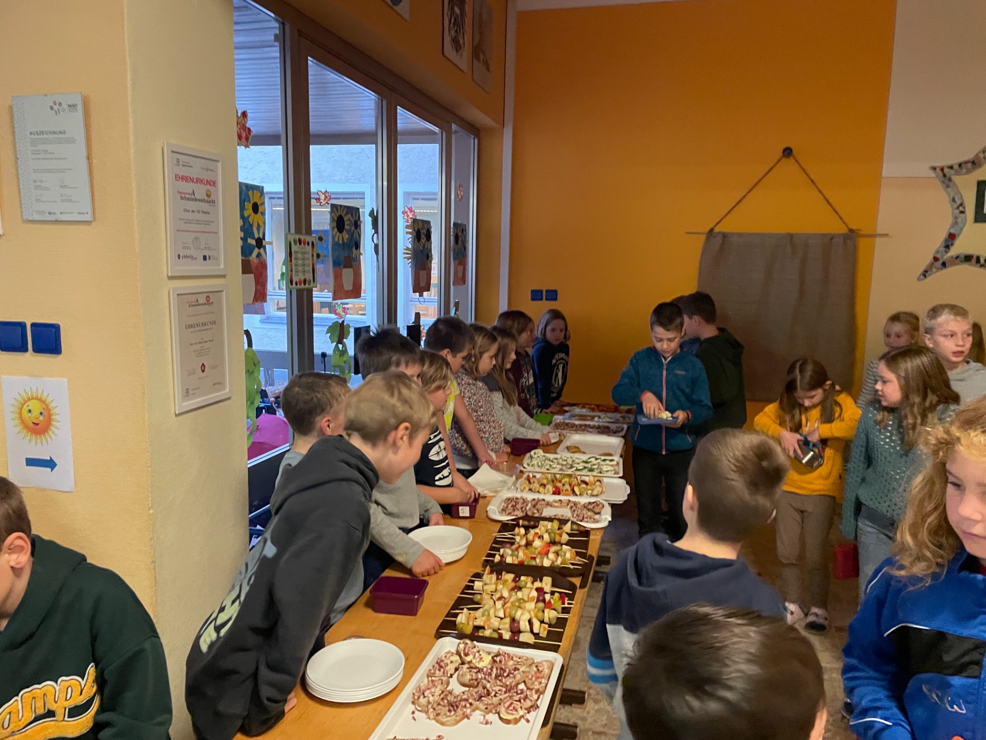 Jausenverkauf und Bewegung im Turnsaal