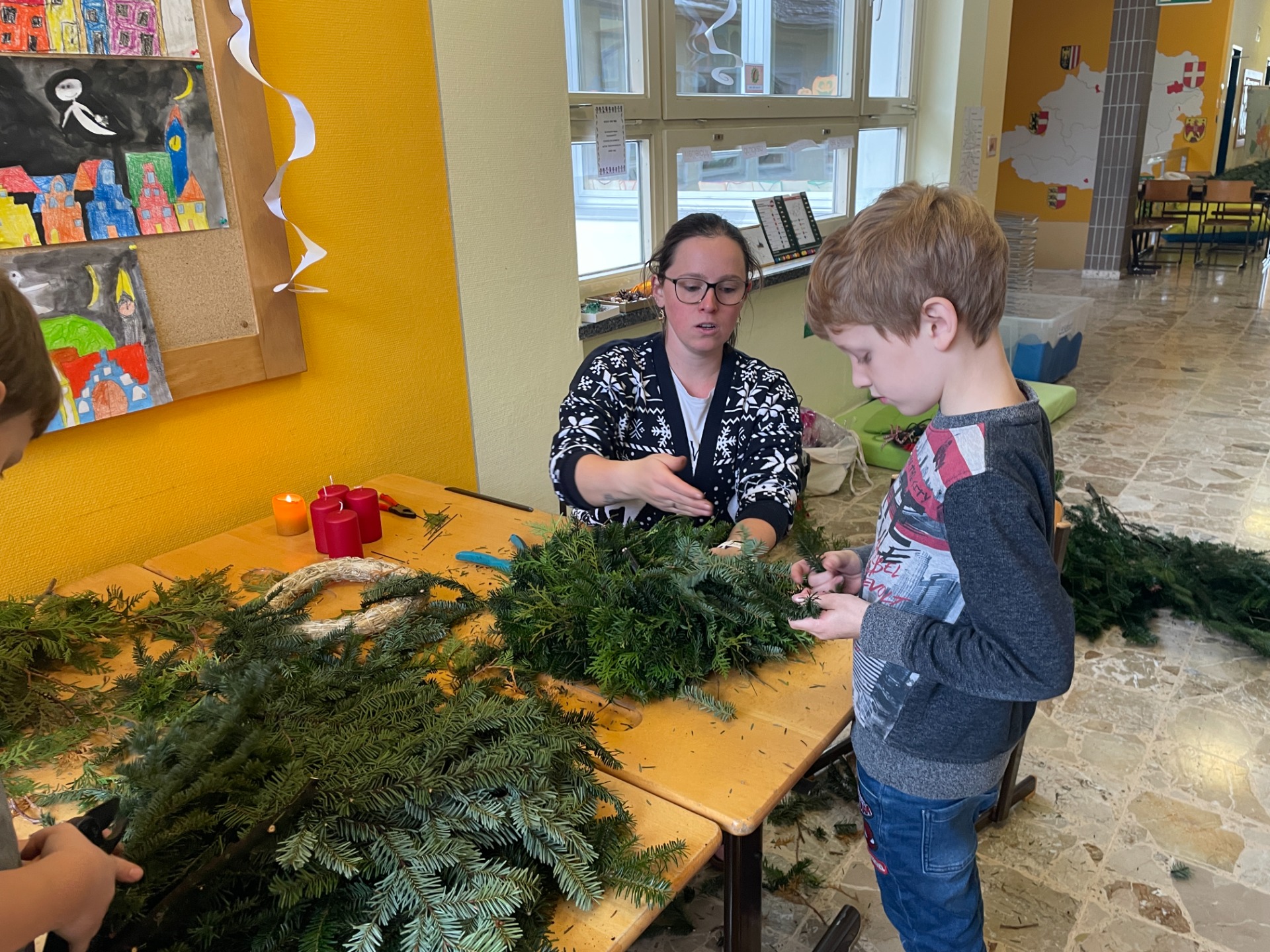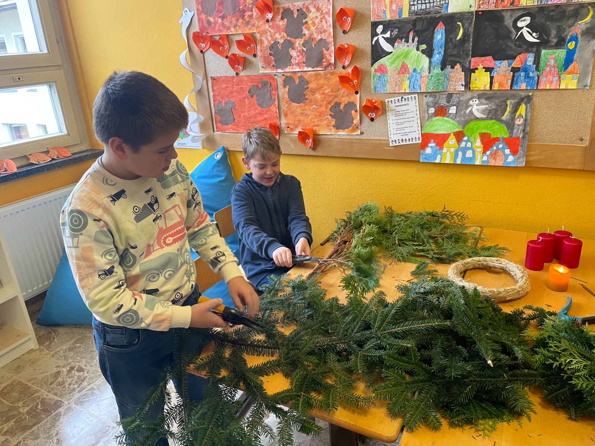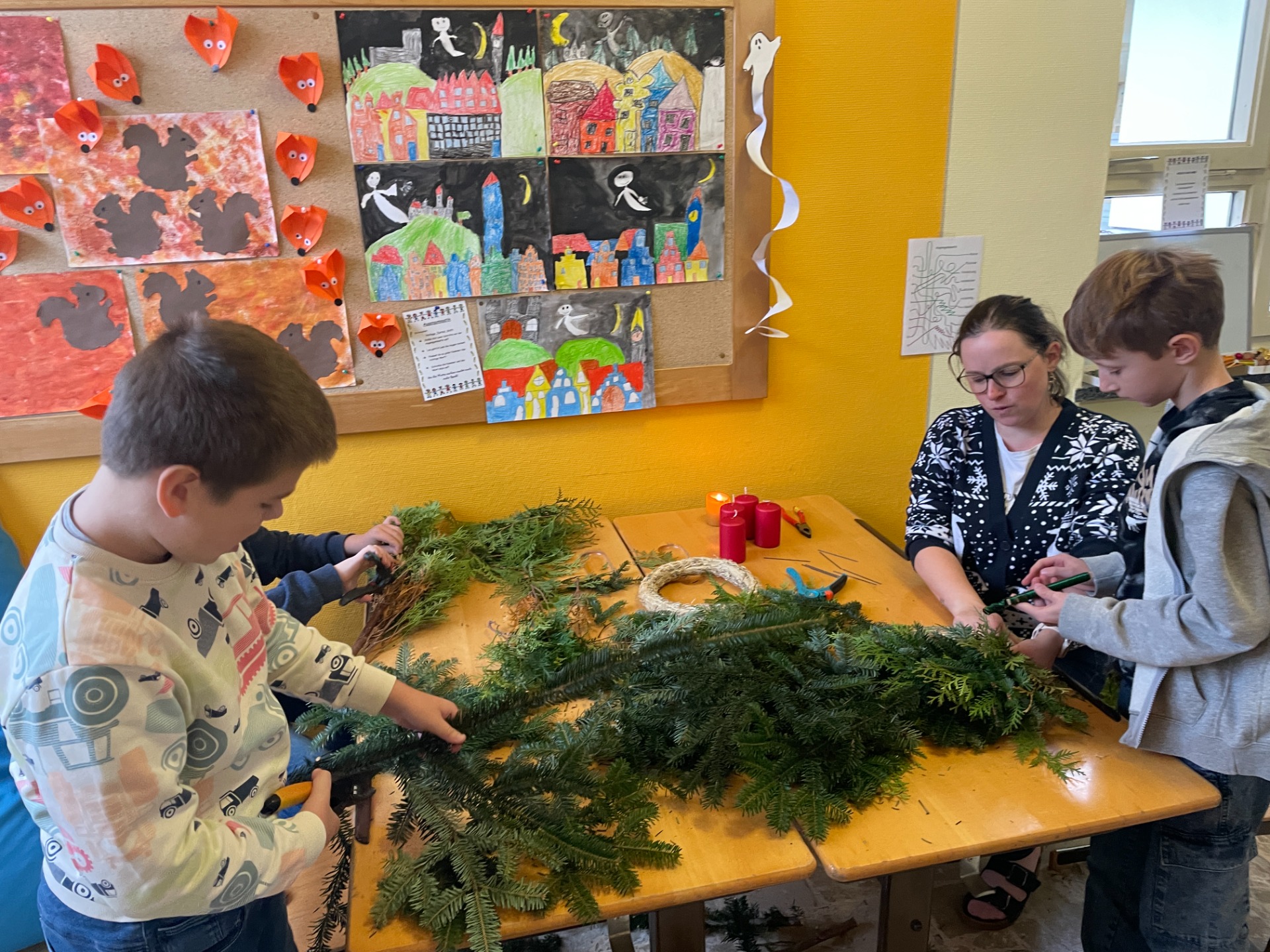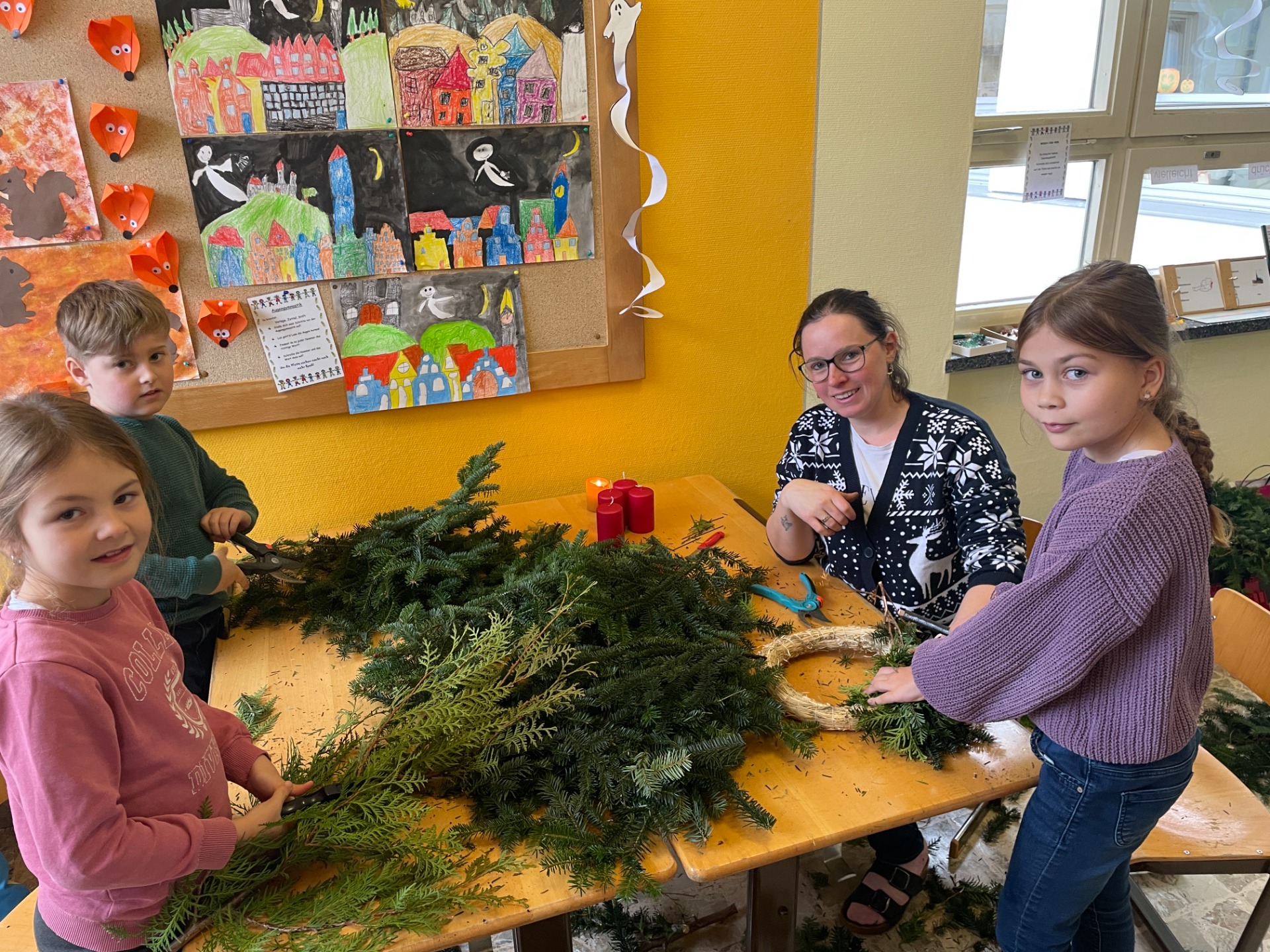 Spaß beim Adventkranzbinden und Toben im Schnee