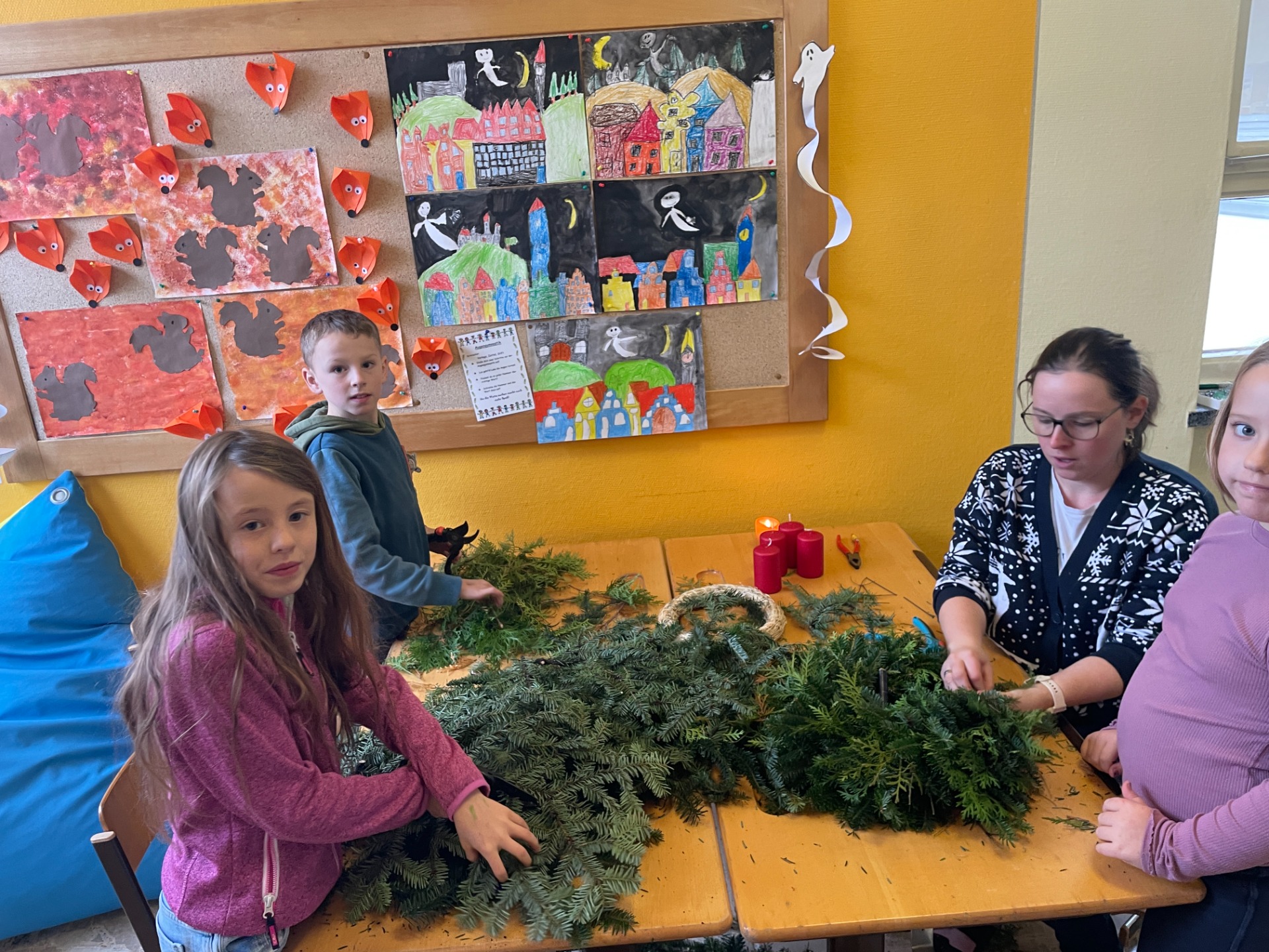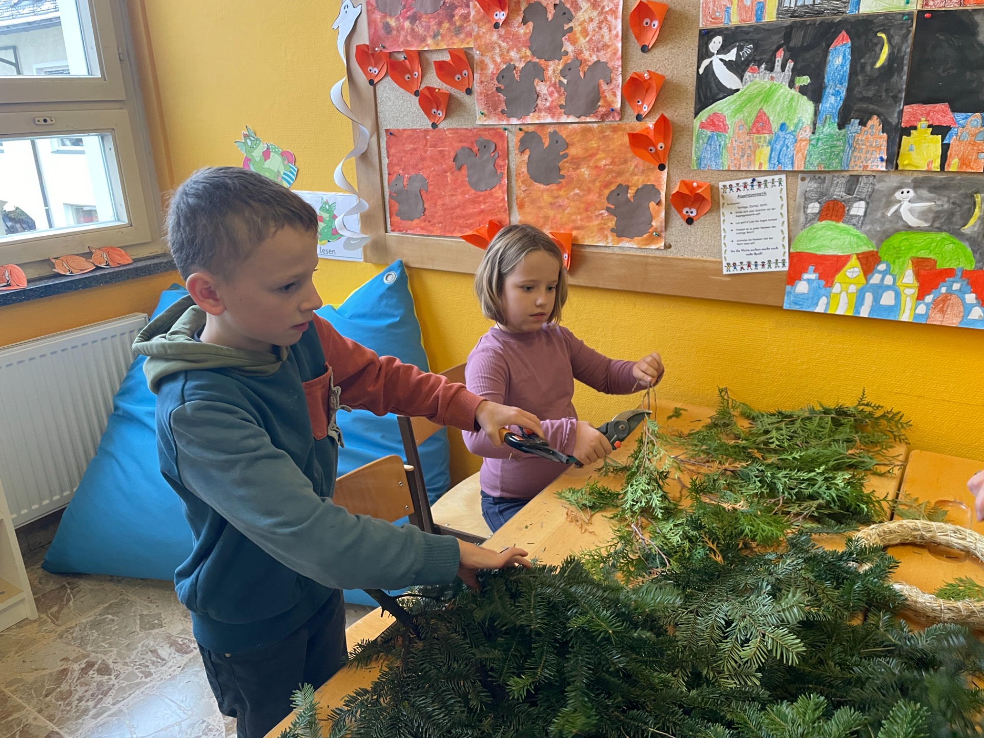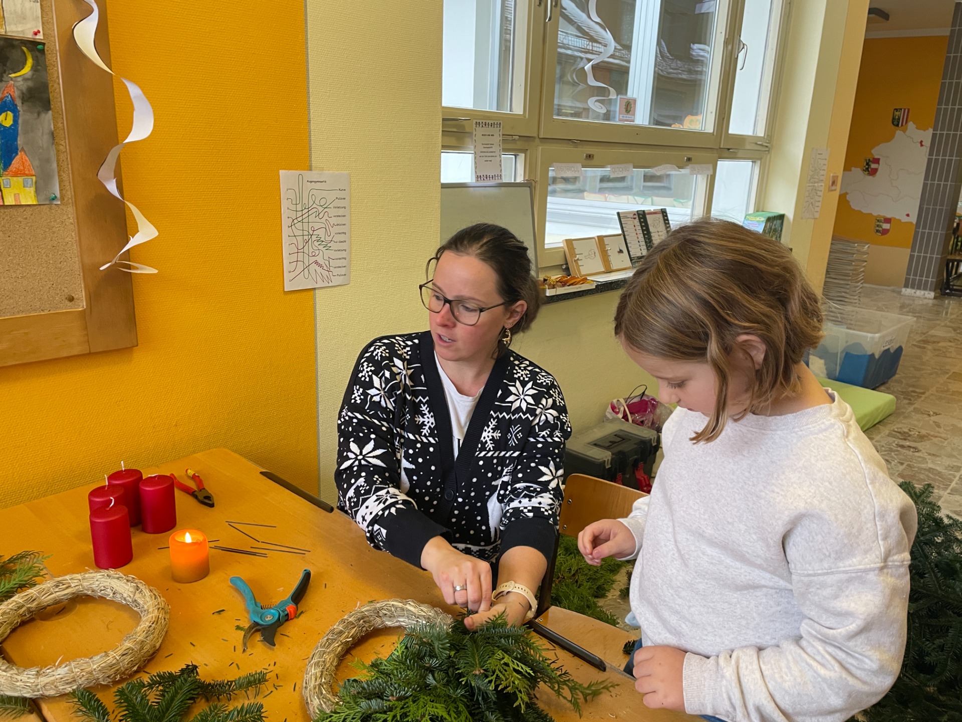 Spaß beim Adventkranzbinden und Toben im Schnee