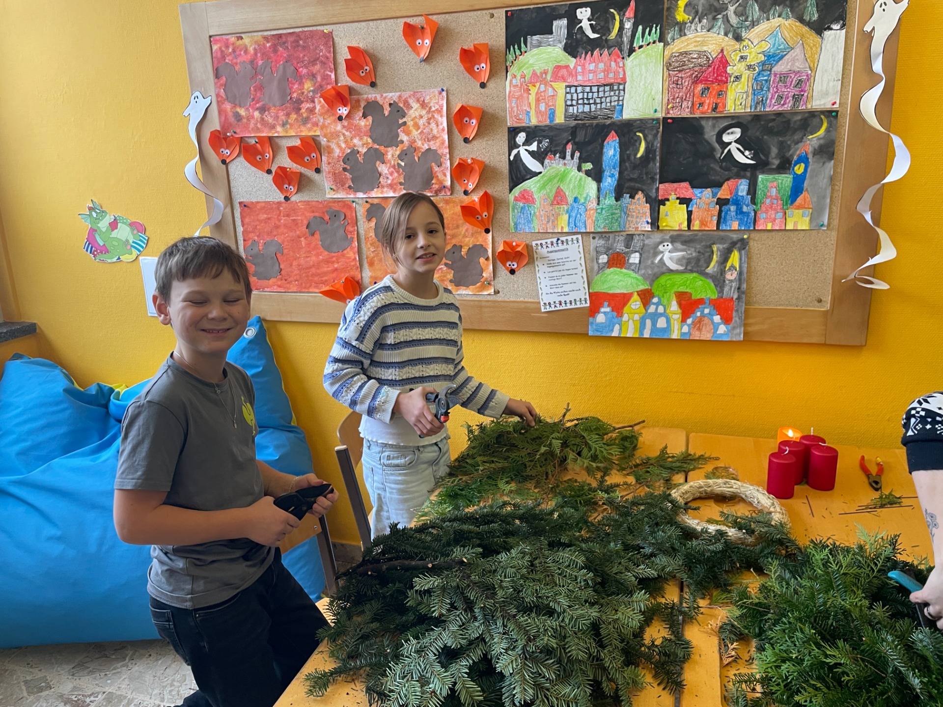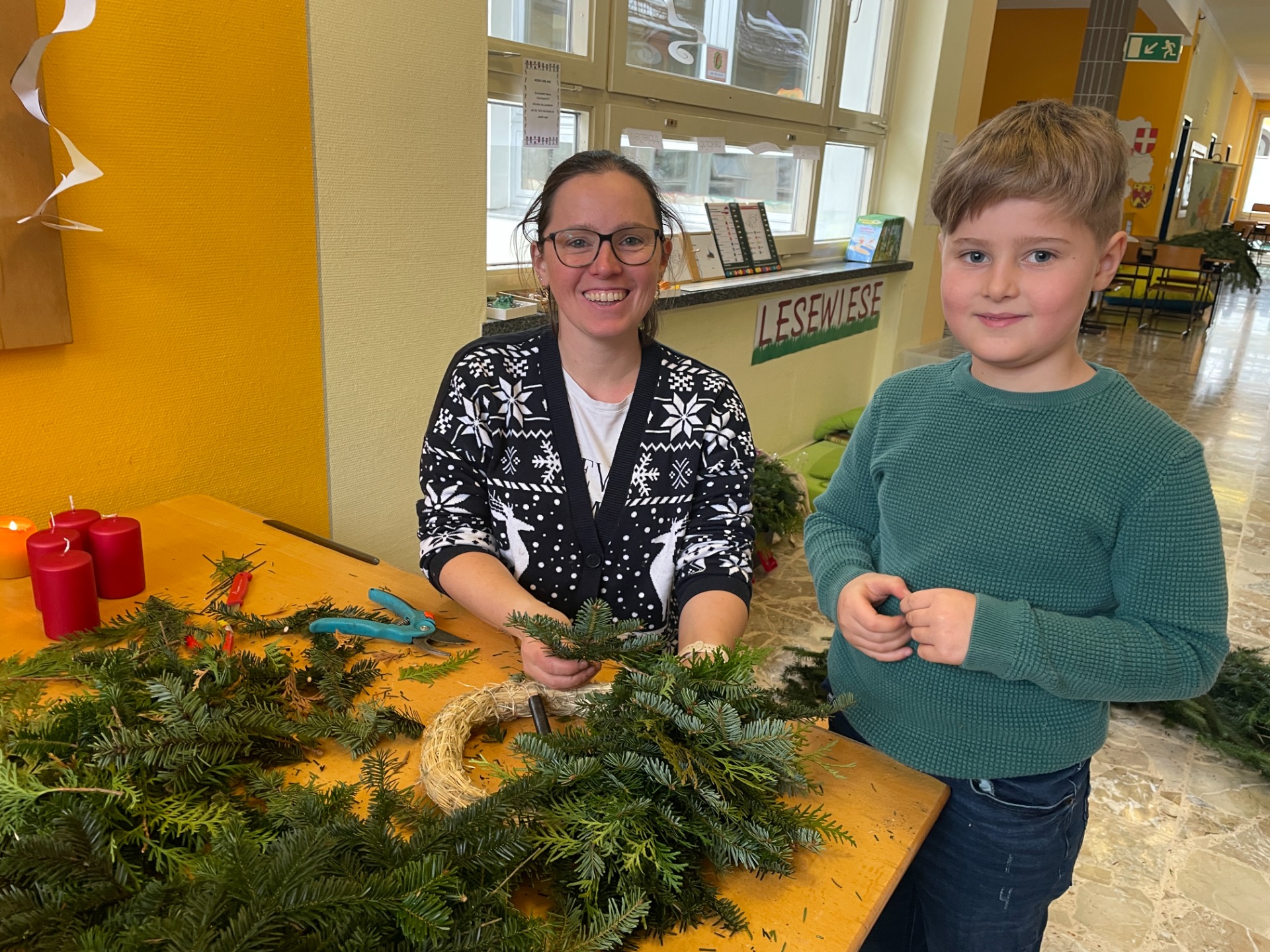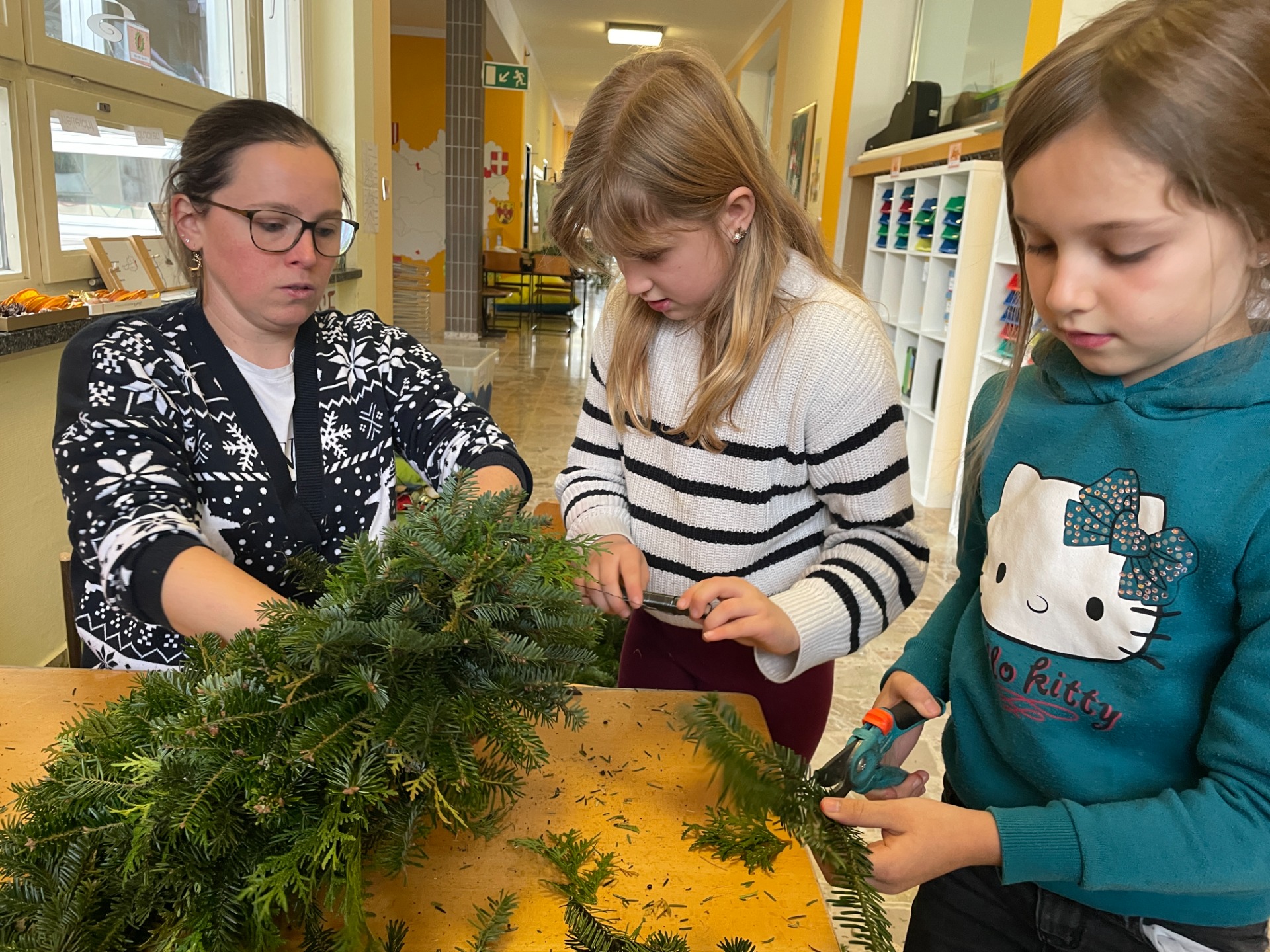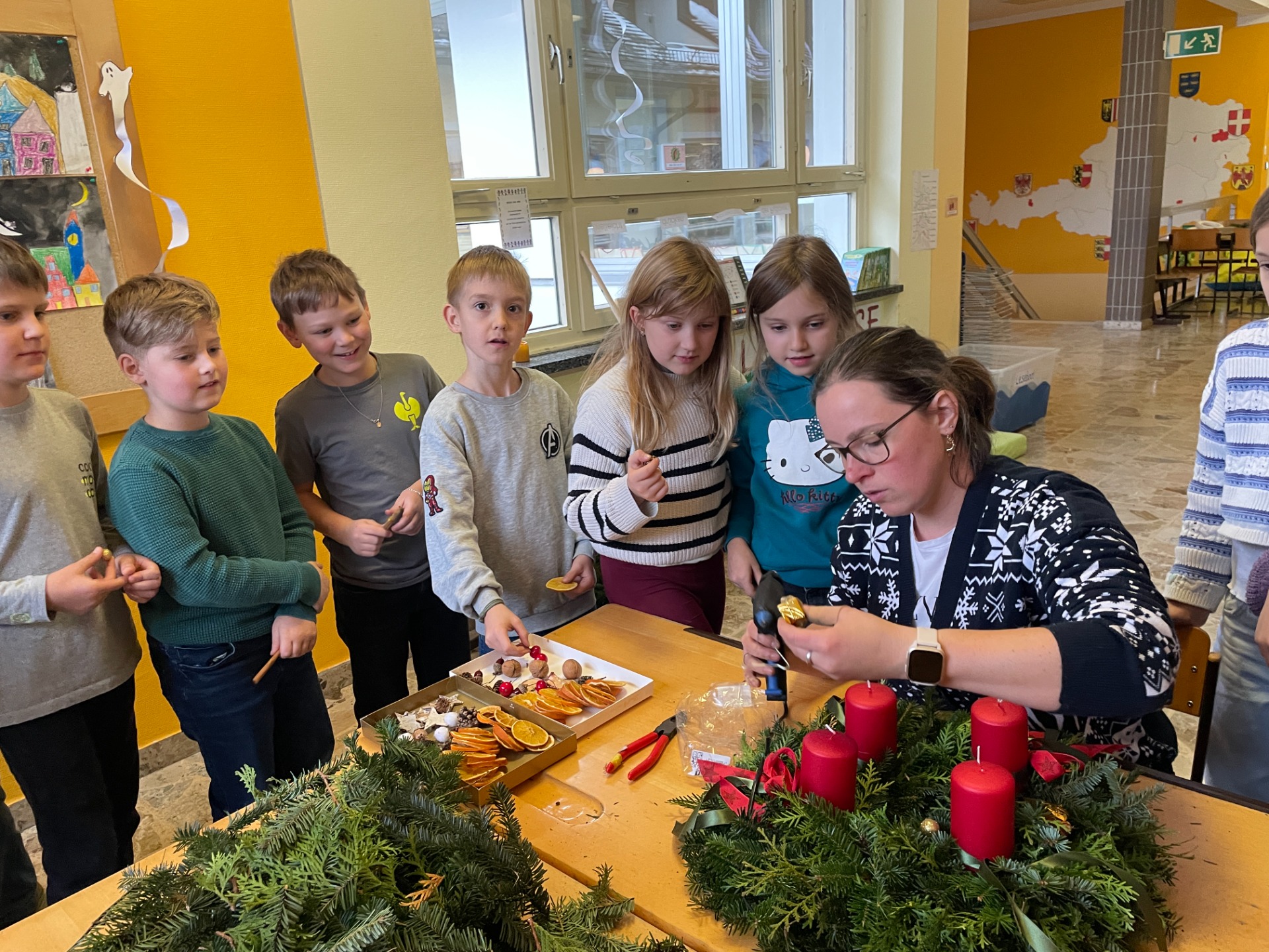 Spaß beim Adventkranzbinden und Toben im Schnee