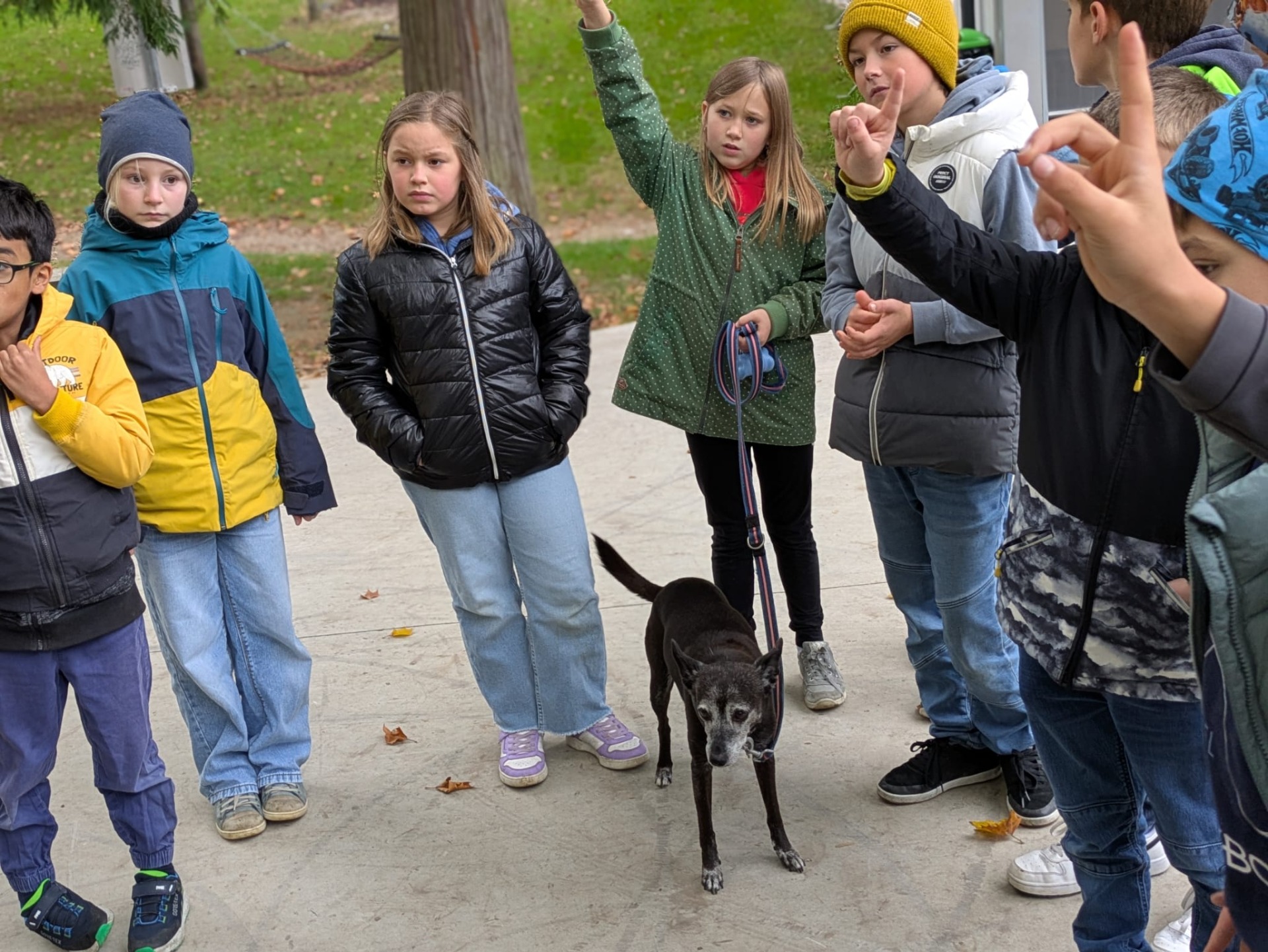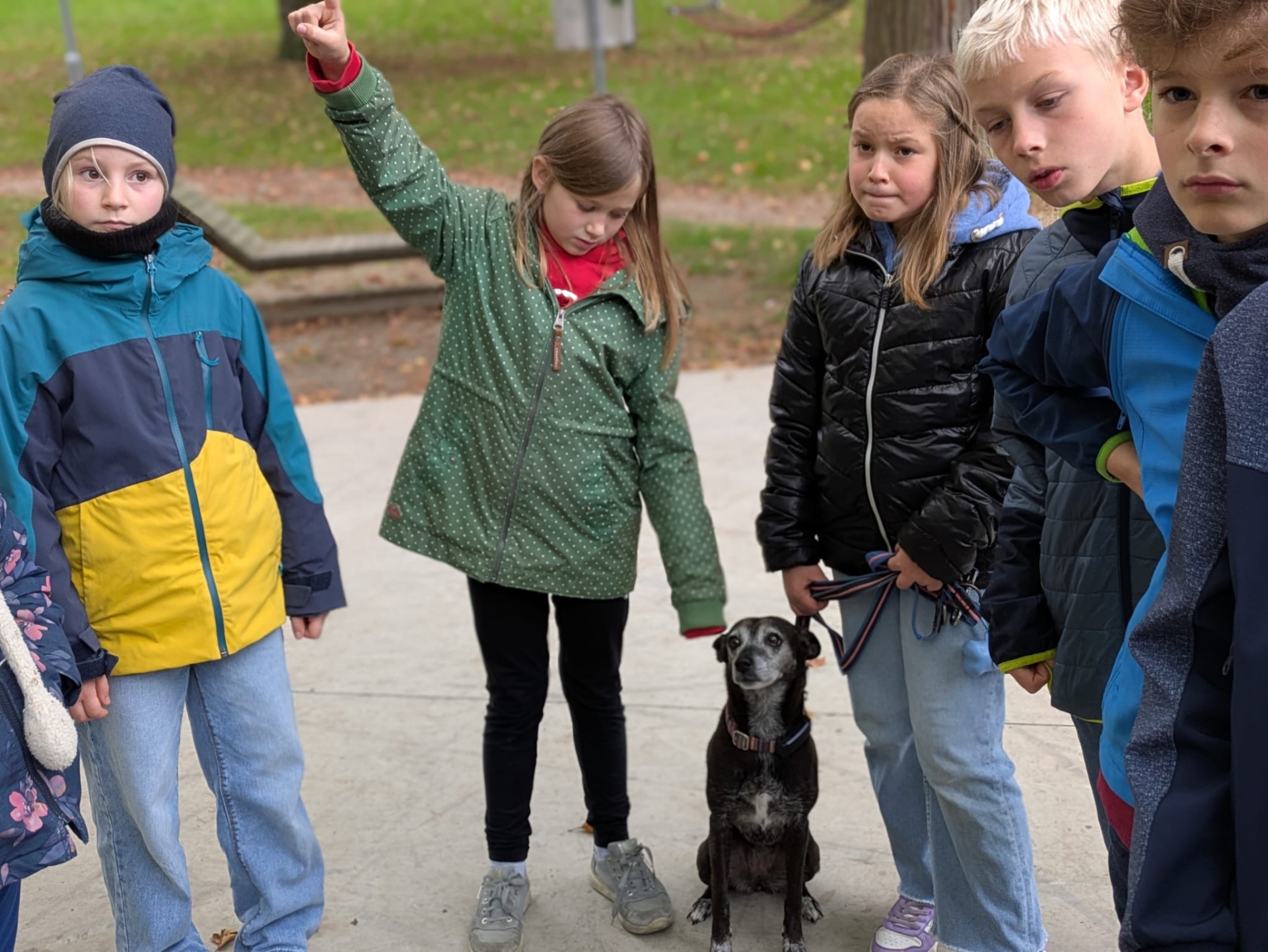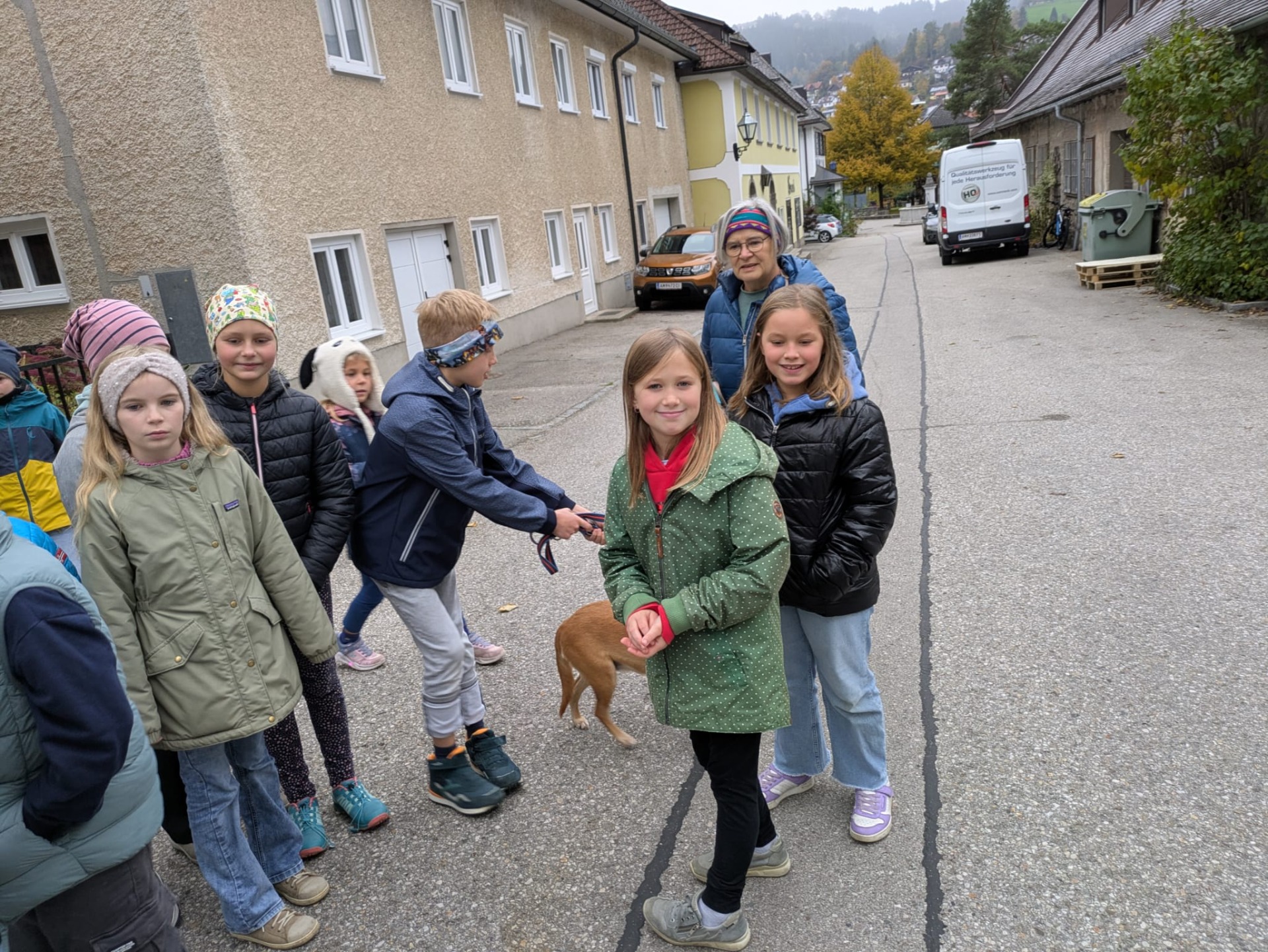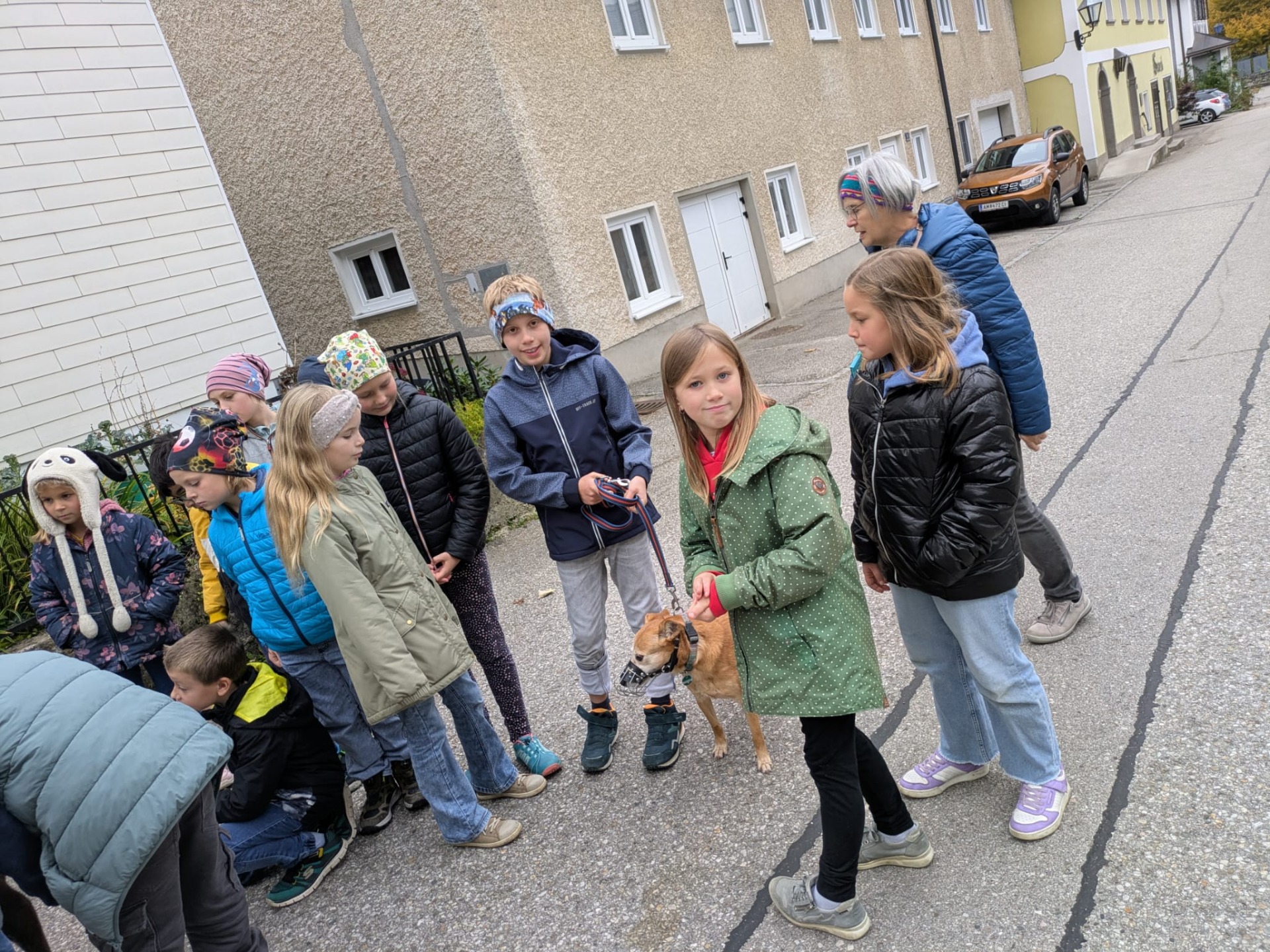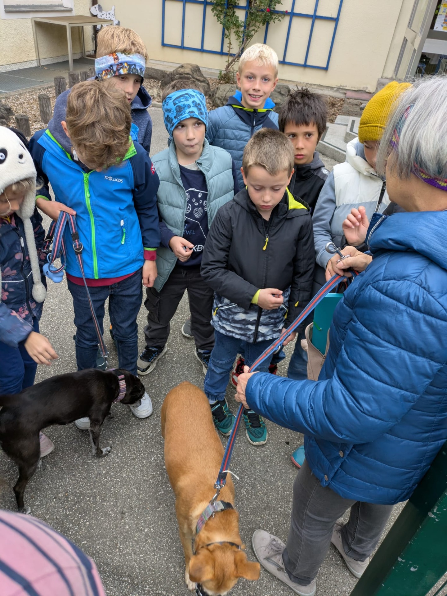 Im Sachunterricht beschäftigte sich die 4b mit unseren vierbeinigen Freunden, den Hunden. Besondere Freude machte es den Kindern, als Frau Fuchslueger mit ihren zwei Hunden uns besuchte und zeigte, wie man Hunde richtig führt. Viele Fragen der Kinder wurden beantwortetet und die Hunde bekamen eine Extraportion Streicheleinheiten.