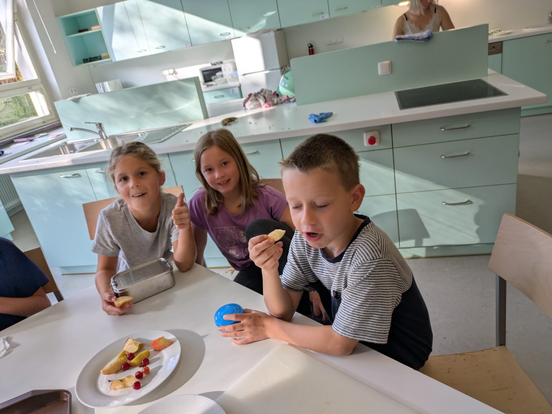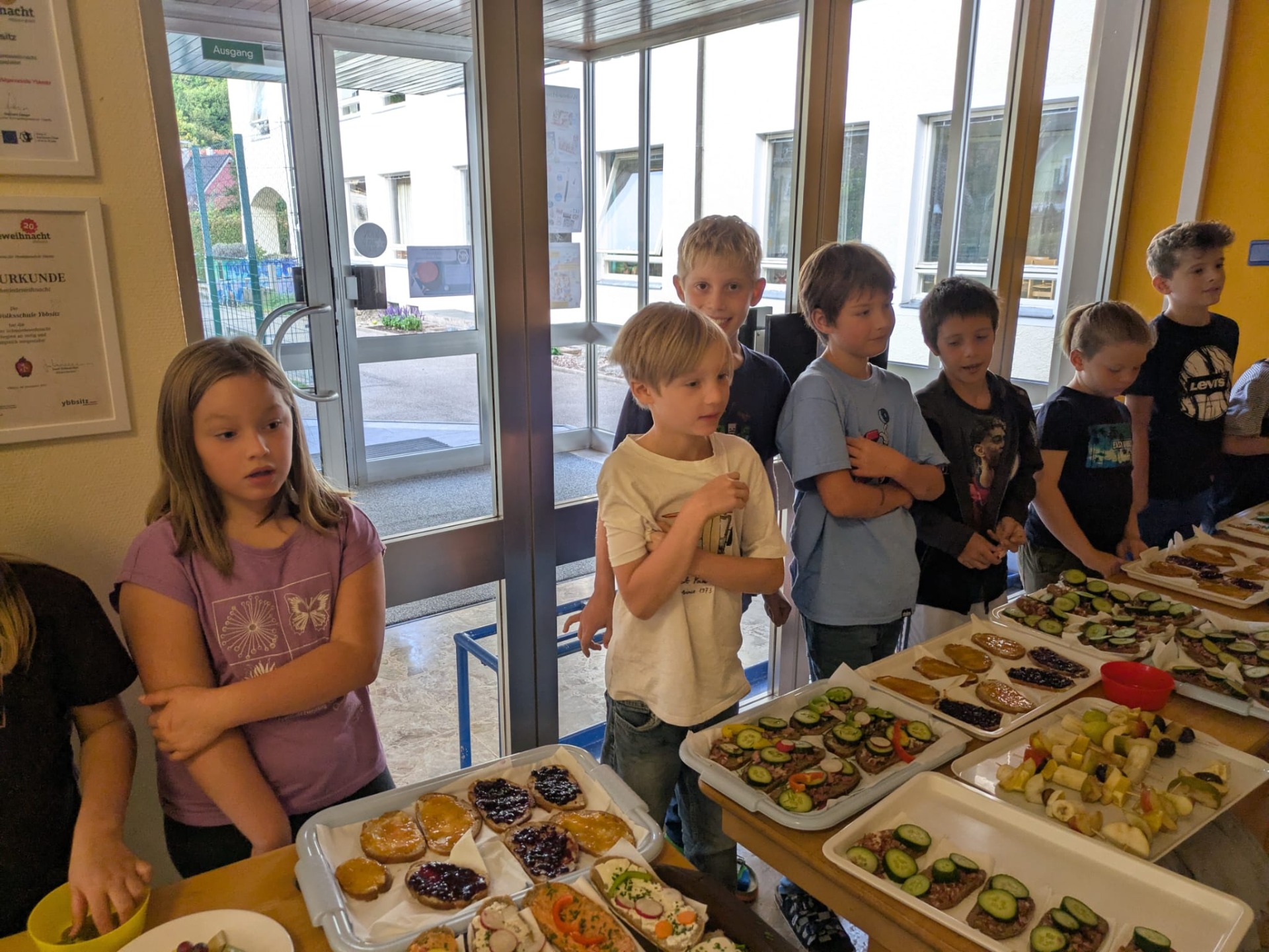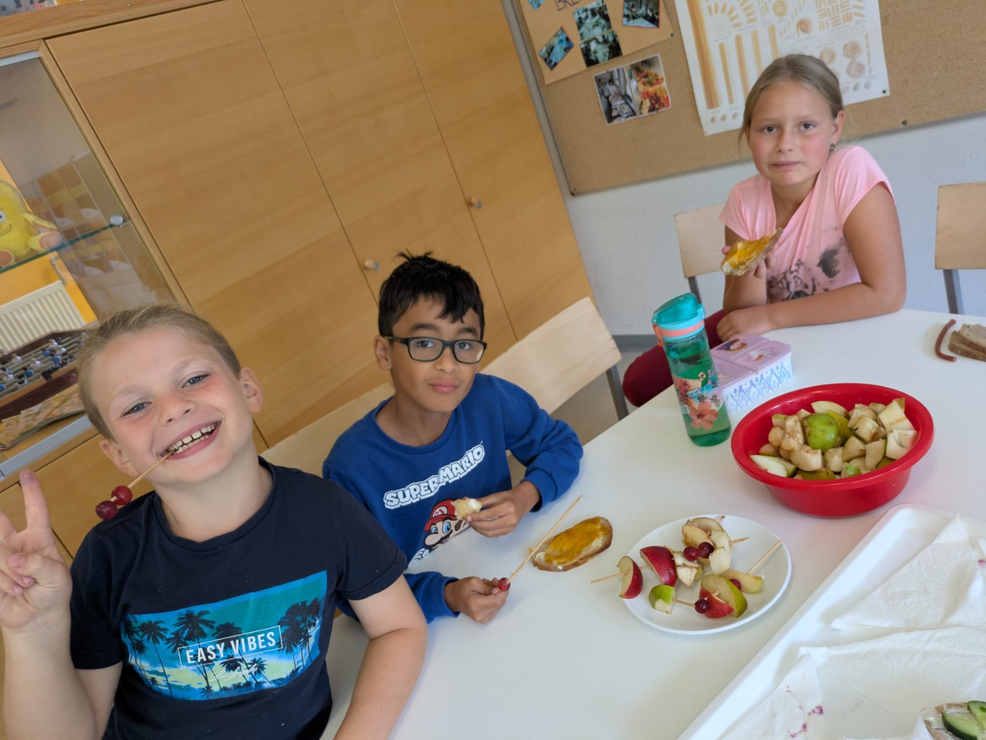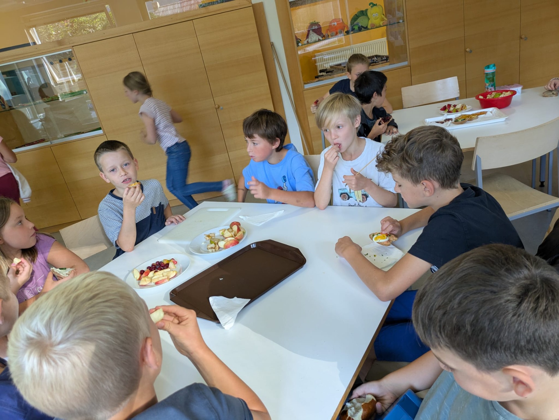 Jausenverkauf am 22. September 2025 Mit Freude, Geschick und Ausdauer bereiteten die Kinder der 4b köstliche Obstspieße, Aufstrichbrote, Speck- und Marmeladenbrote zu. Danke an die Eltern für die guten Lebensmittelspenden und Irmi Reingruber für die Unterstützung.
