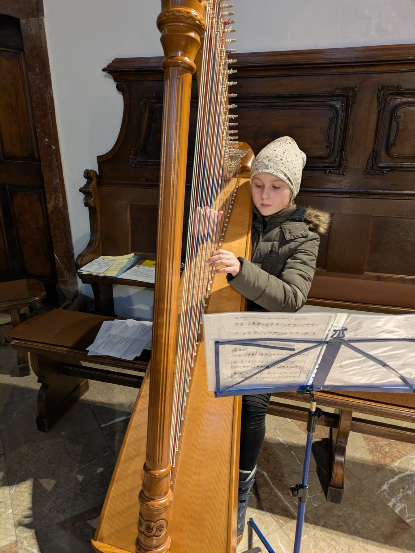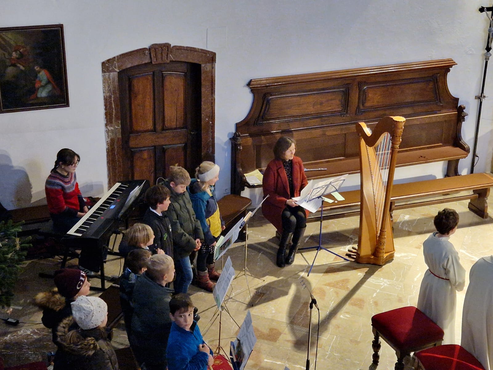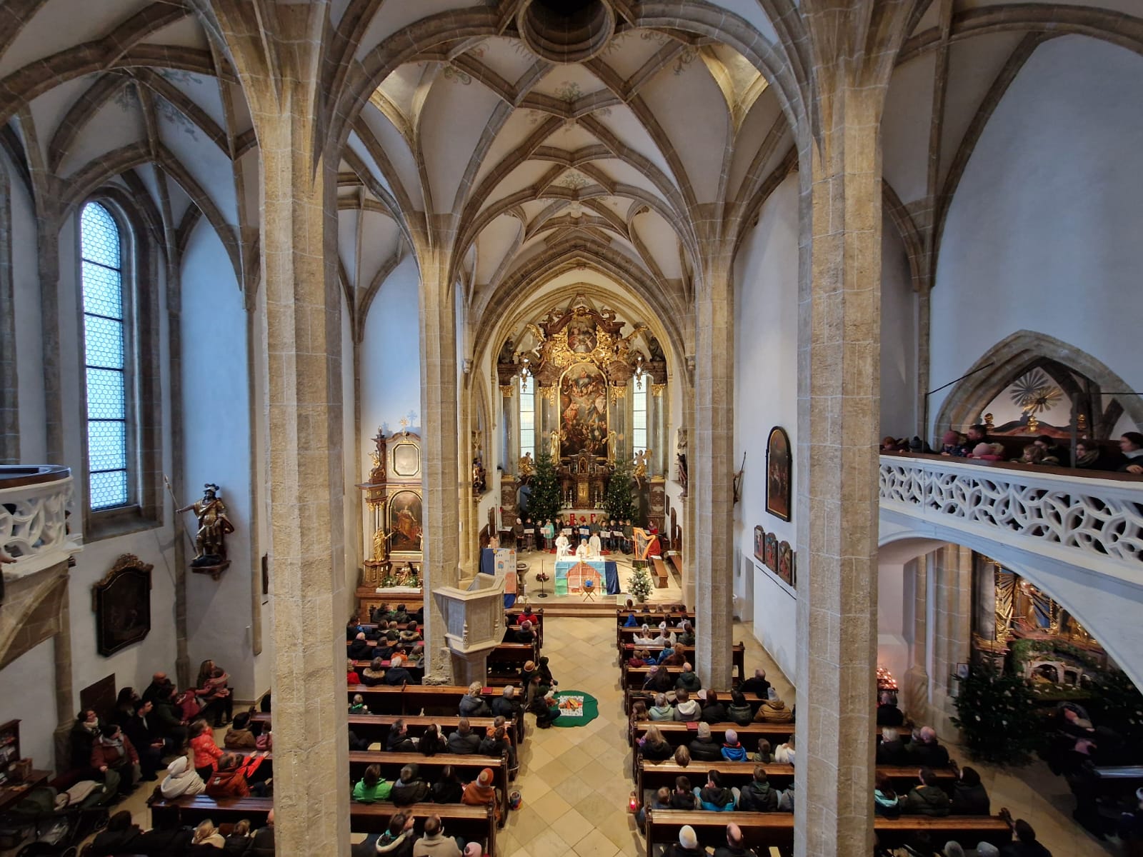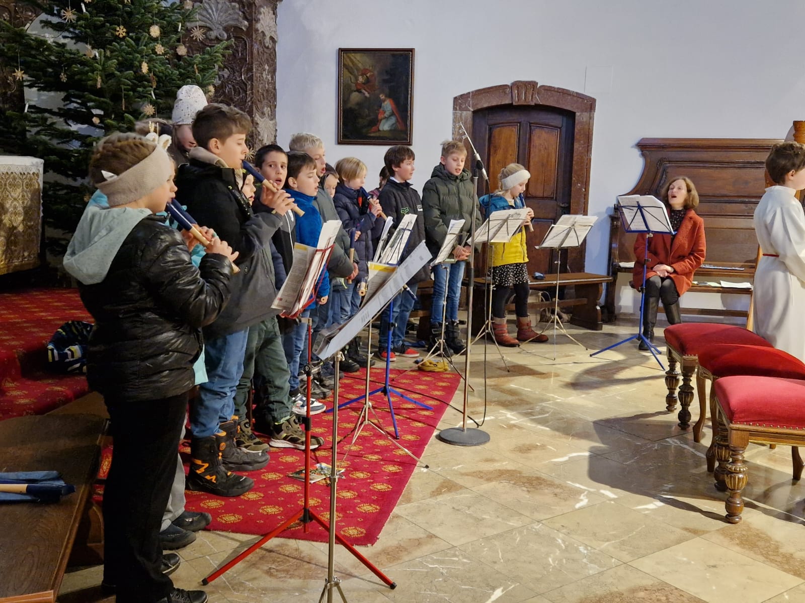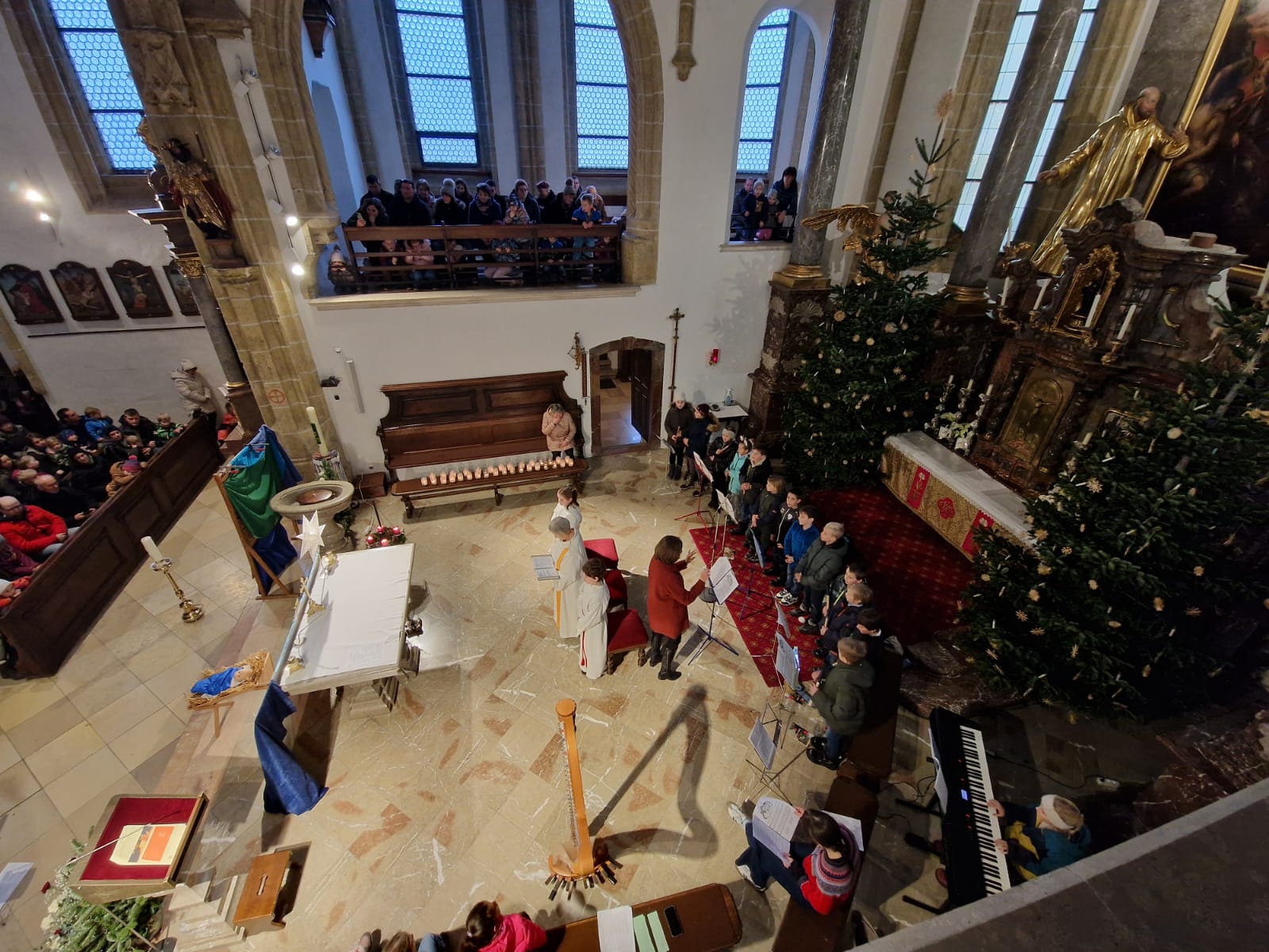 Kinderweihnacht in der Pfarrkirche Mit Blockflöten, Harfe, Klavier, Gesang und Lesetexten gestalteten die Schüler der 4b die Kinderweihnacht feierlich mit.