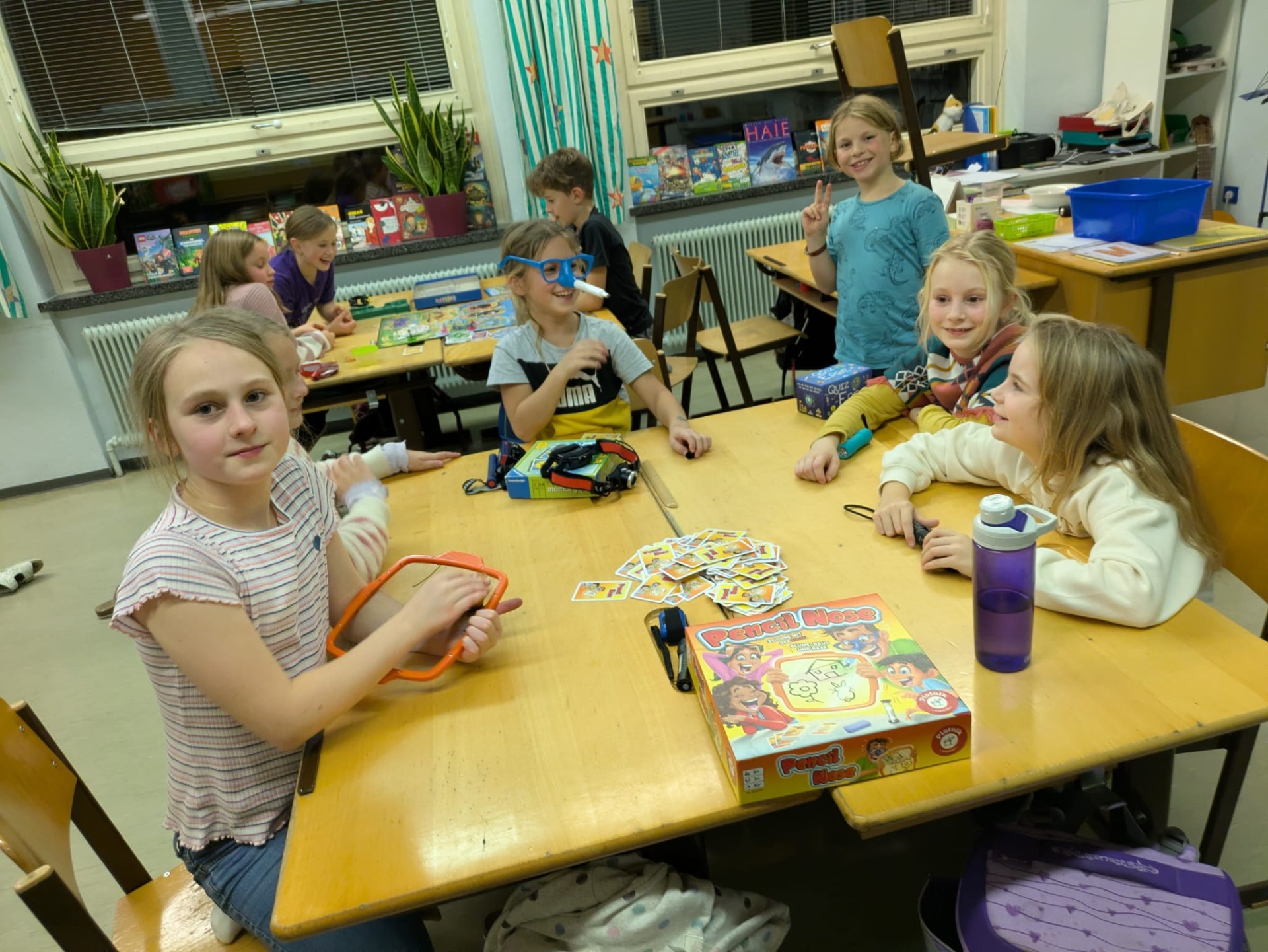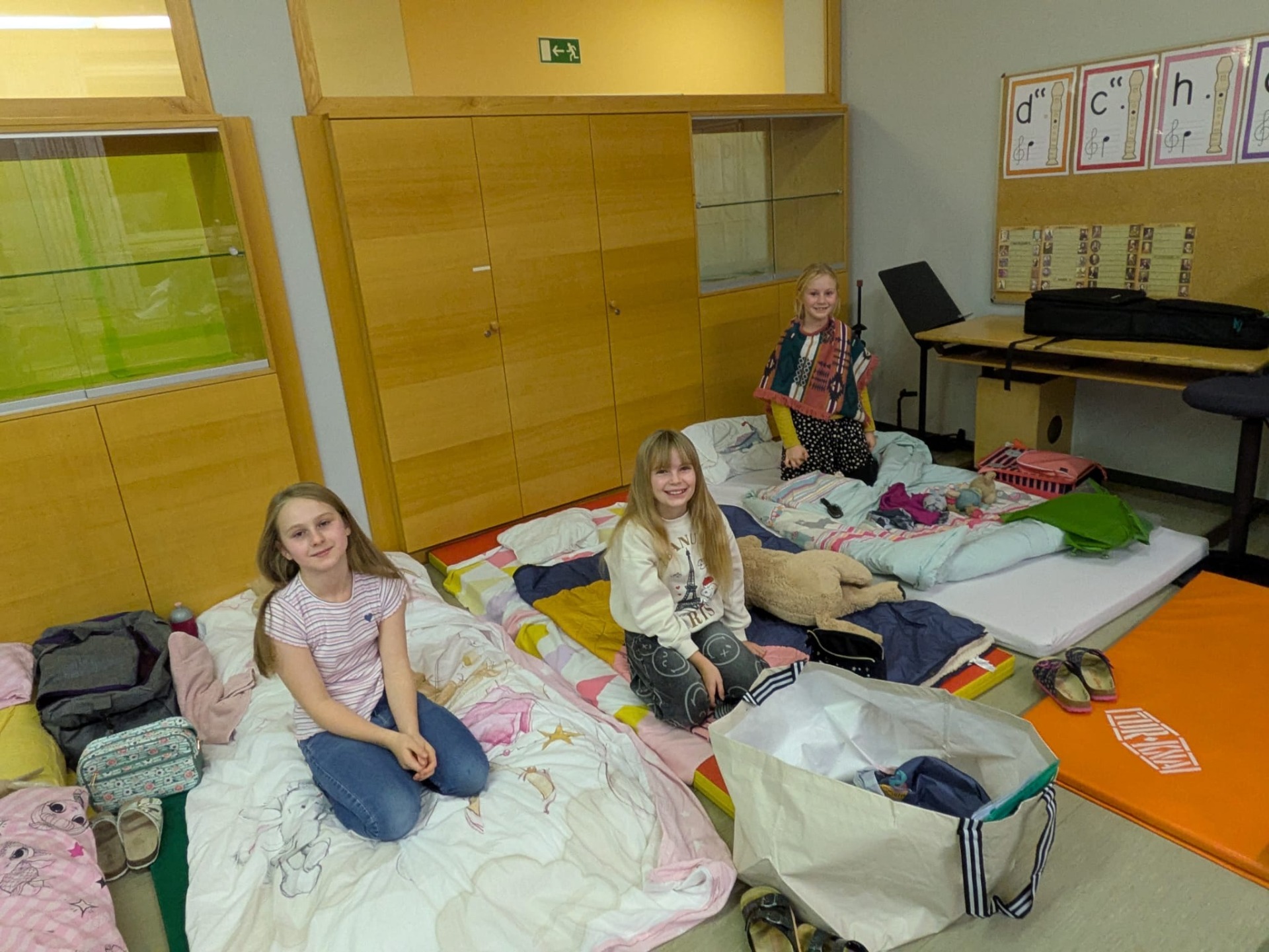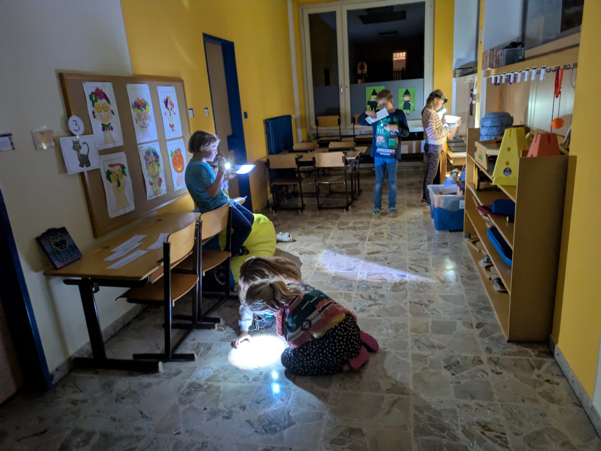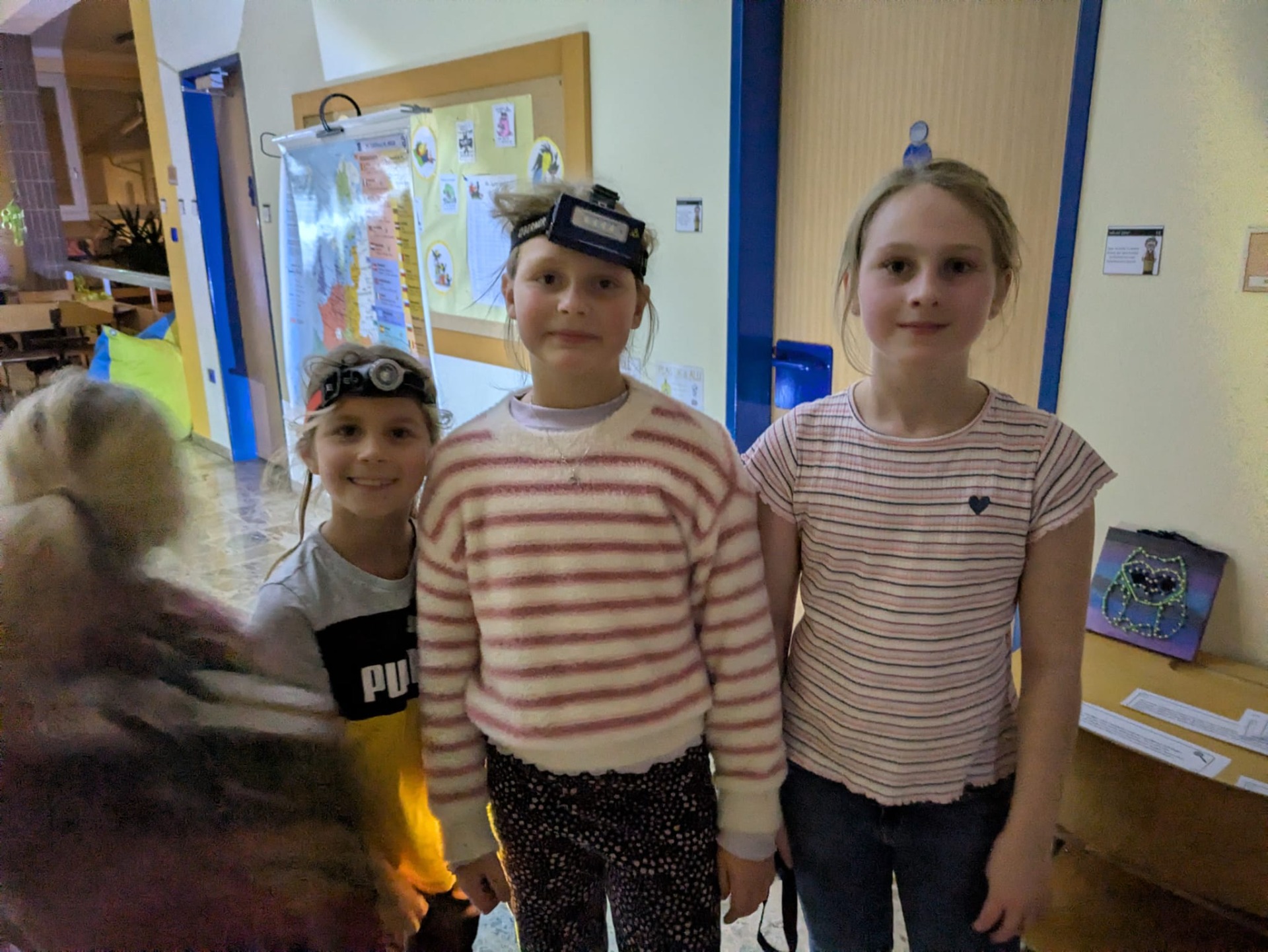 Ein besonders schönes und lustiges Gemeinschaftserlebnis für unsere Klasse war die Lesenacht vom 13. – 14. November in der Schule. Wir starteten mit einem gemeinsamen Lesespiel der Krähen. Danach bereiteten wir miteinander unser Abendessen vor. Nach dem leckeren Mahl mit Pizzabrötchen und Obstsalat halfen alle fleißig beim Aufräumen mit. Weiter ging es mit der Lesespurgeschichte des kleinen Schulgespenstes. Ausgerüstet mit Taschenlampen im dunklen Schulhaus fanden schließlich die tüchtigen Detektive den Schatz, den das kleine Gespenst bewachte. Mit gemeinsamen Spielen, einer Vorlesegeschichte und dem eigenen Lieblingsbuch klang der Abend gemütlich aus, bis auch der letzten Leseeule die Augen zufielen.