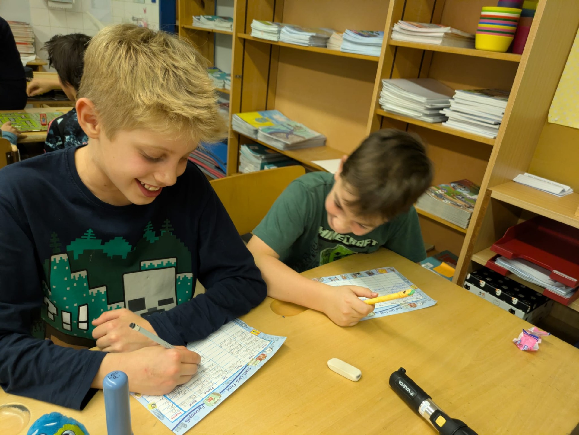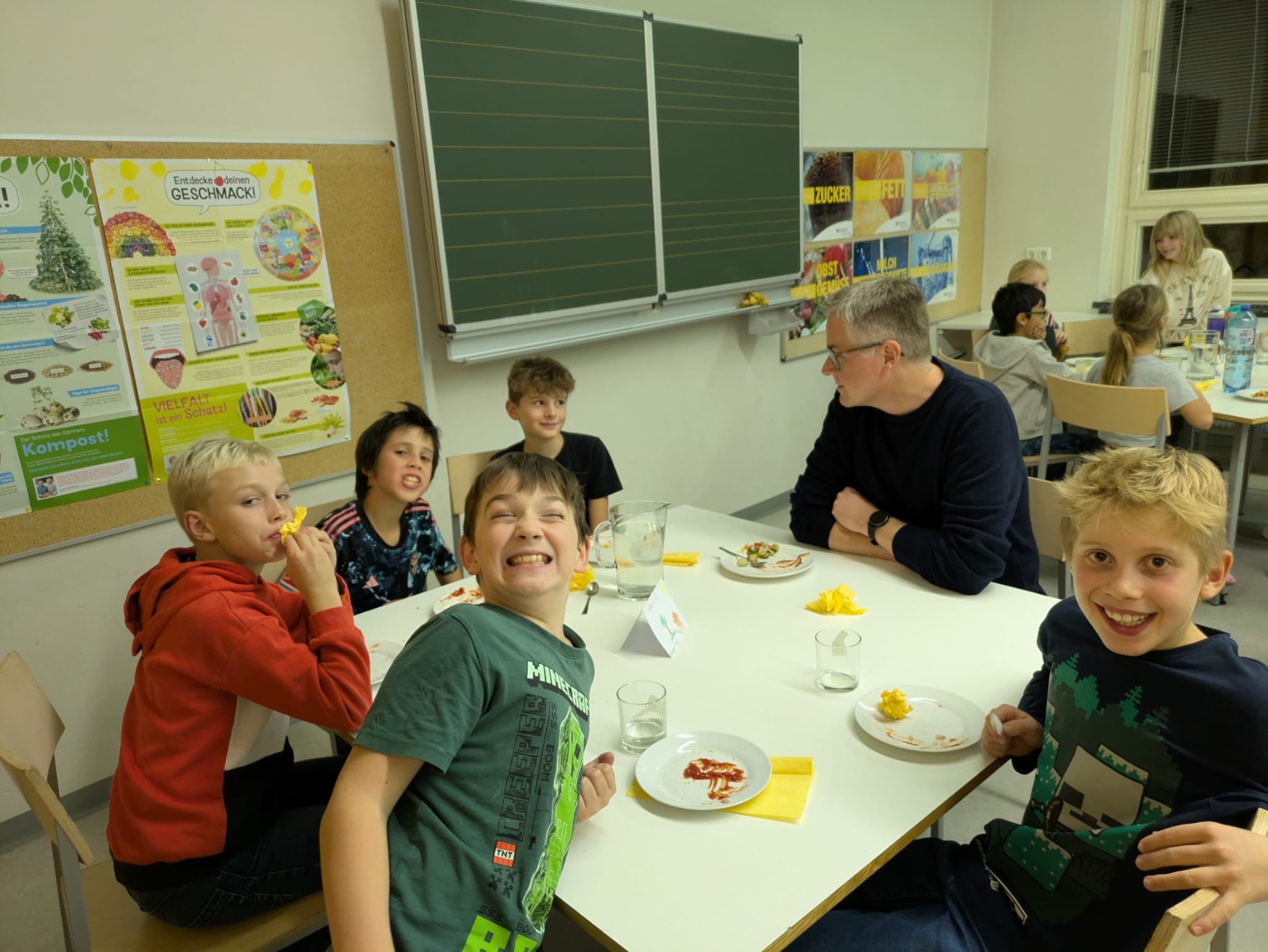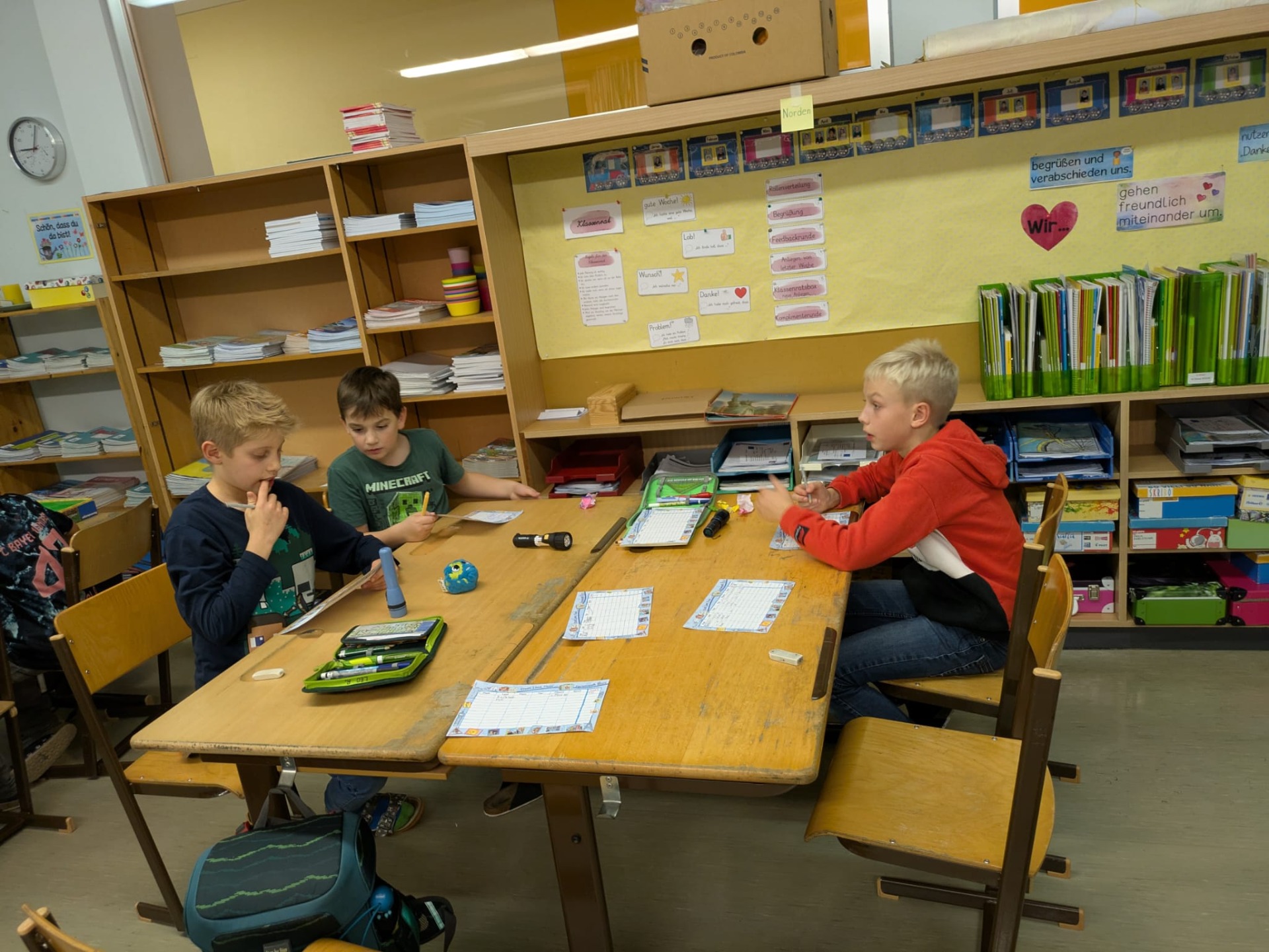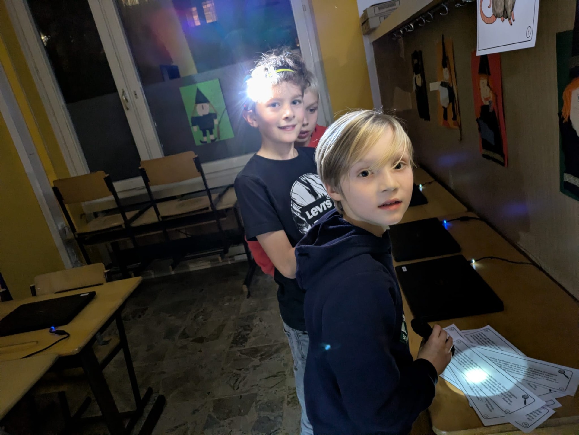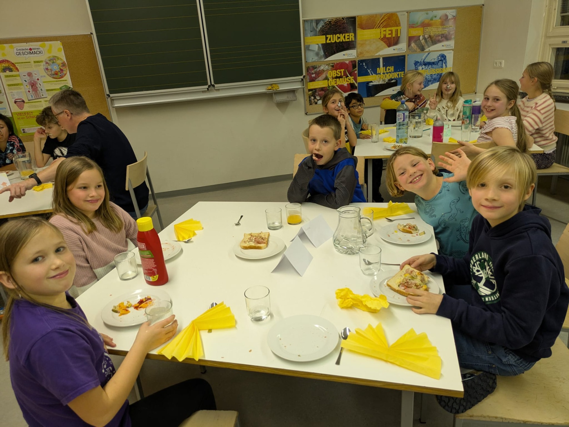 Ein besonders schönes und lustiges Gemeinschaftserlebnis für unsere Klasse war die Lesenacht vom 13. – 14. November in der Schule. Wir starteten mit einem gemeinsamen Lesespiel der Krähen. Danach bereiteten wir miteinander unser Abendessen vor. Nach dem leckeren Mahl mit Pizzabrötchen und Obstsalat halfen alle fleißig beim Aufräumen mit. Weiter ging es mit der Lesespurgeschichte des kleinen Schulgespenstes. Ausgerüstet mit Taschenlampen im dunklen Schulhaus fanden schließlich die tüchtigen Detektive den Schatz, den das kleine Gespenst bewachte. Mit gemeinsamen Spielen, einer Vorlesegeschichte und dem eigenen Lieblingsbuch klang der Abend gemütlich aus, bis auch der letzten Leseeule die Augen zufielen.