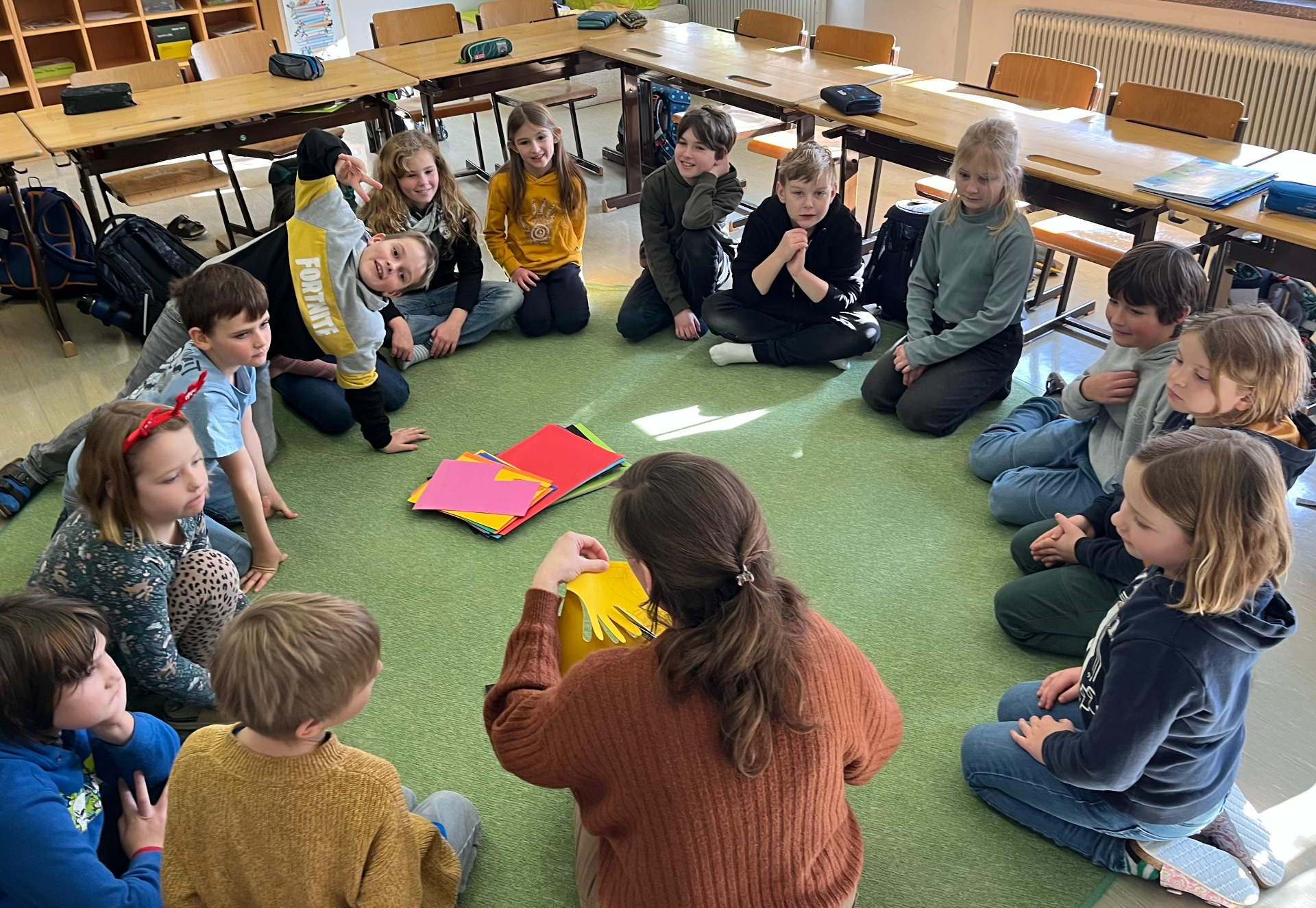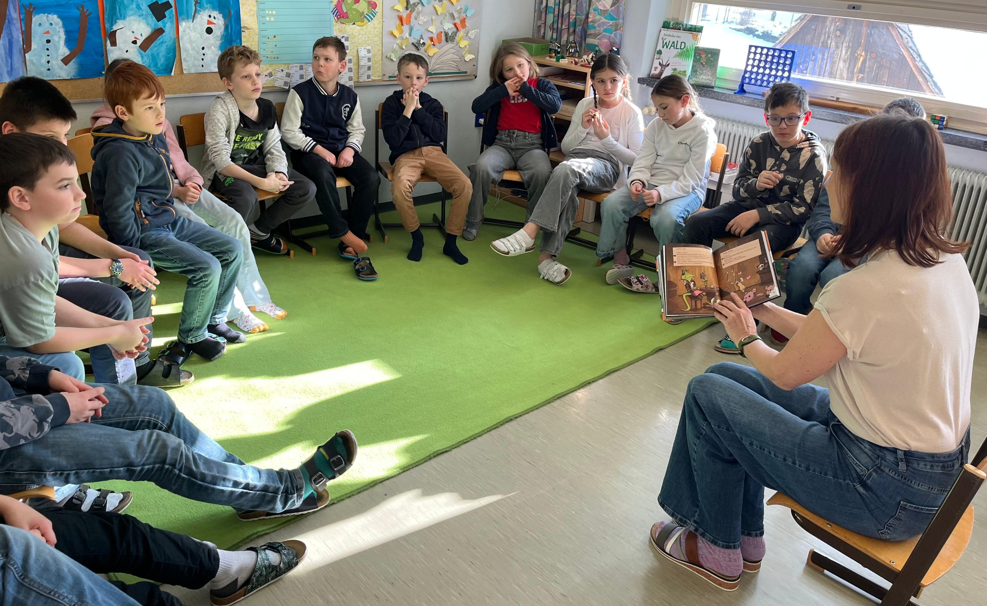 Ein zweites Mal in diesem Schuljahr verwandelten wir die Räume unserer Schule erneut in Vorlese-Kinosäle. Mit großer Aufmerksamkeit und Begeisterung verfolgten auch diesmal wieder all unsere Schülerinnen und Schüler, in gemischten Gruppen aufgeteilt, die dort präsentierten Geschichten.