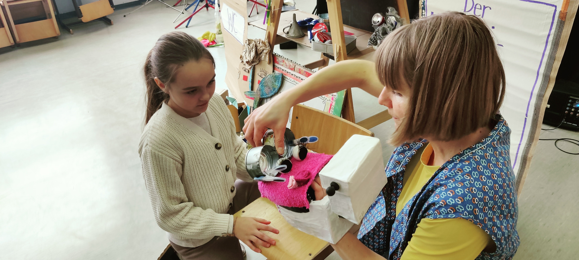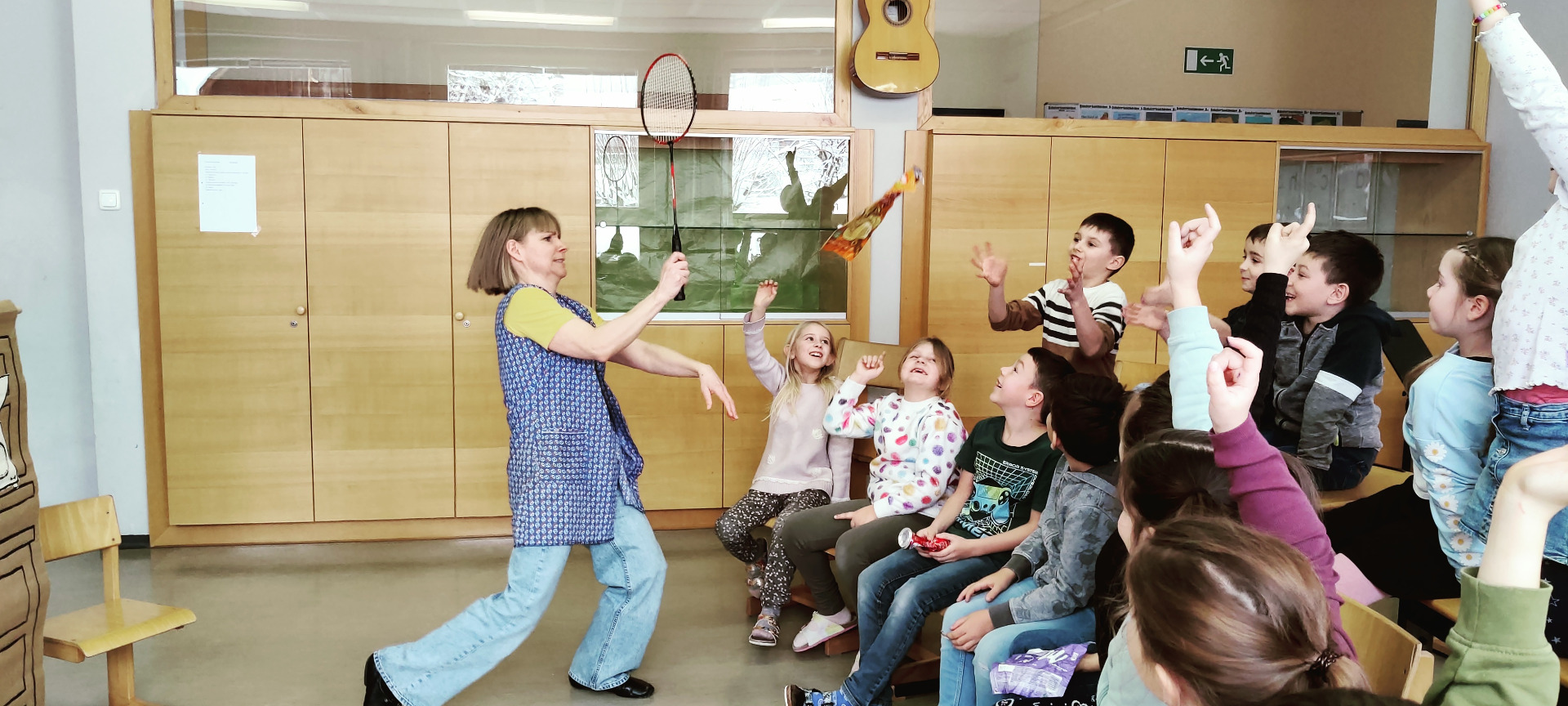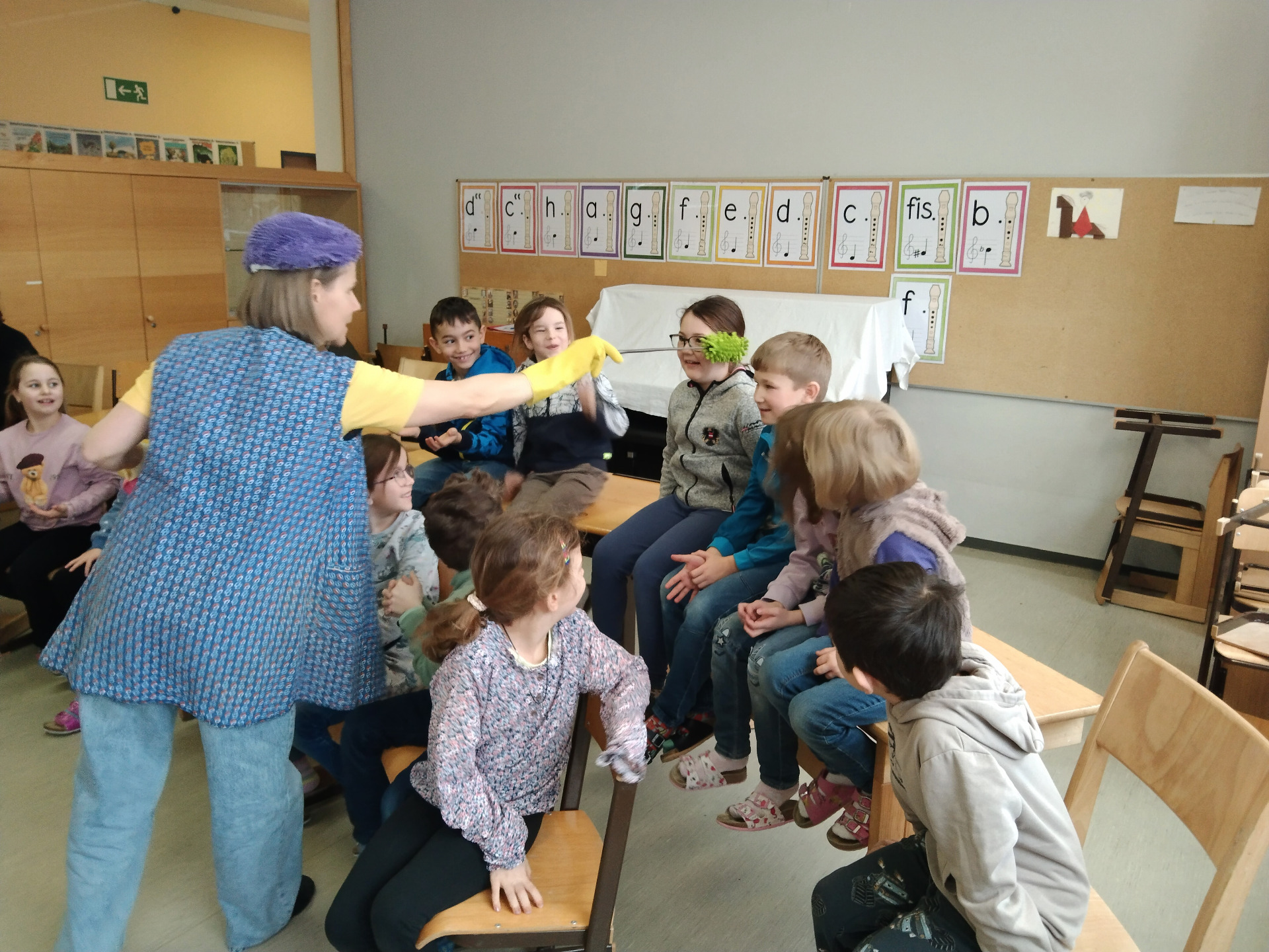 Am 20. Februar stand für die 1. und 2. Klassen das „Mi(s)tmachtheater“ auf dem Programm. Petra Forster, ausgebildete Kindergartenpädagogin und Literaturvermittlerin, versteht es hervorragend, Kinder für Geschichten zu begeistern. Mit Figuren, kleinen Theaterszenen und kreativen Mitmachaktionen wurden die Schülerinnen und Schüler selbst Teil des Geschehens. Sie lachten, überlegten, spielten mit und tauchten gemeinsam in die Welt der Geschichte ein.