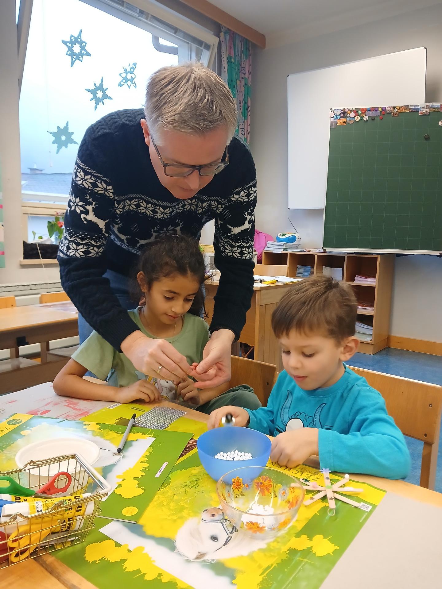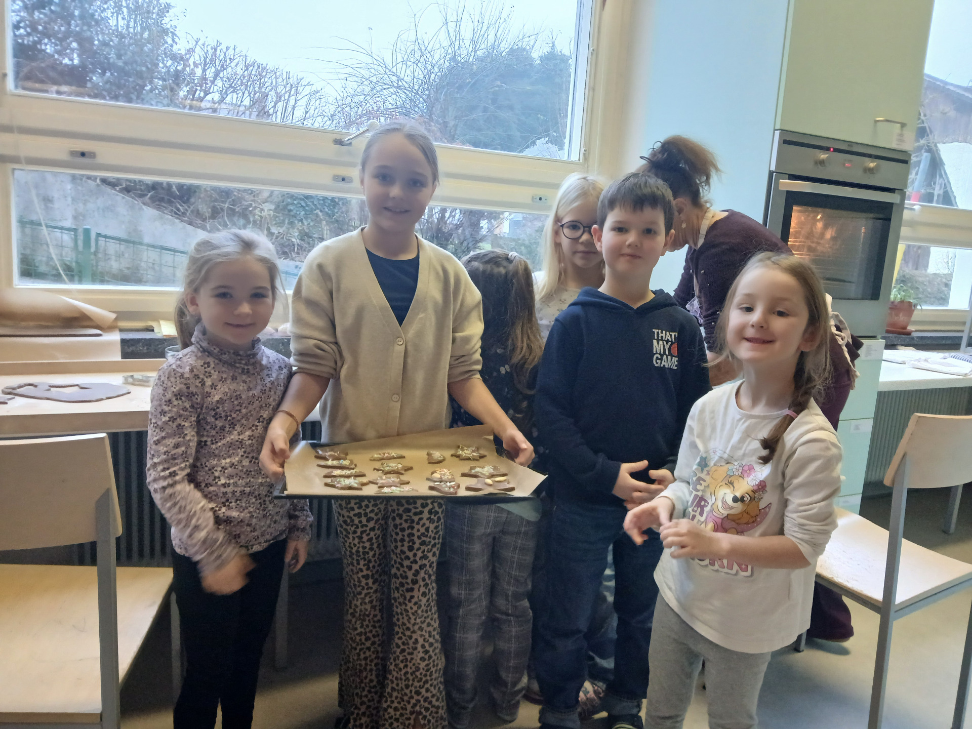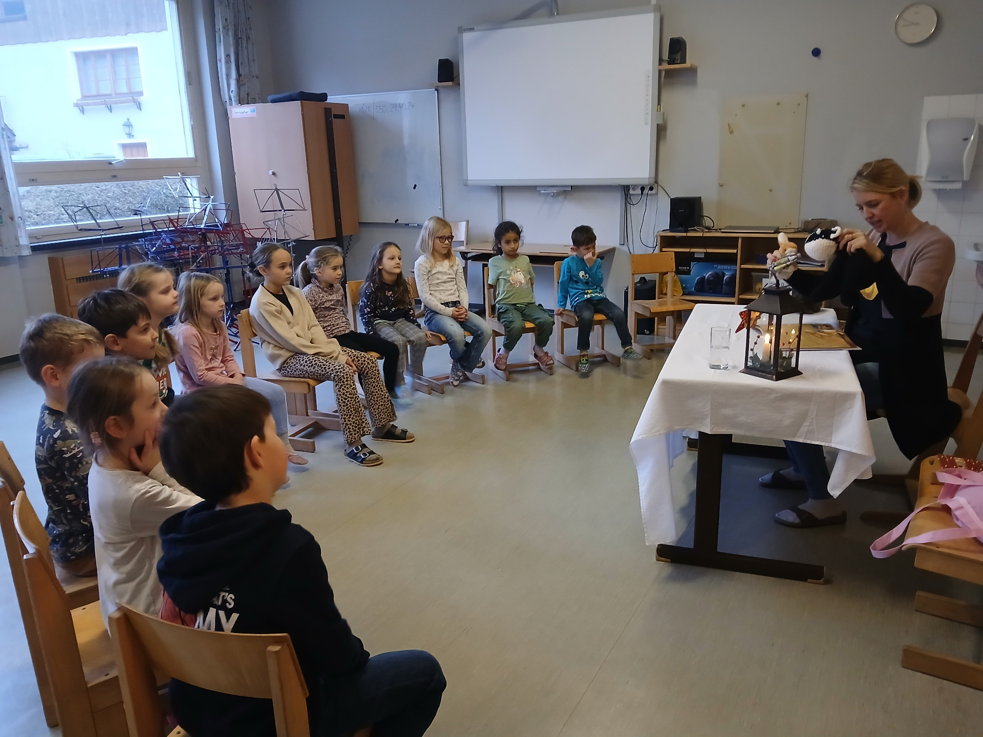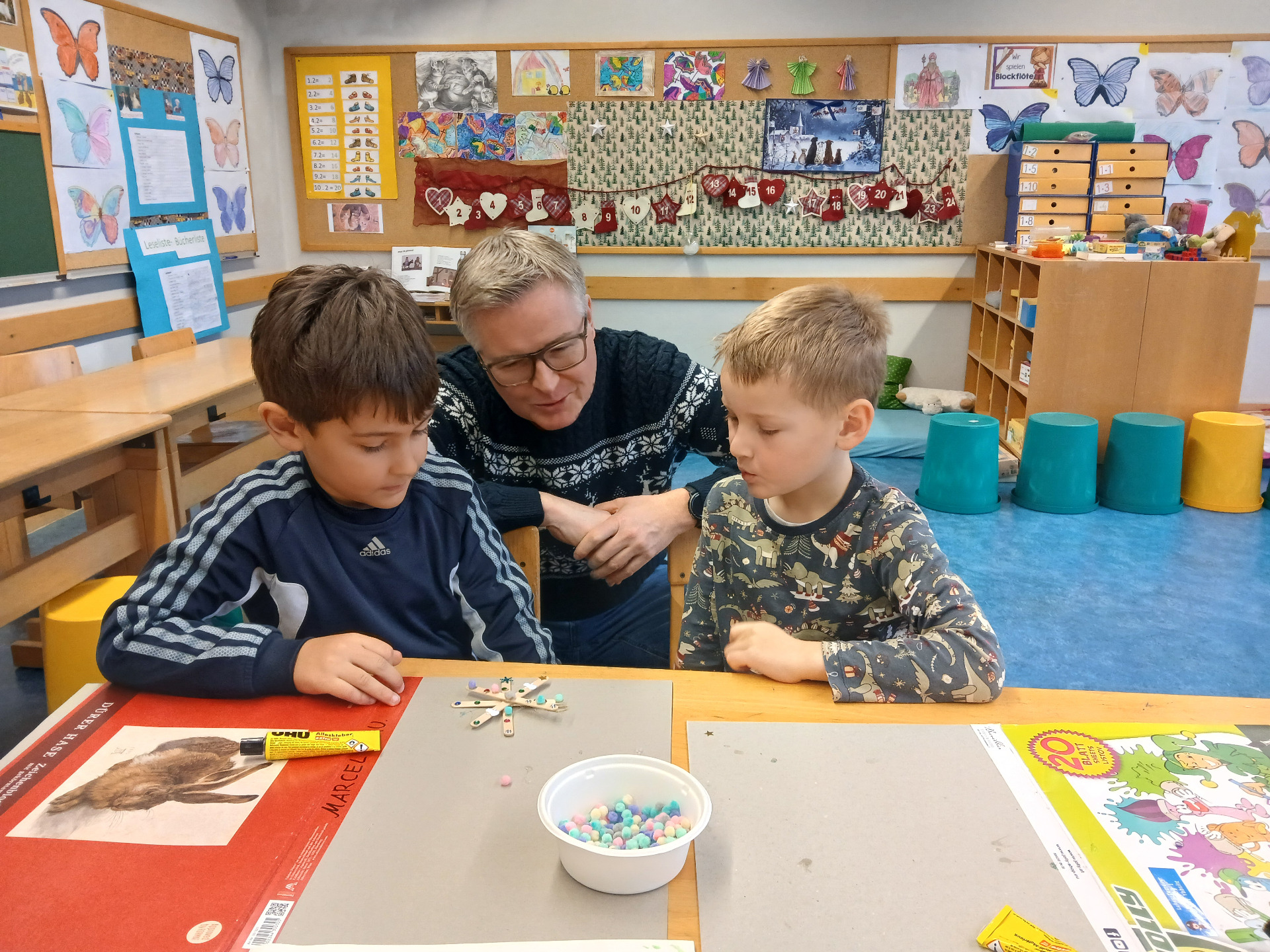 Die Schulanfängerkinder unserer Kindergärten kamen im Rahmen unserer Kooperation in zwei Besuchergruppen aufgeteilt zum Adventtreffen zu uns in die Schule. Die Schülerinnen und Schüler unserer 2. Klassen hatten mit ihren Lehrerinnen und dem Herrn Direktor abwechslungsreiche vorweihnachtliche Stationen vorbereitet: backen in der Küche, gemeinsames Basteln und eine Vorlesestation. Auch eine gemeinsame Jause stand auf dem Programm.