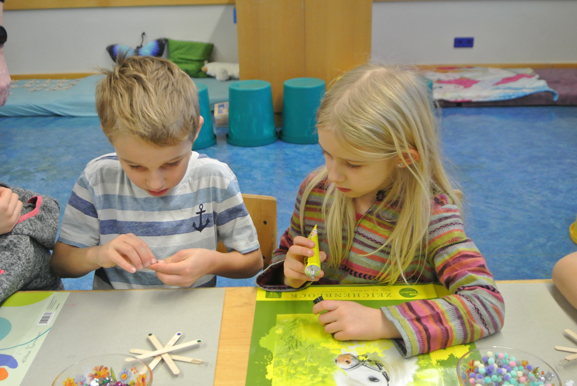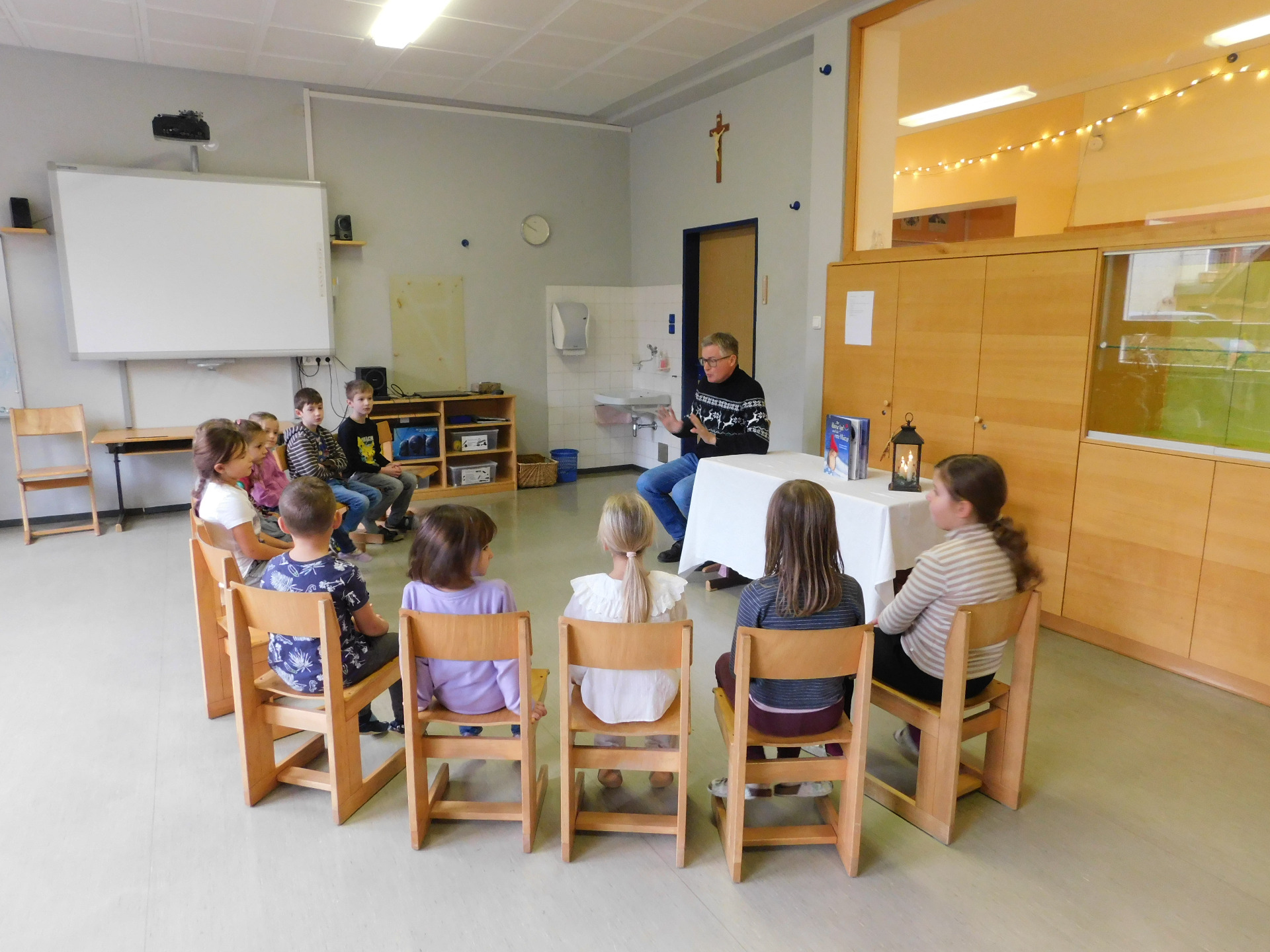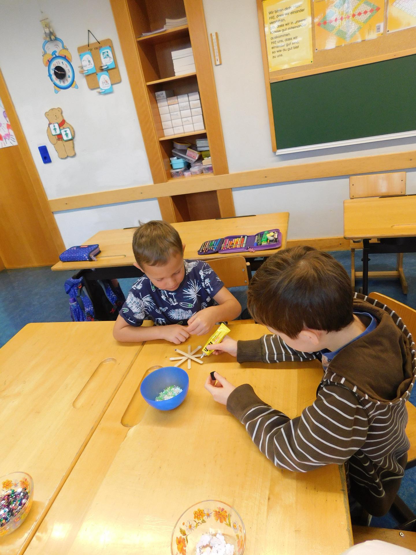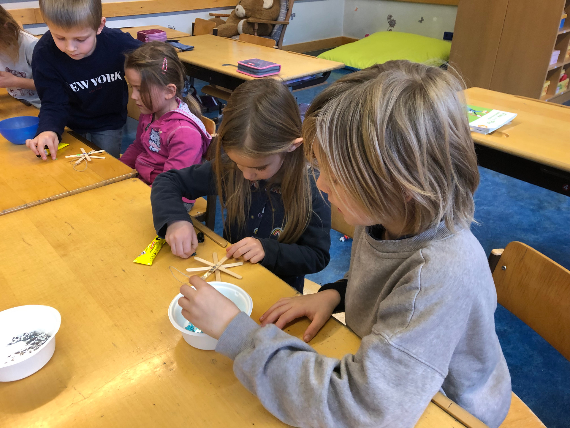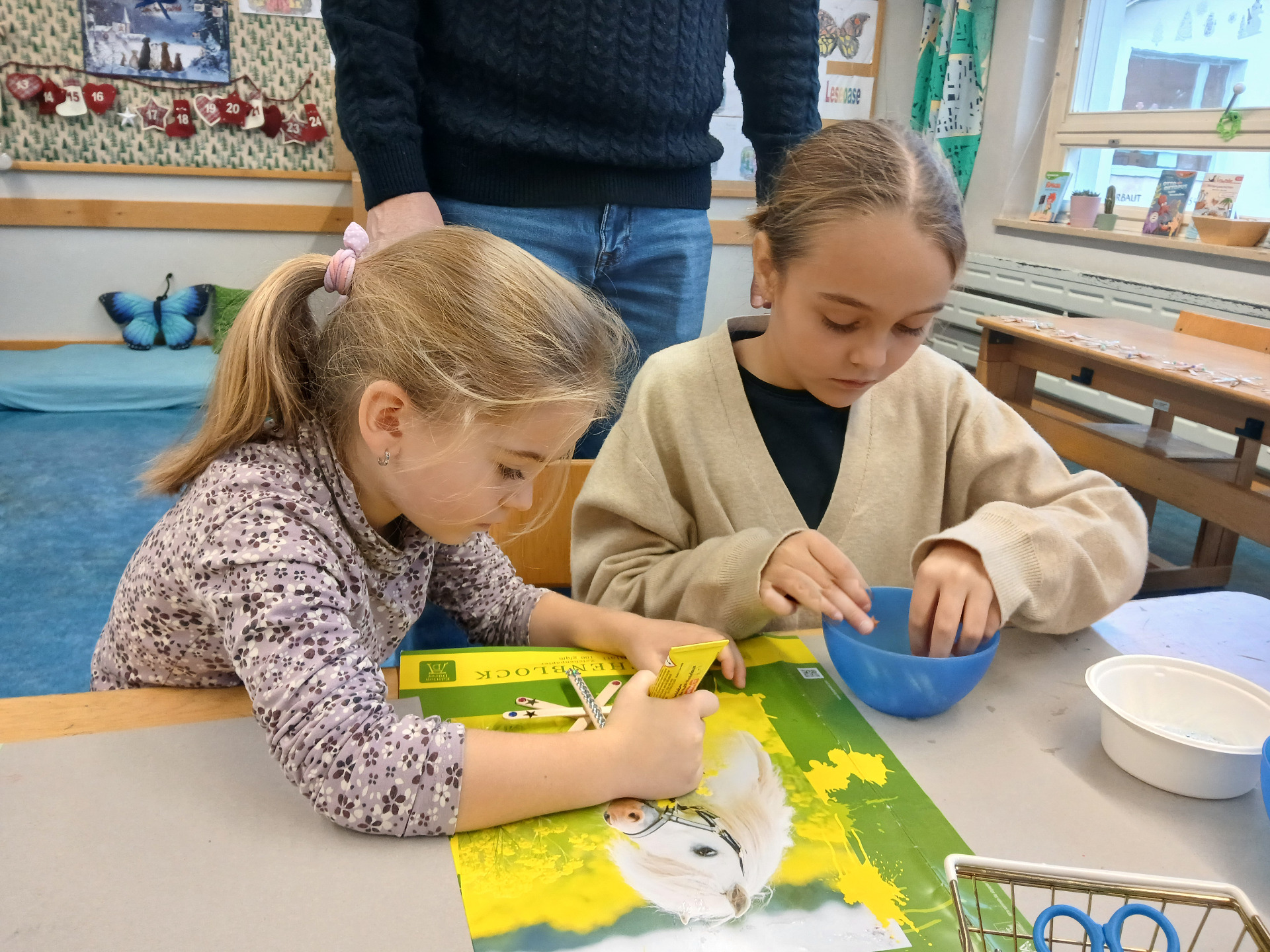 Die Schulanfängerkinder unserer Kindergärten kamen im Rahmen unserer Kooperation in zwei Besuchergruppen aufgeteilt zum Adventtreffen zu uns in die Schule. Die Schülerinnen und Schüler unserer 2. Klassen hatten mit ihren Lehrerinnen und dem Herrn Direktor abwechslungsreiche vorweihnachtliche Stationen vorbereitet: backen in der Küche, gemeinsames Basteln und eine Vorlesestation. Auch eine gemeinsame Jause stand auf dem Programm.