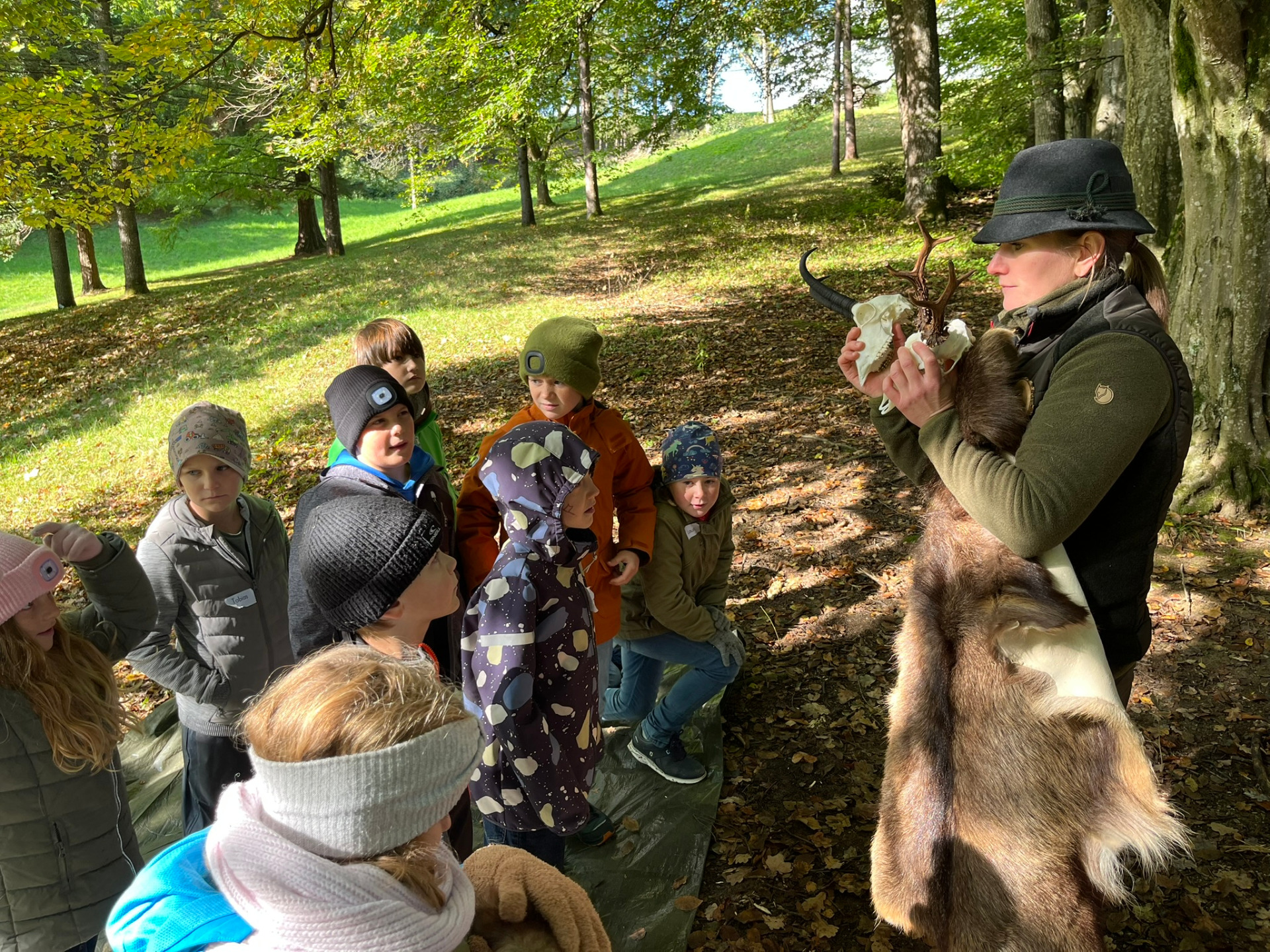 Einen besonderen Unterrichtstag verbrachten die Schülerinnen und Schüler der 3. Klassen kürzlich im Erholungswald. Gemeinsam mit erfahrenen Ybbsitzer Jägern Markus Heigl, Alexander Theuretzbacher und der Jägerin Elisabeth Grabner gingen sie auf eine spannende Pirsch durch drei Stationen und lernten dabei viel über die heimische Tierwelt und den achtsamen Umgang mit der Natur. Die Kinder durften verschiedene Tierpräparate und Felle genau unter die Lupe nehmen – von Wildschwein bis Fuchs war alles dabei. Sie schärften ihren Blick für Wildspuren und Losungen und testeten begeistert auch verschiedene Pfeifen, mit denen man echte Tierstimmen nachahmen kann. Bei einem Parcours durch den Wald mussten schließlich möglichst viele versteckte Wäschekluppen entdeckt werden.