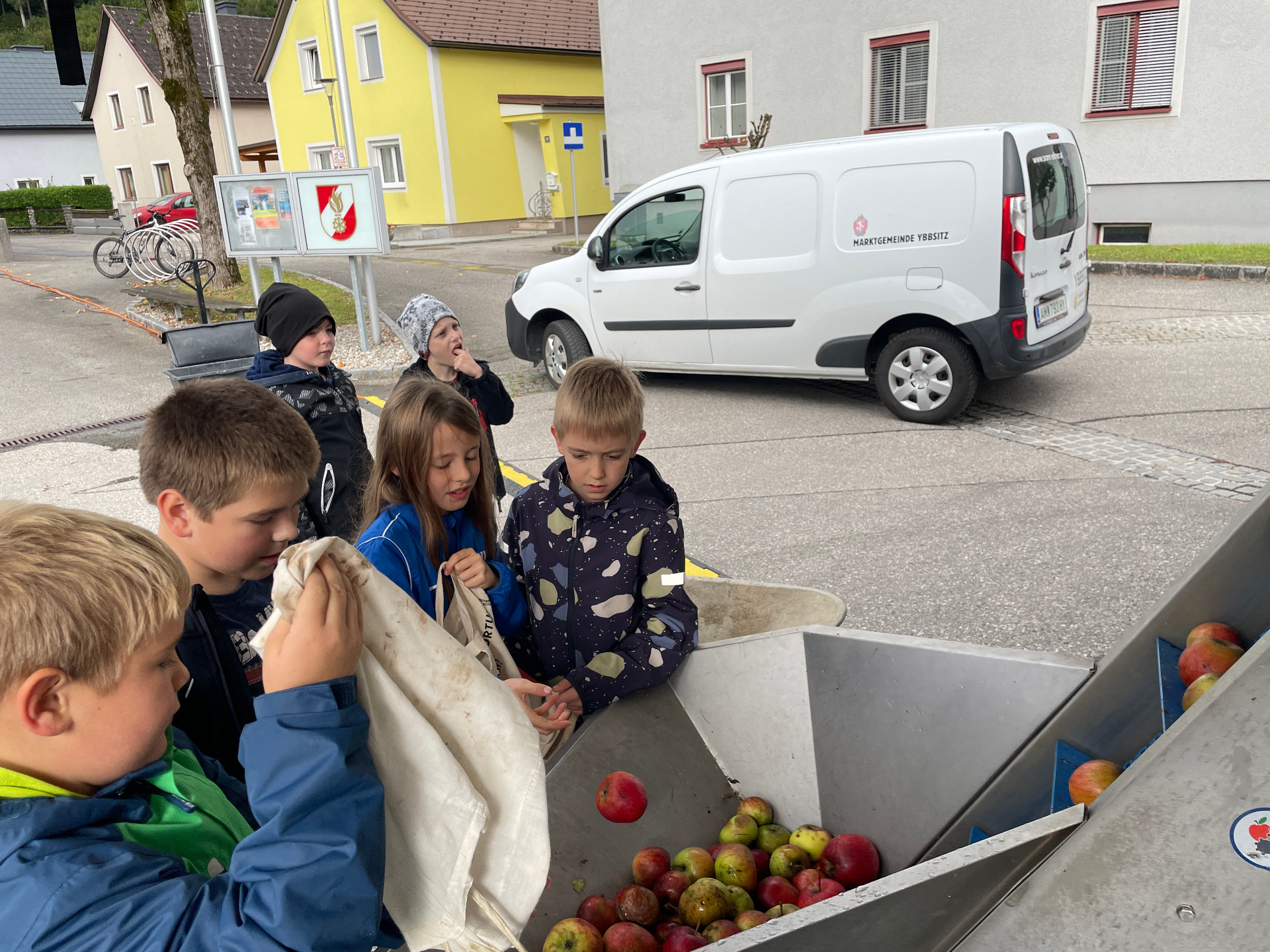 Dort durften die Kinder beobachten, wie ihre gesammelten Äpfel direkt vor Ort zu frischem Apfelsaft gepresst wurden. Ermöglicht wurde dieses besondere Erlebnis durch die Unterstützung der Gemeinde Ybbsitz, die dankenswerterweise die Kosten für das Pressen übernahm.