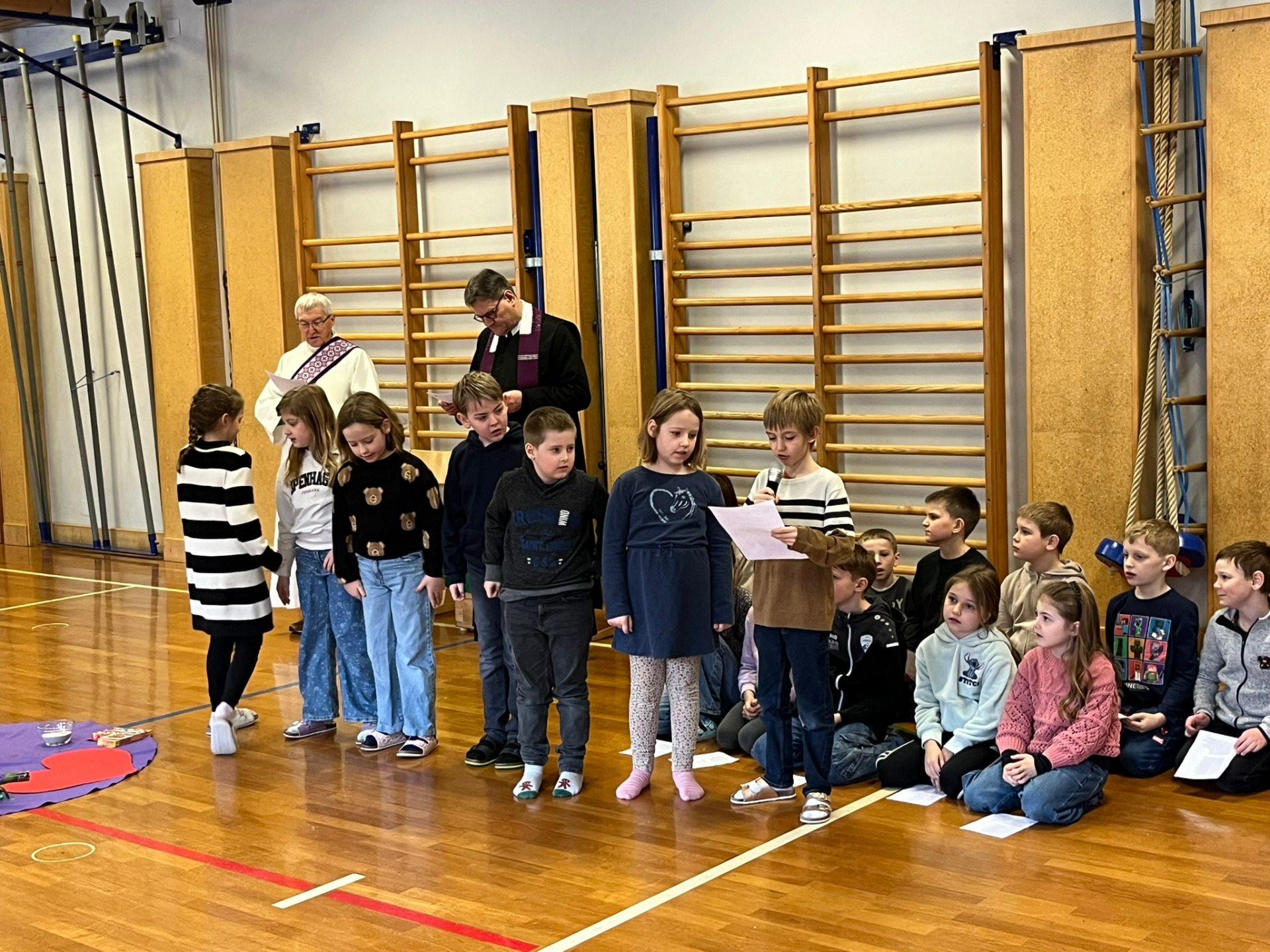 Mit Texten und Liedern, gestaltet von Kindern der 3. und 4. Klassen mit ihrer Religionslehrerin Gertraud Handsteiner, startete die Schulgemeinschaft ganz bewusst in die 40tägige Fastenzeit.